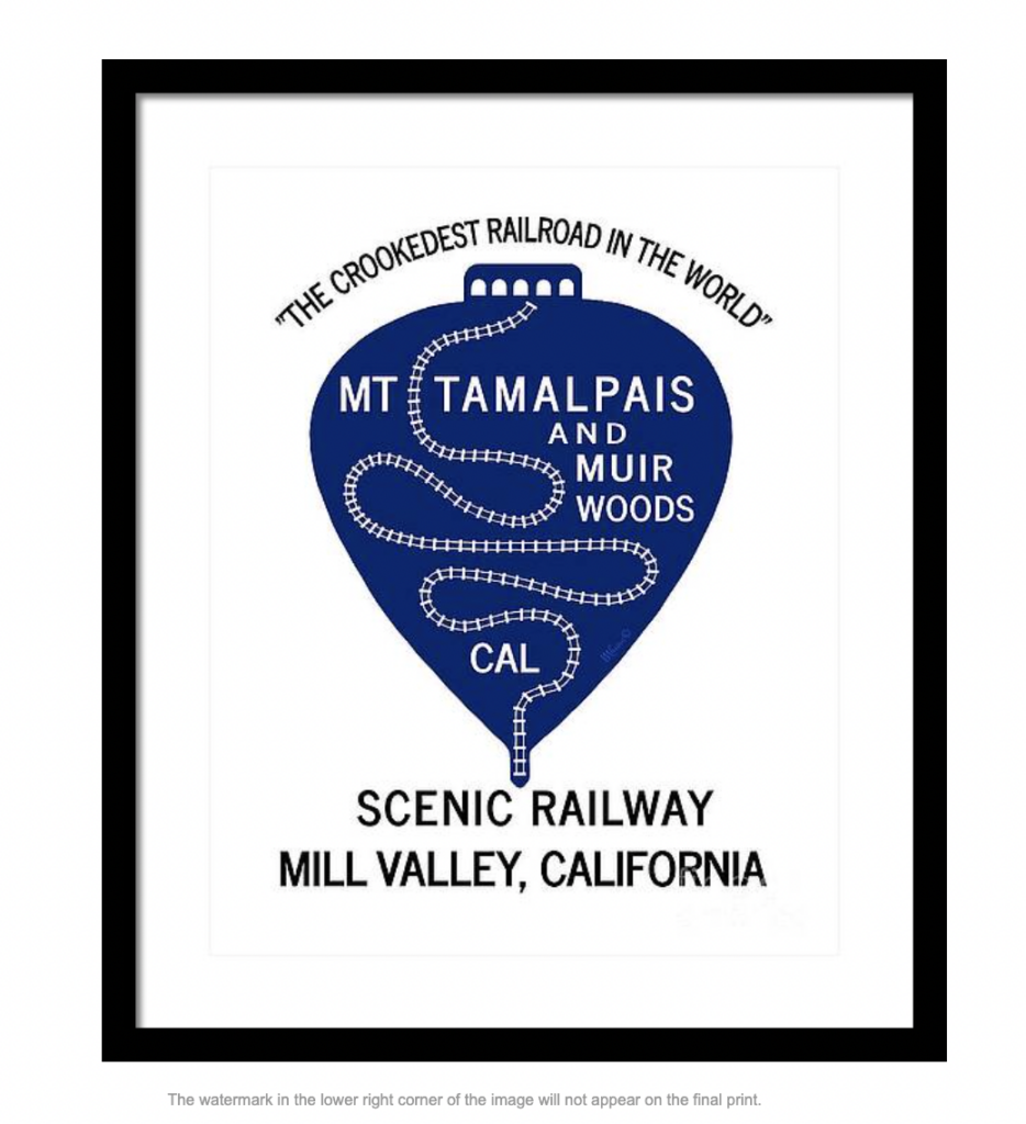 Text Reads: “The Crookedest Railroad in the WorldMt Tamalpais and Muir Woods CALScenic RailwayMill Valley, California”