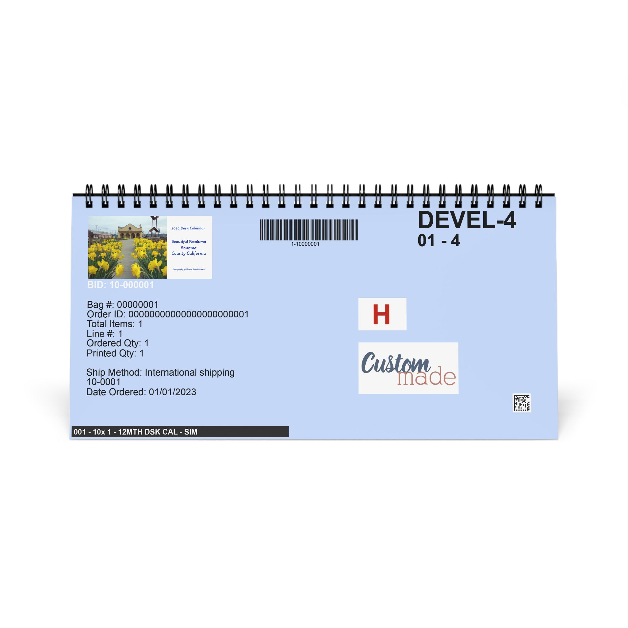 – Message artist, if delivery is outside the USA, for the best possible delivery time options. (desk calendars only)