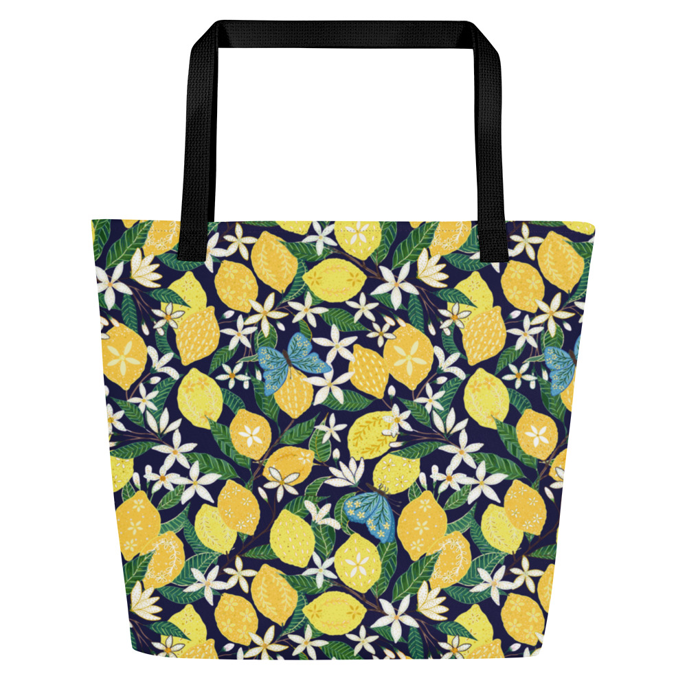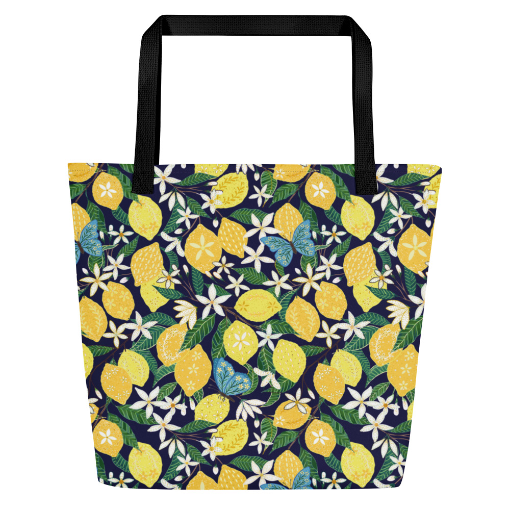All-Over Print Large Tote Bag Lemons and Blossoms
