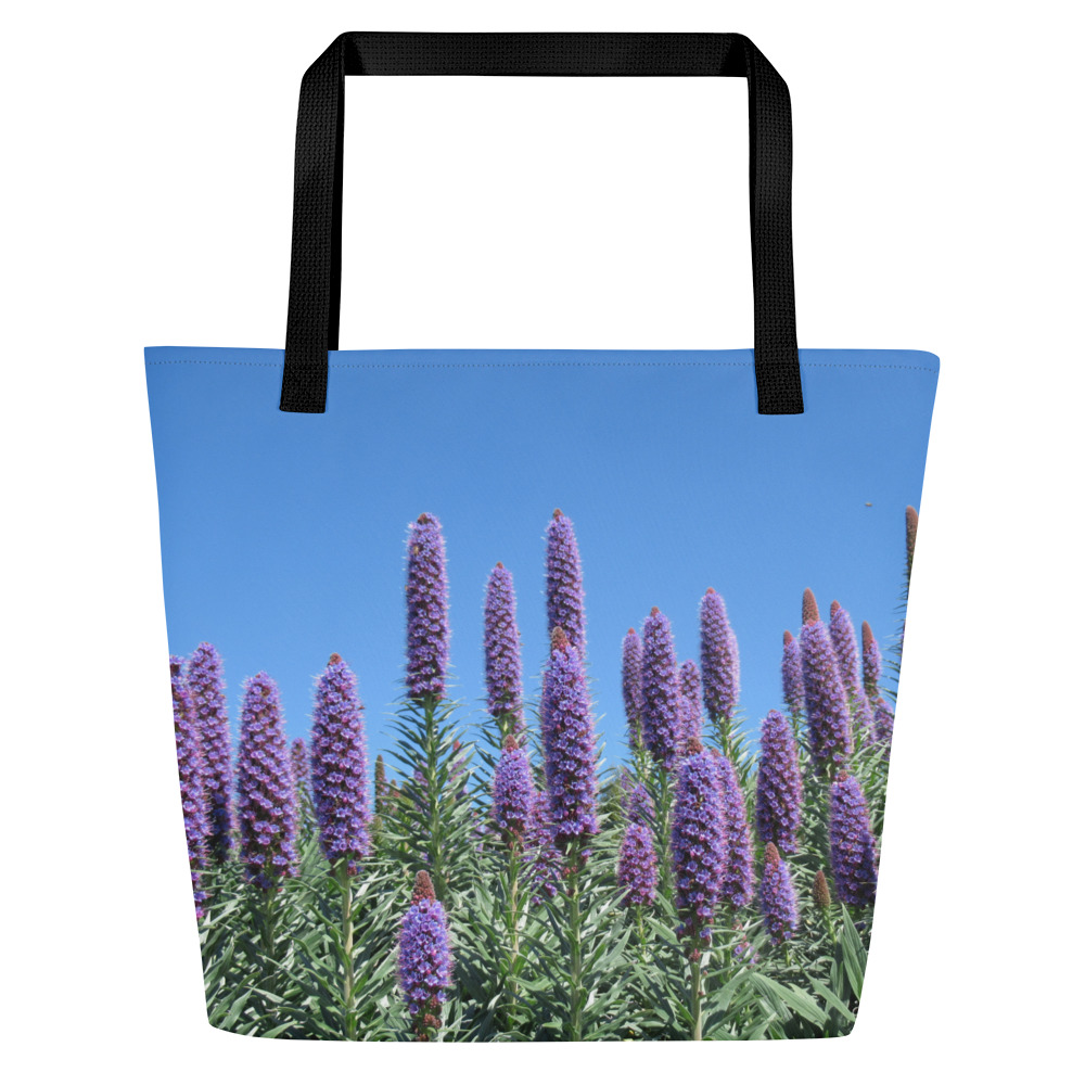 All-Over Print Large Tote Bag Purple Flowers