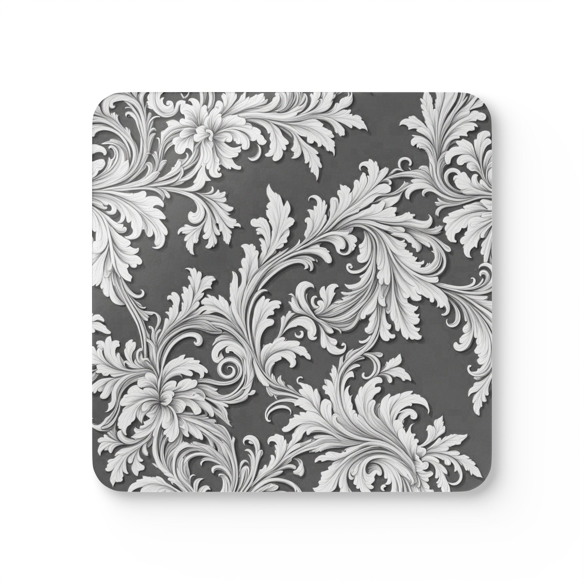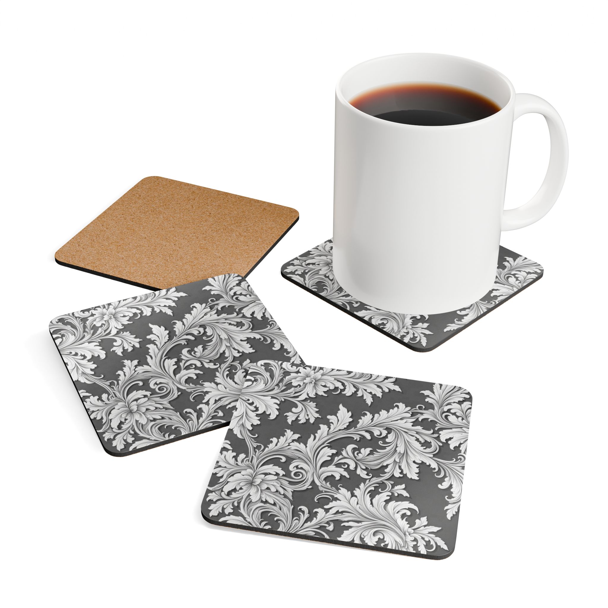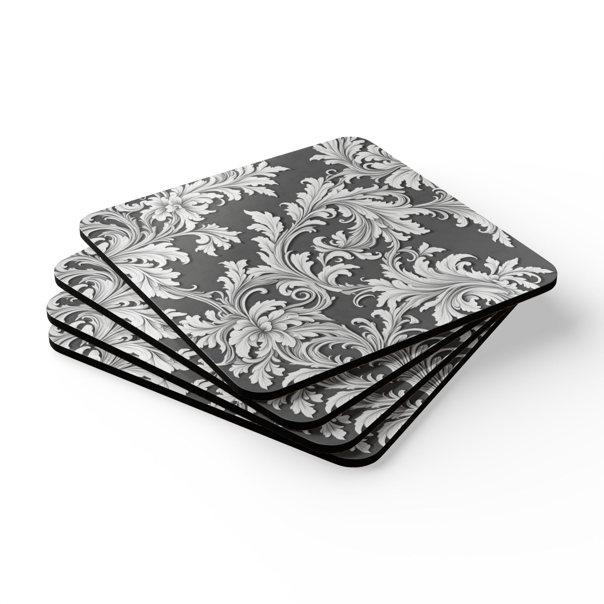 Corkwood Coaster (Set of 4) Damask Gray Black & White – Made in USA