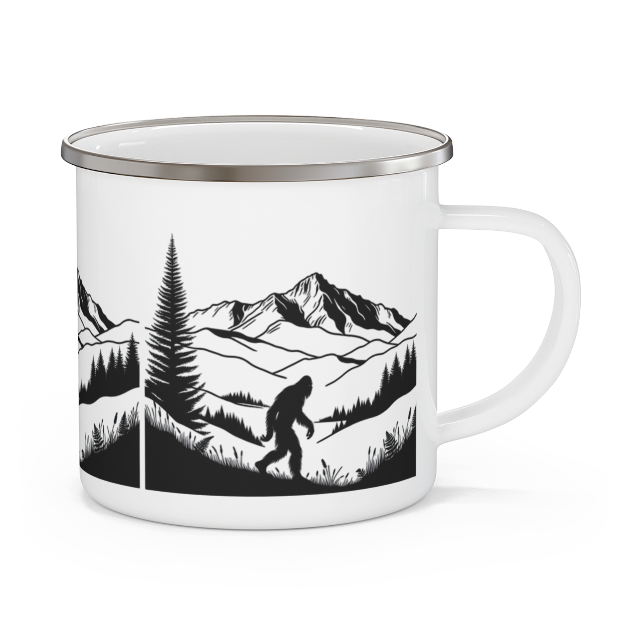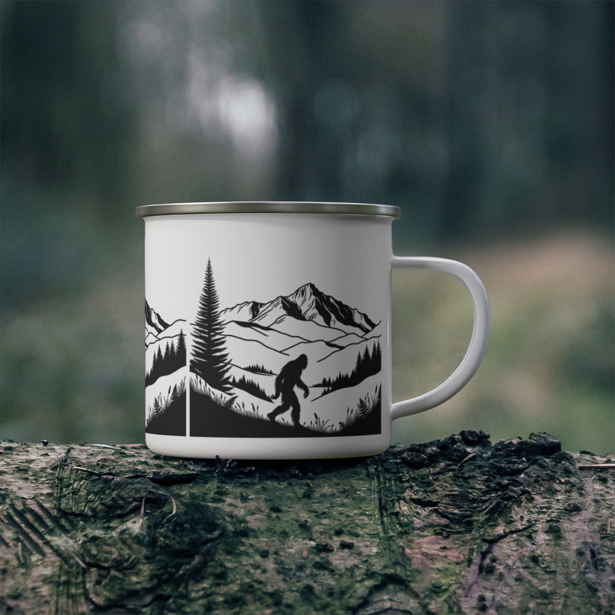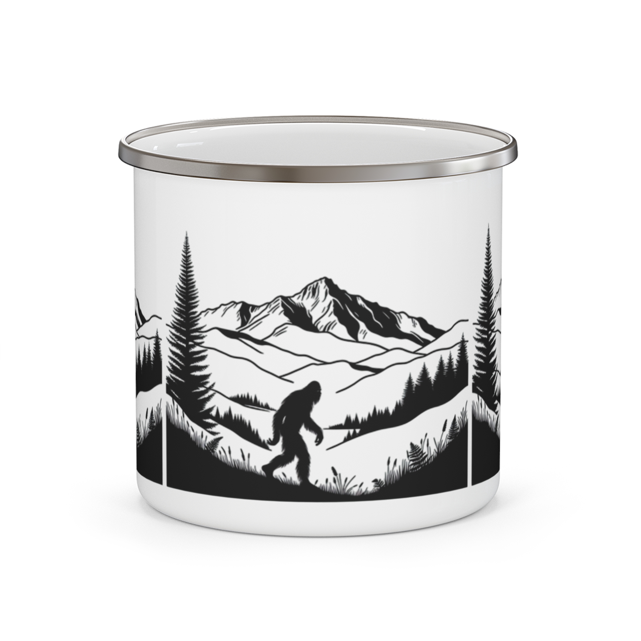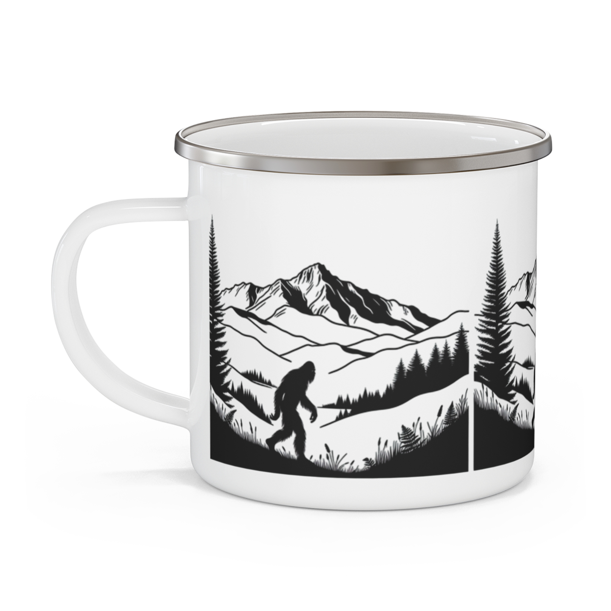 Enamel Camping Mug Bigfoot Walking in the Forest – Mountain