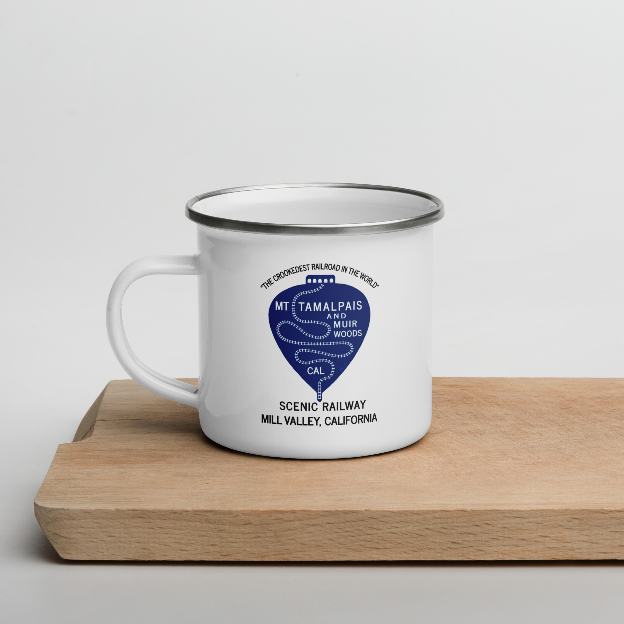Enamel Mug 1911 Crookedest Railroad Mt Tamalpais and Muir Woods CA Black Text