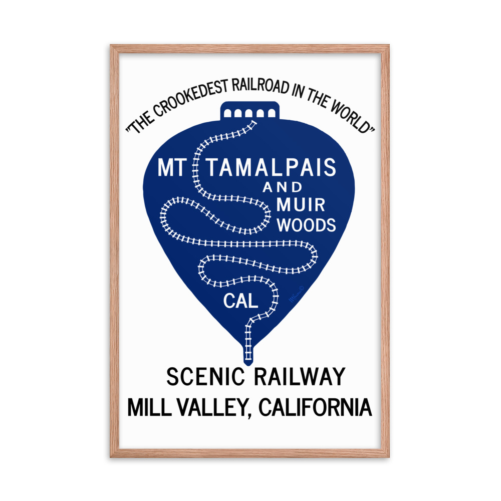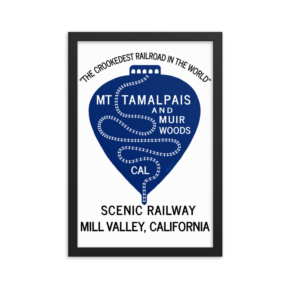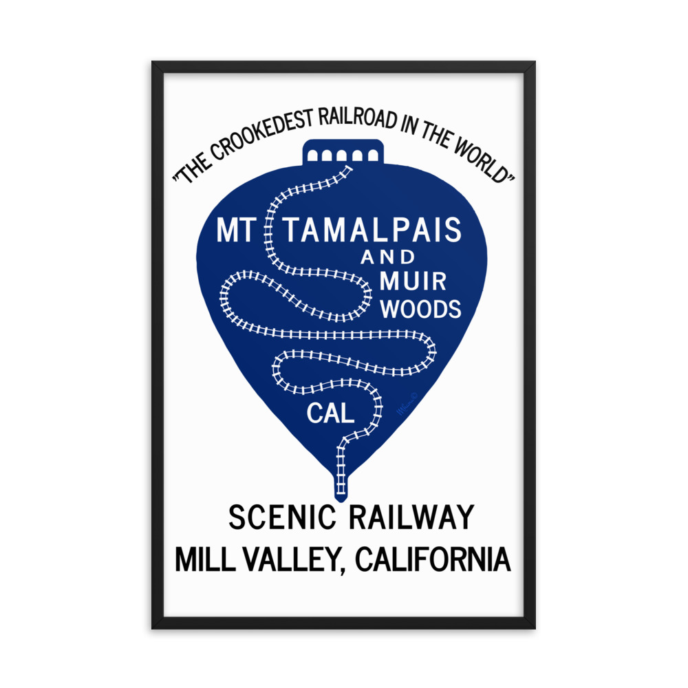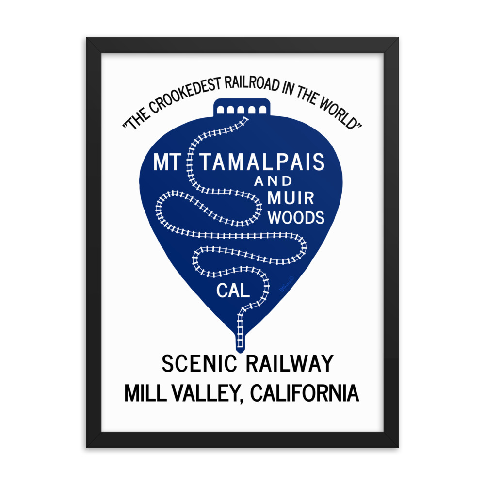 Framed poster – 1911 Crookedest Railroad Mt Tamalpais Muir Woods CA