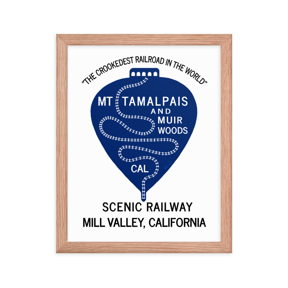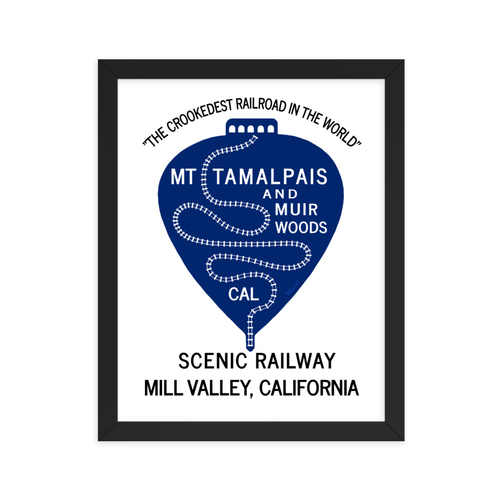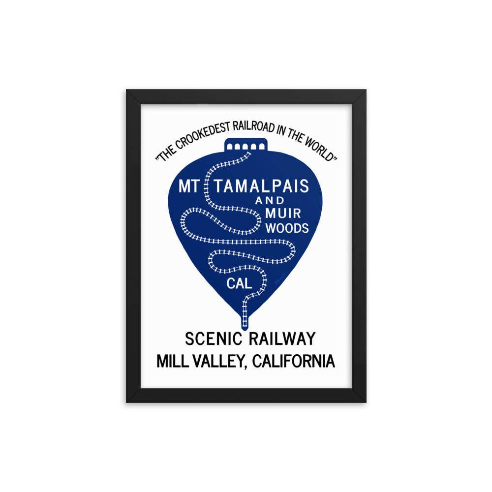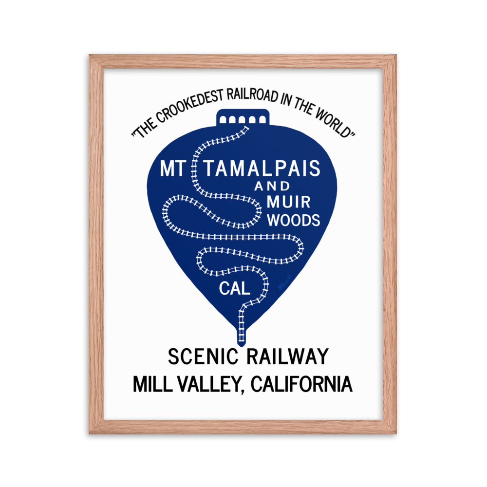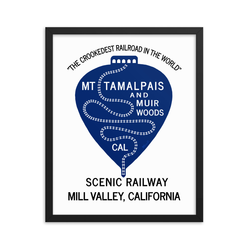 Framed poster – 1911 Crookedest Railroad Mt Tamalpais Muir Woods CA