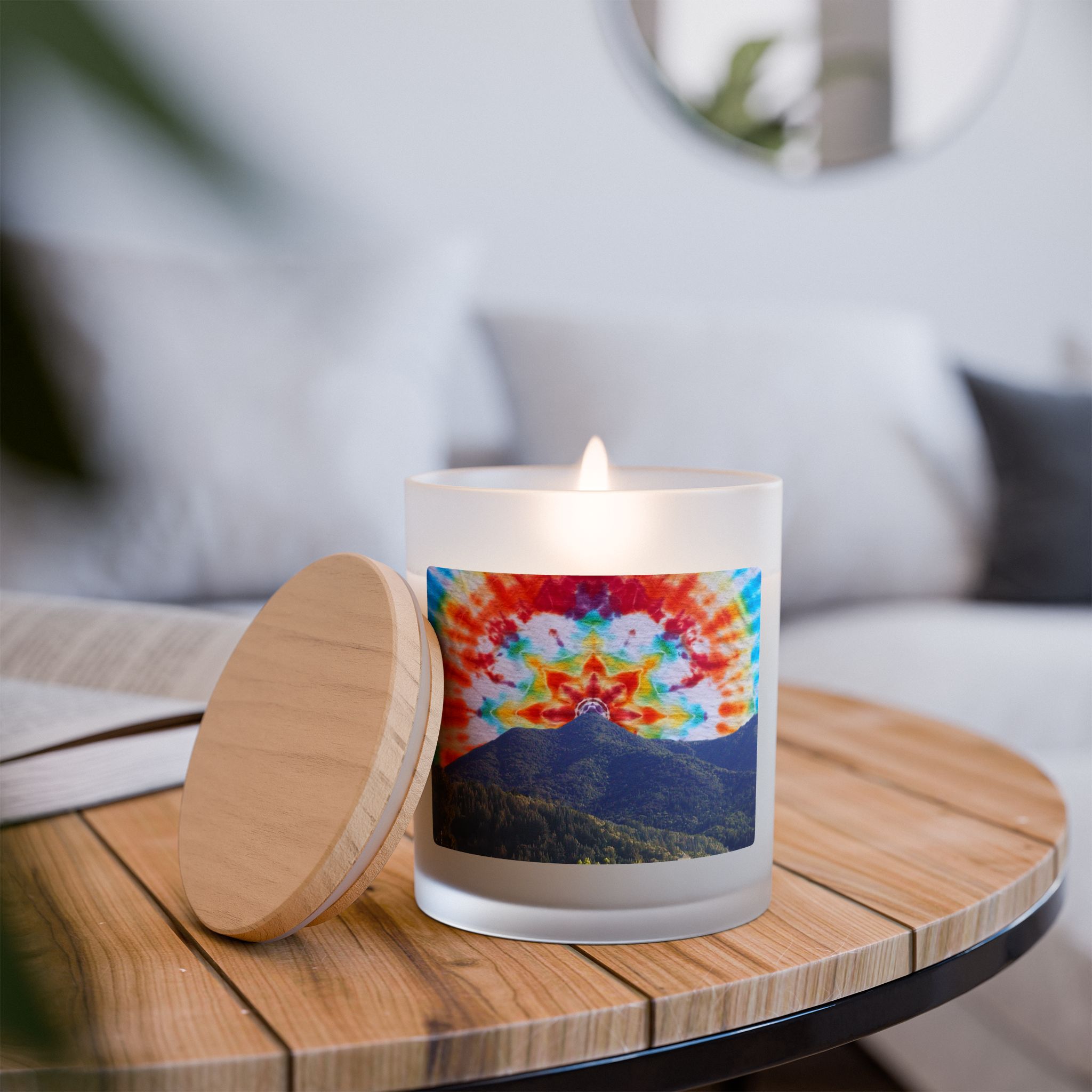 Frosted Glass Soy Candle, 11oz Tie-Dye Mt Tamalpais Sky