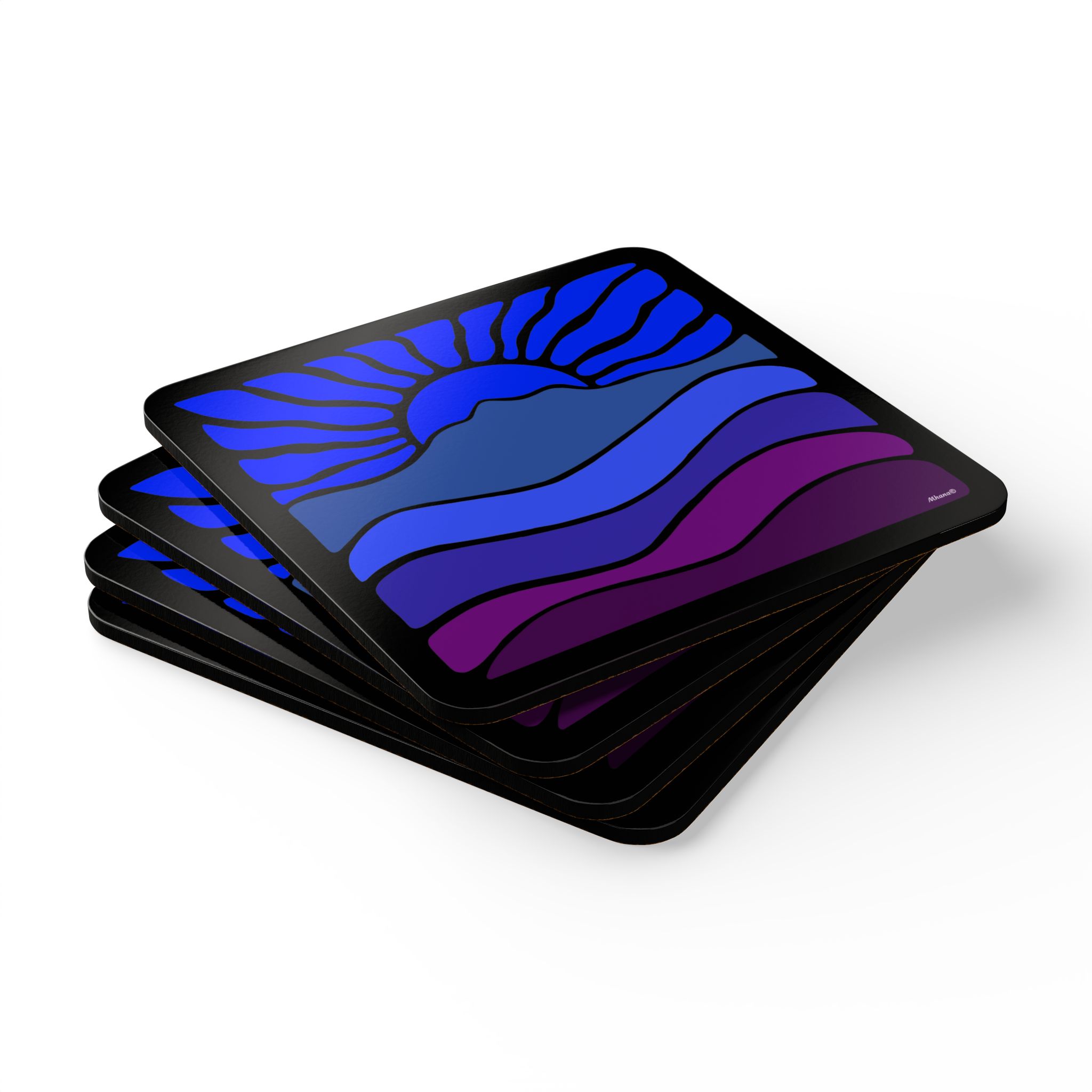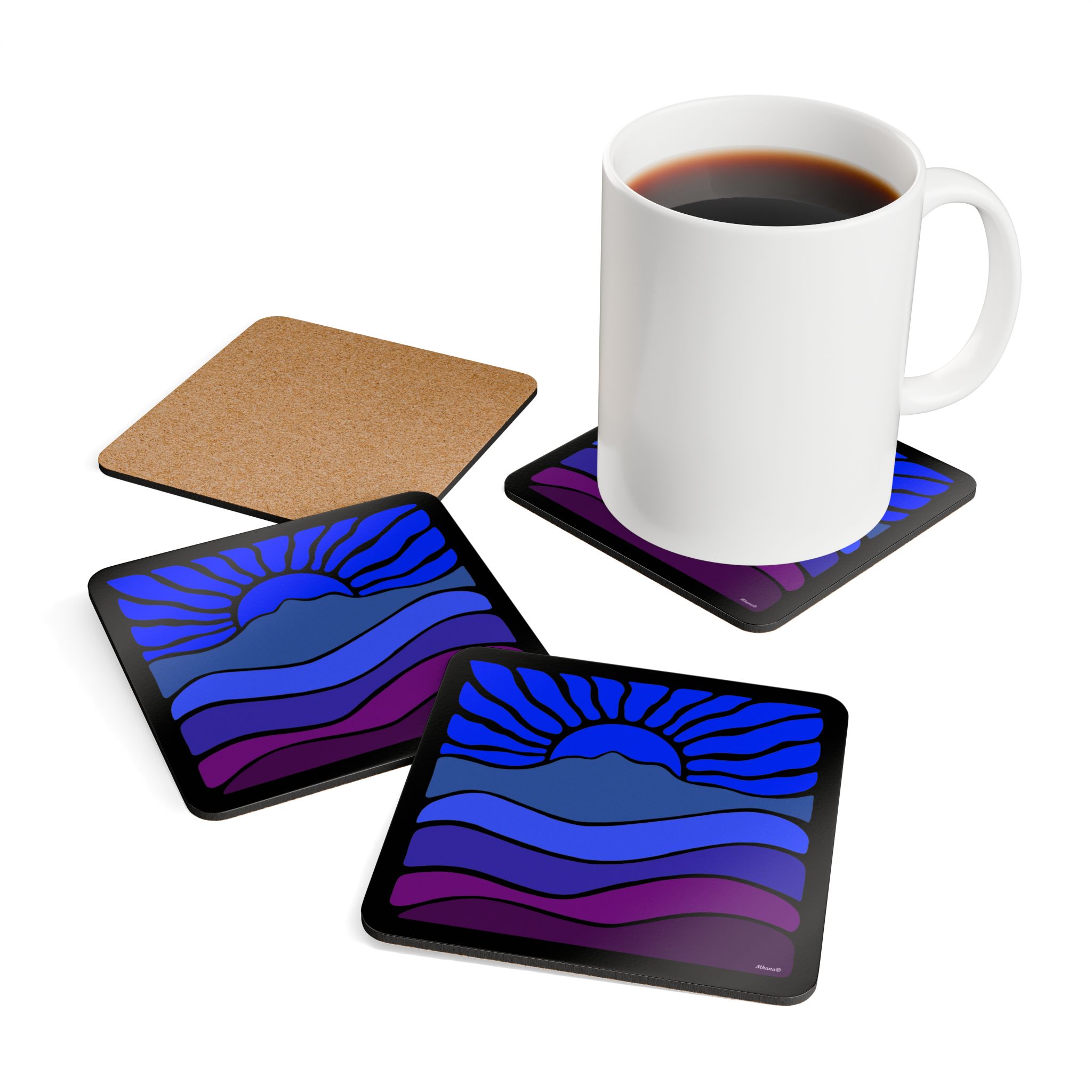 Groovy Retro Mt Tamalpais Sunset Design – Cork Coaster Set of 4 – Midnight Blues – Made in USA