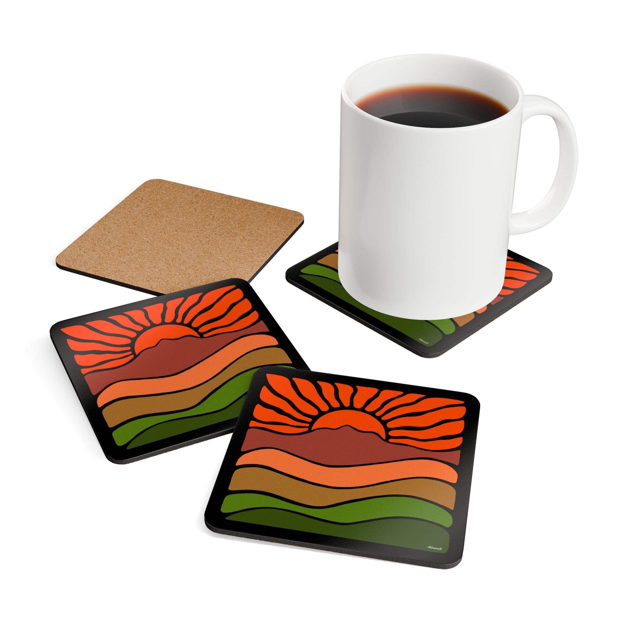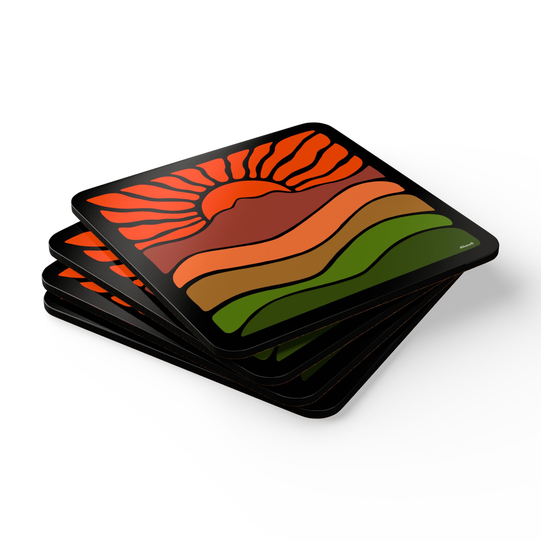 Groovy Retro Mt Tamalpais Sunset Design – Cork Coaster Set of 4 – Sunset Orange – Made in the USA