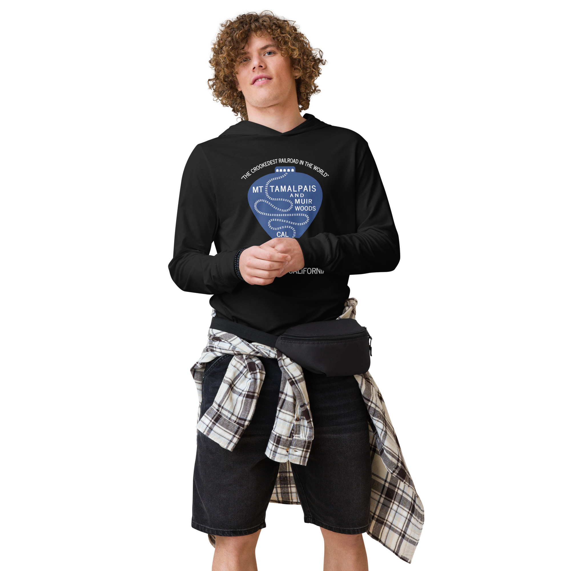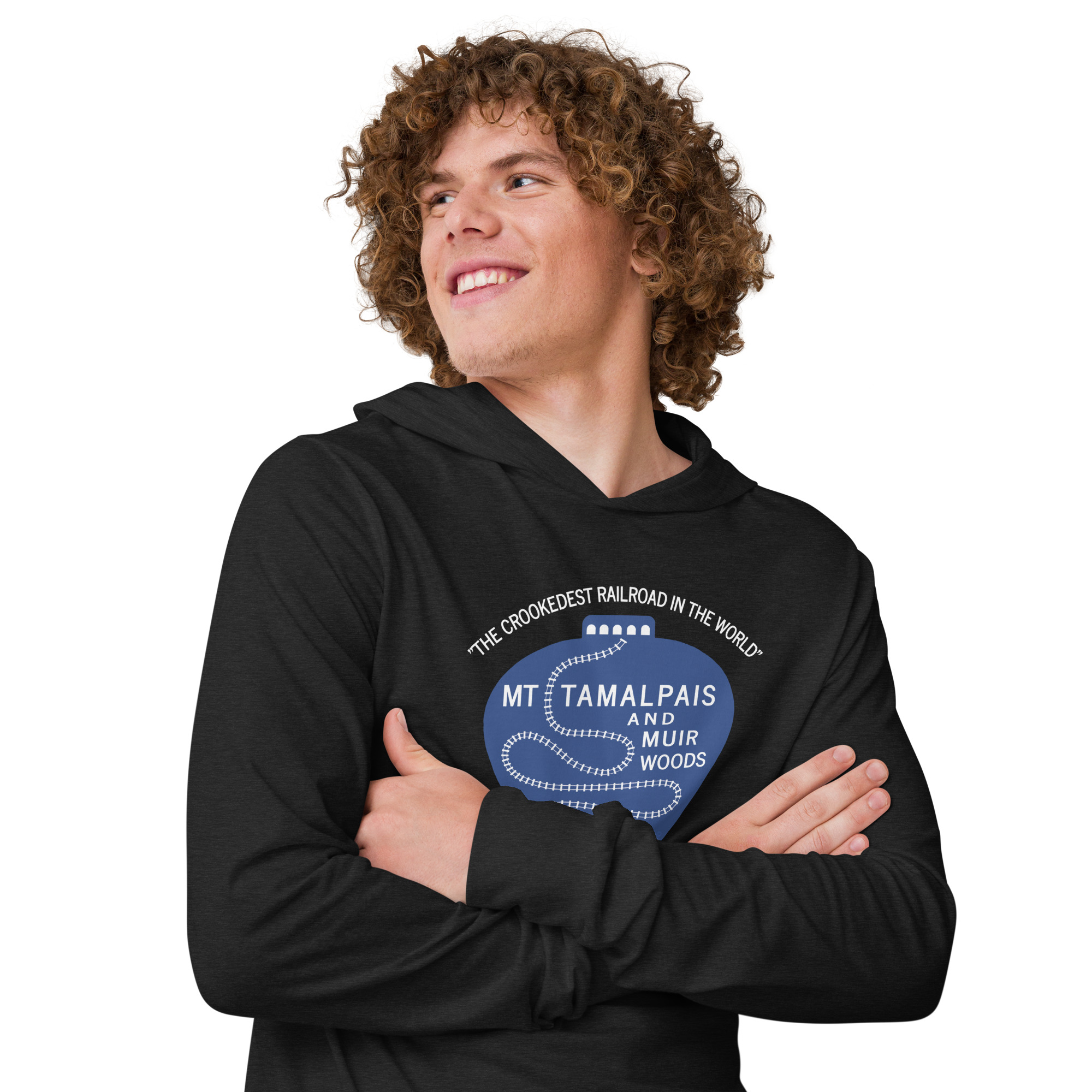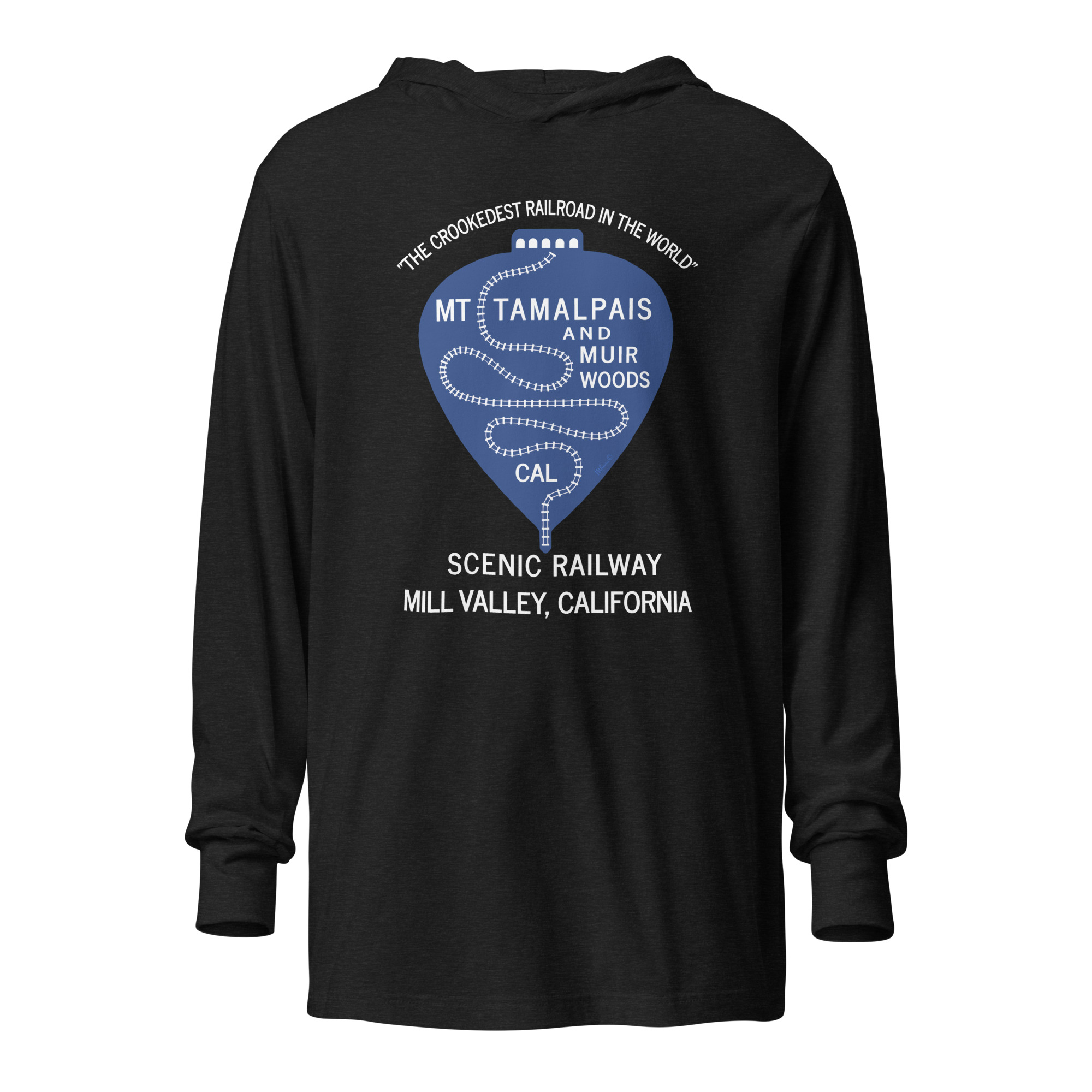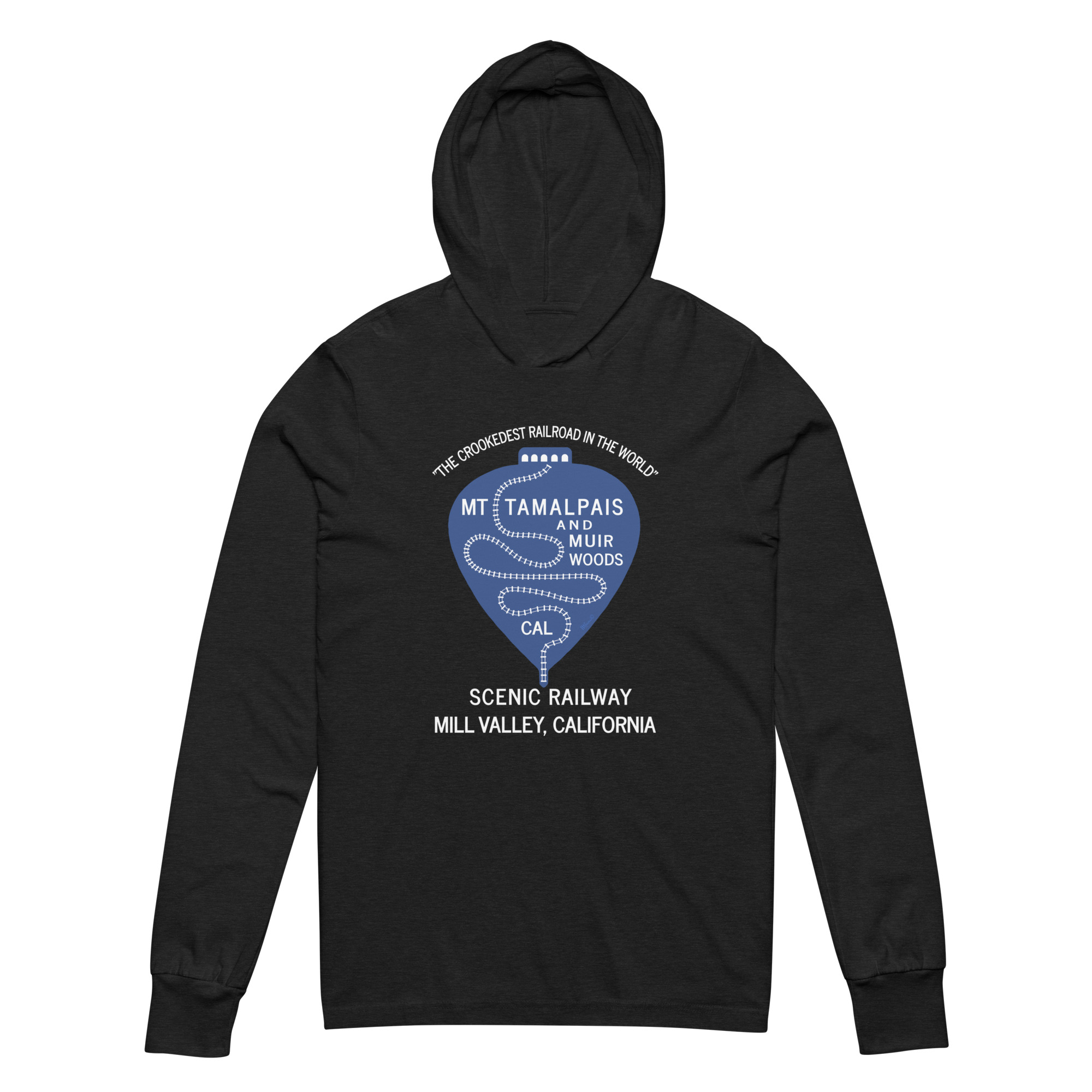 Hooded long-sleeve tee 1911 Crookedest Railroad Mt Tamalpais Muir Woods CA White Text