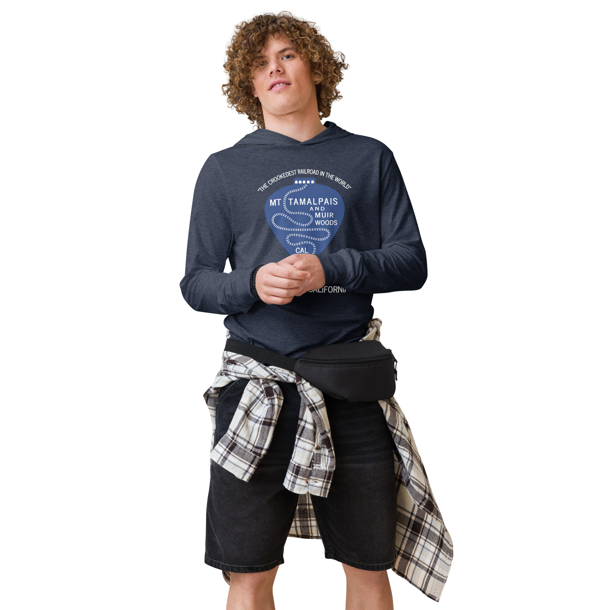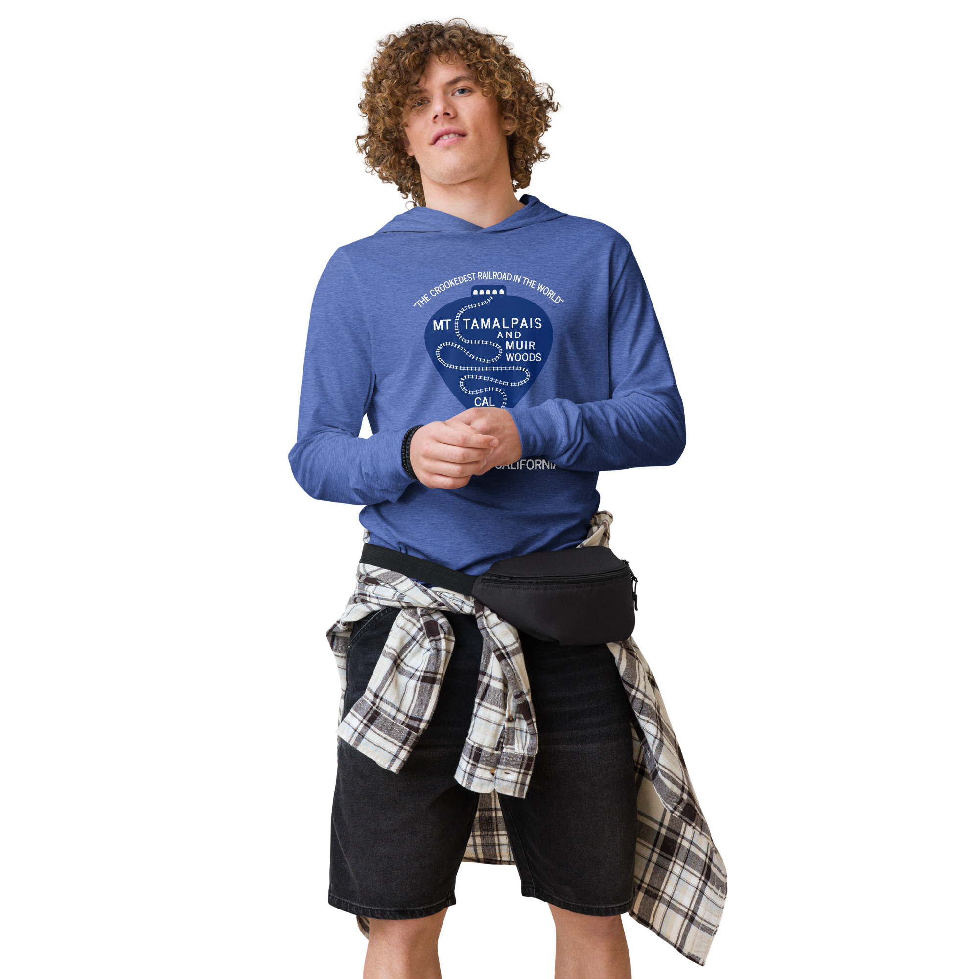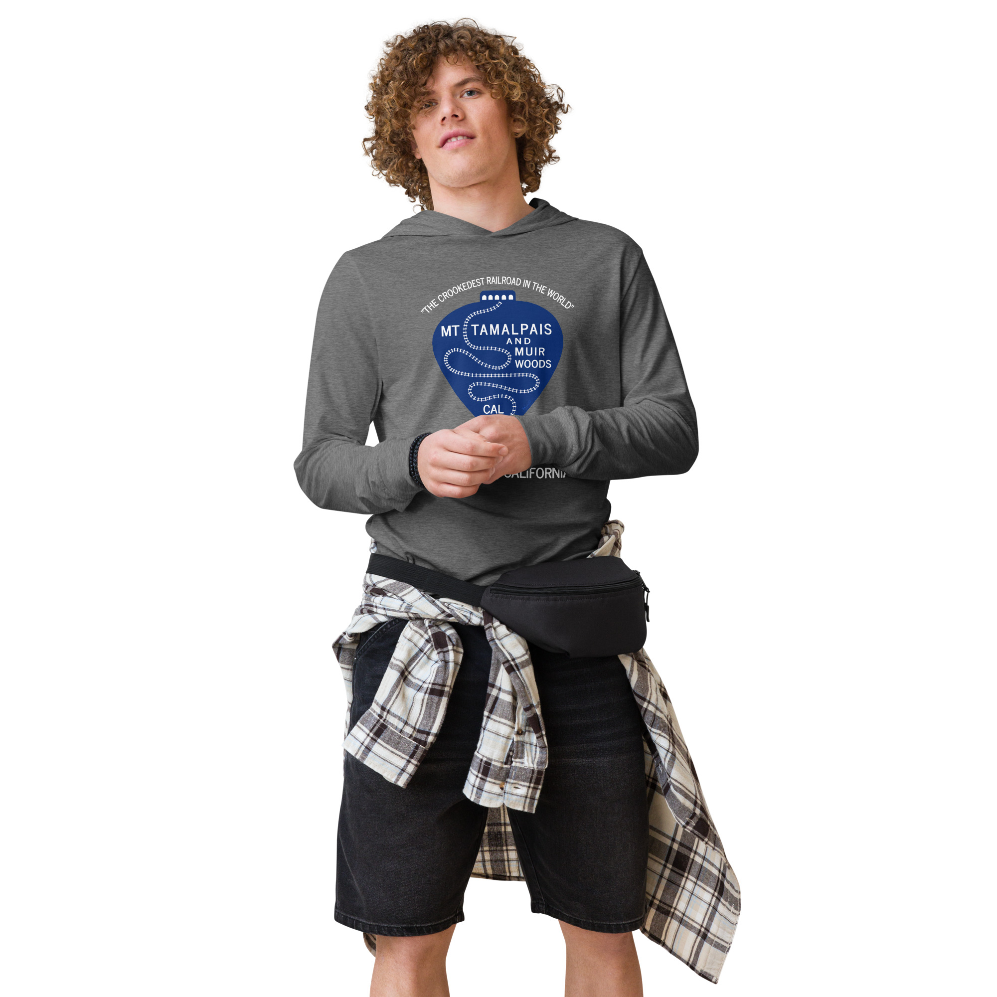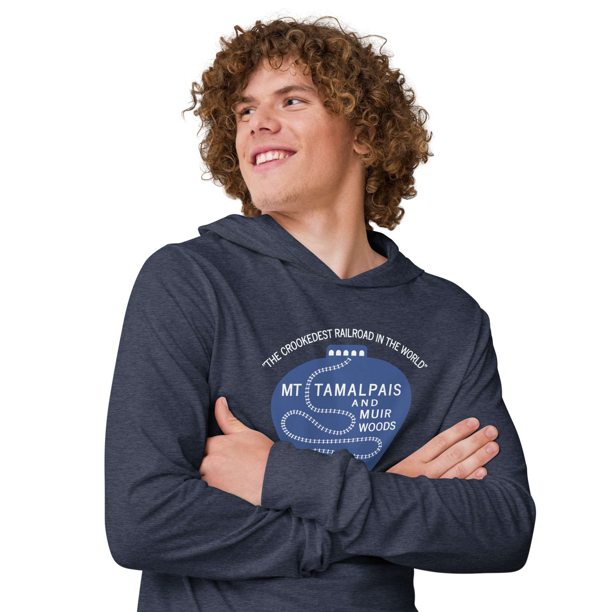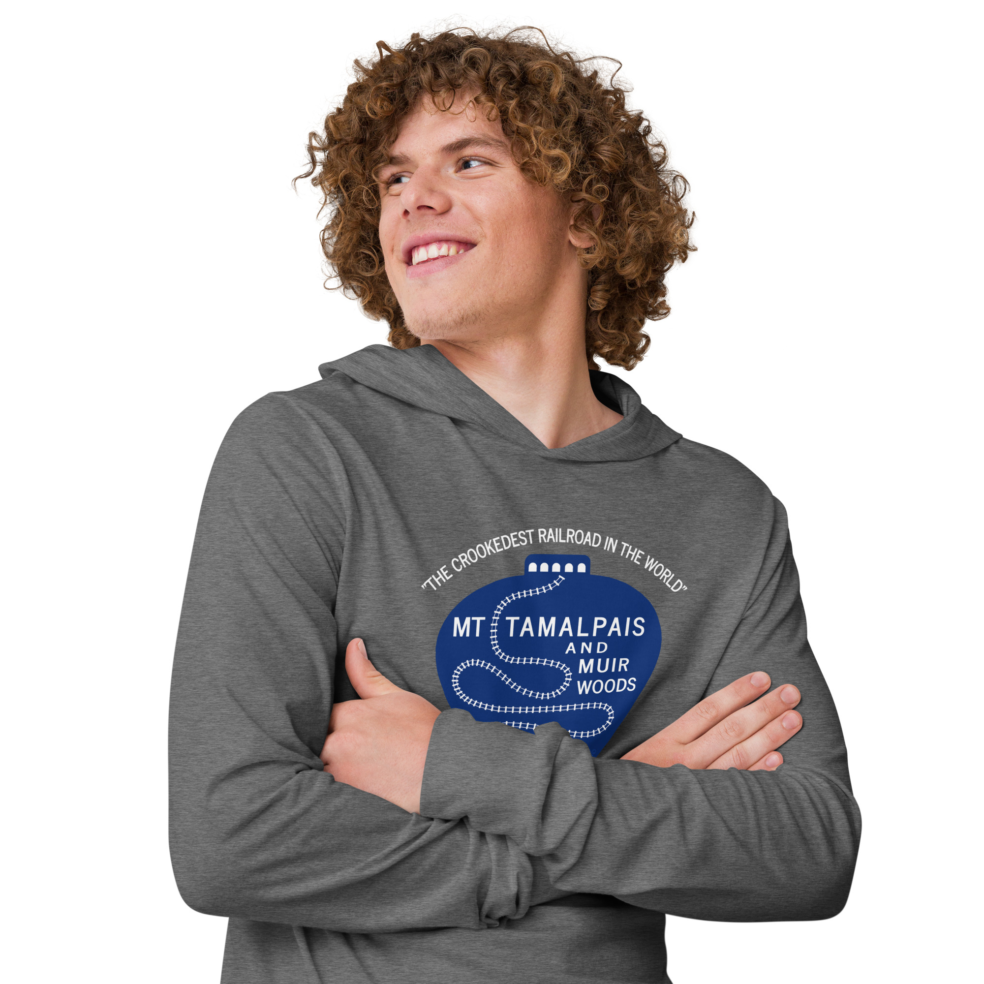 Hooded long-sleeve tee 1911 Crookedest Railroad Mt Tamalpais Muir Woods CA White Text