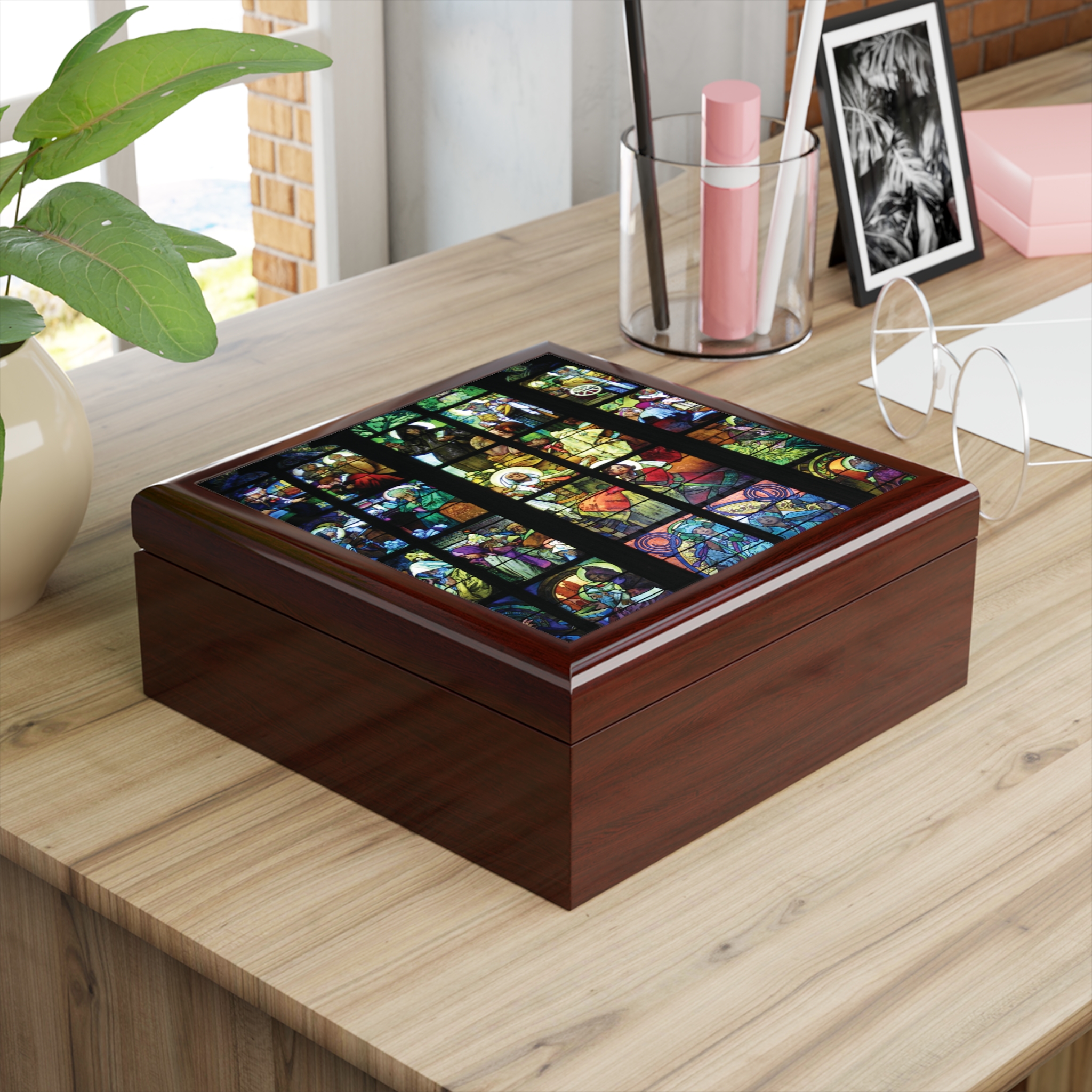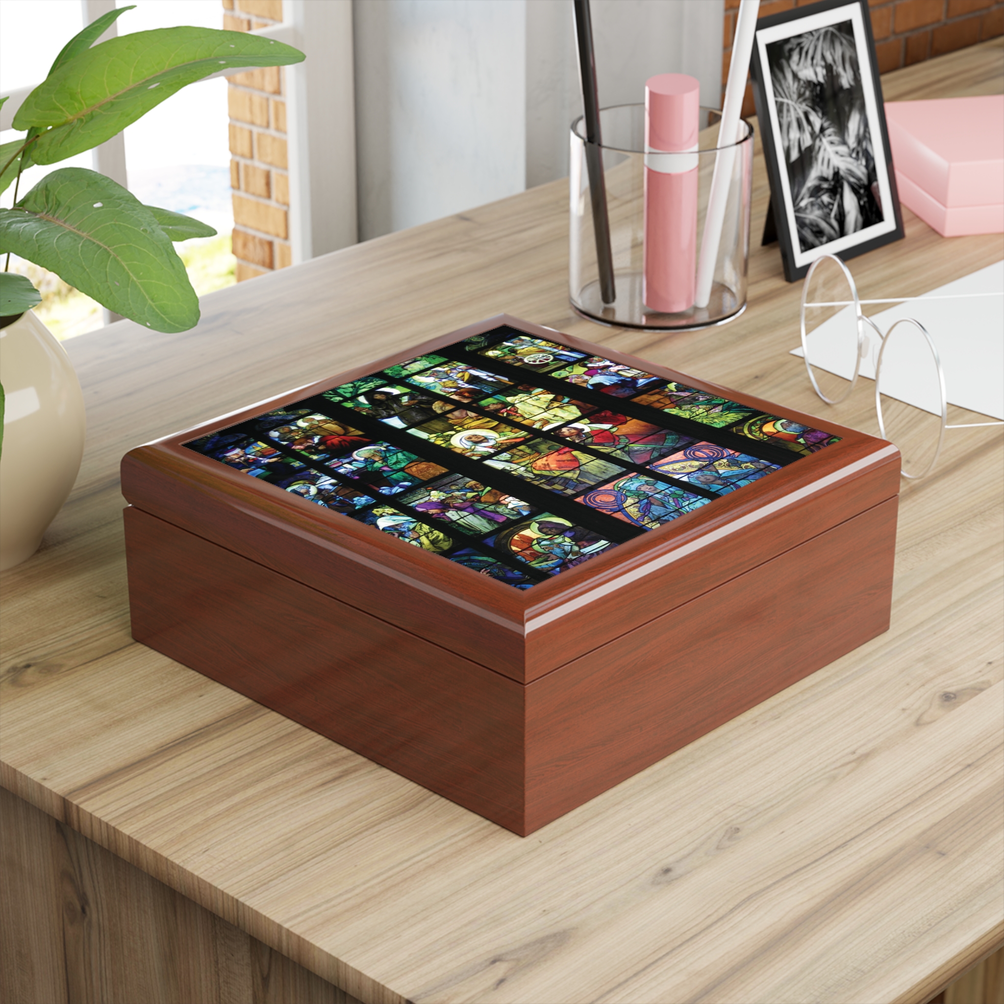 .: 6″ x 6″ (15cm x 15cm) decorated glossy sublimation ceramic tile fitted on top of the lid