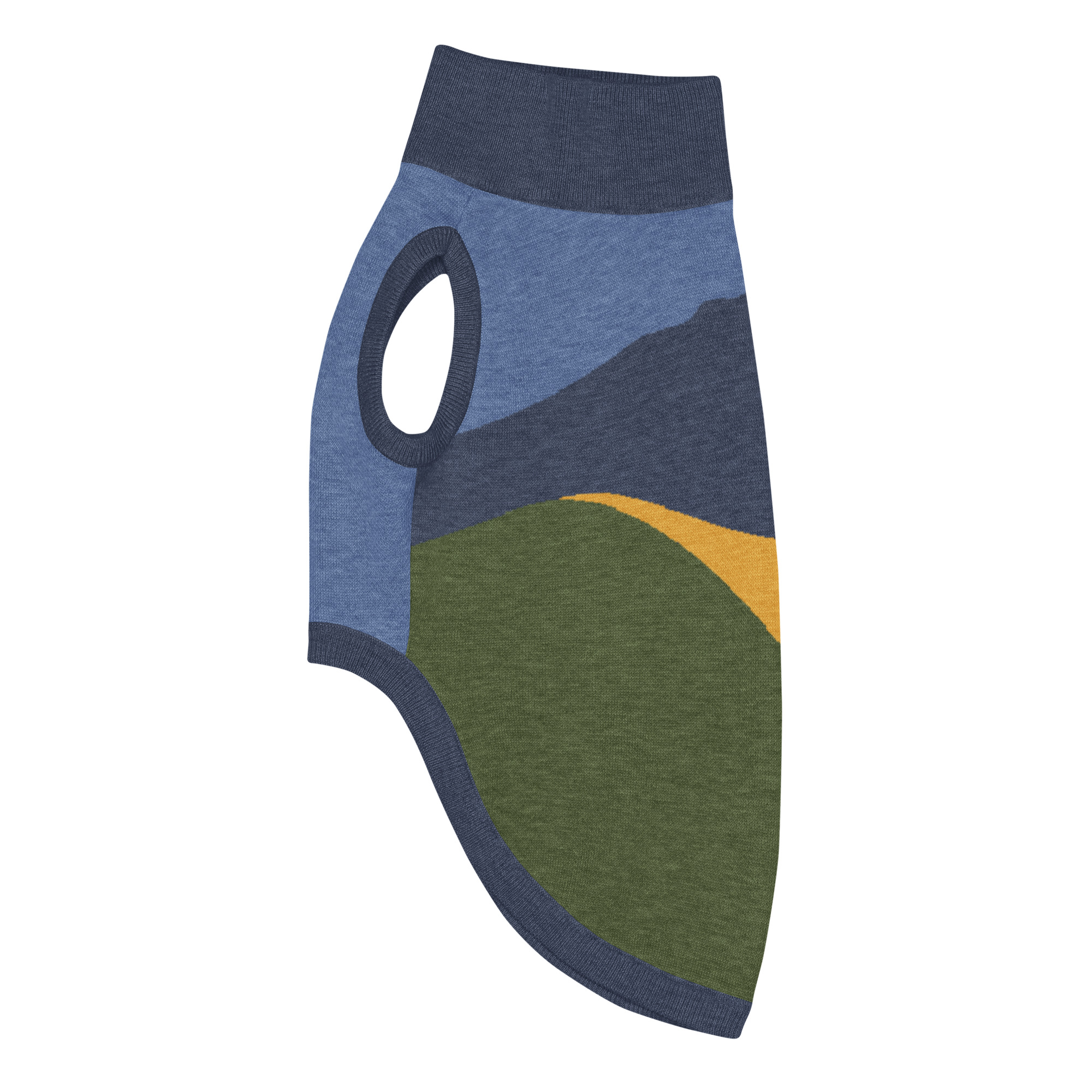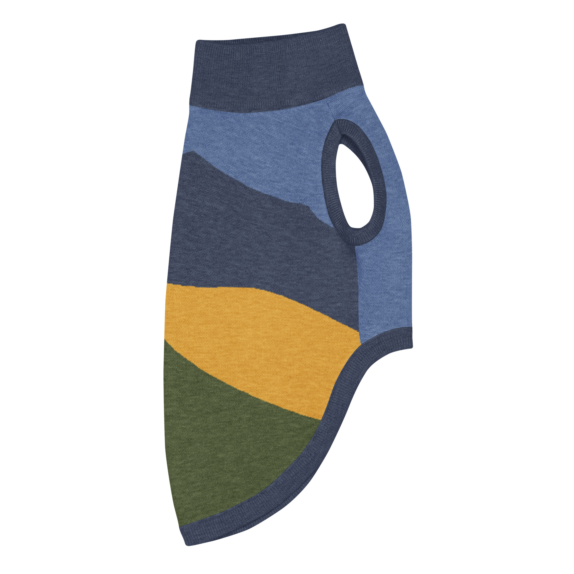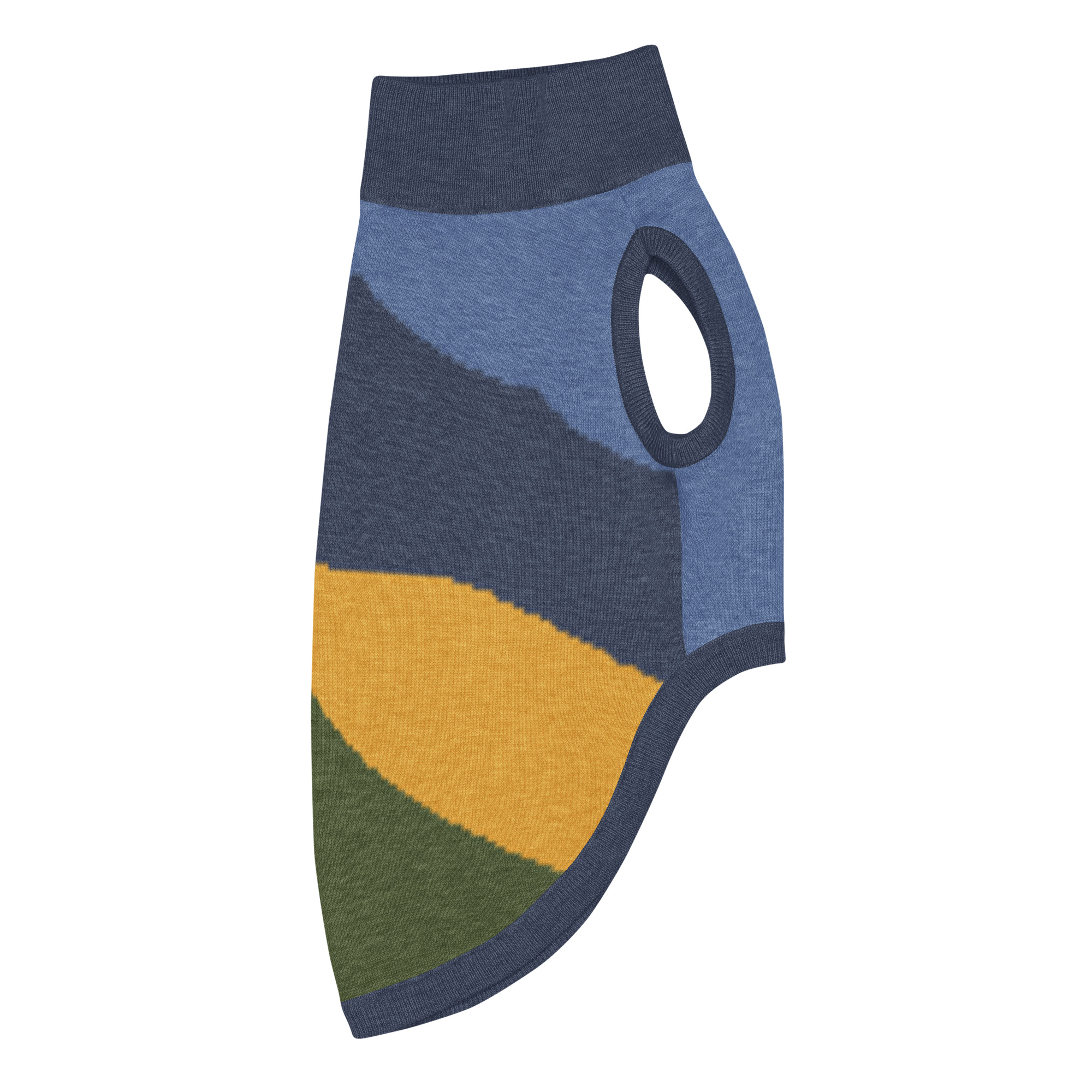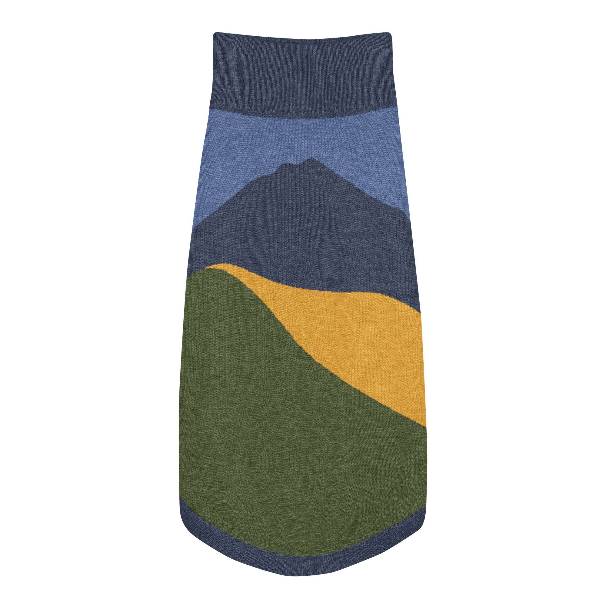 Knitted pet sweater – Mt Tamalpais Navy Green Gold – Select size for cats and dogs