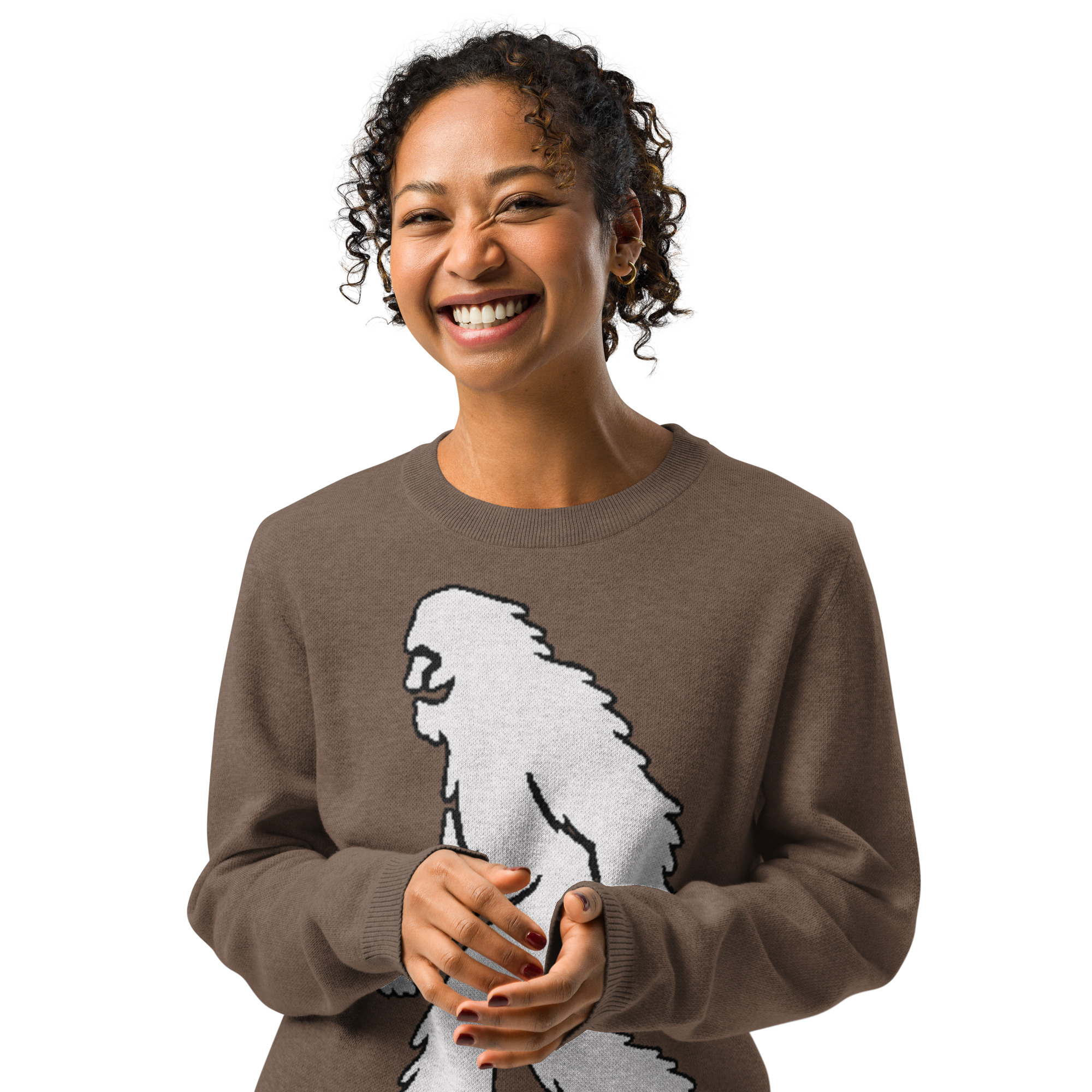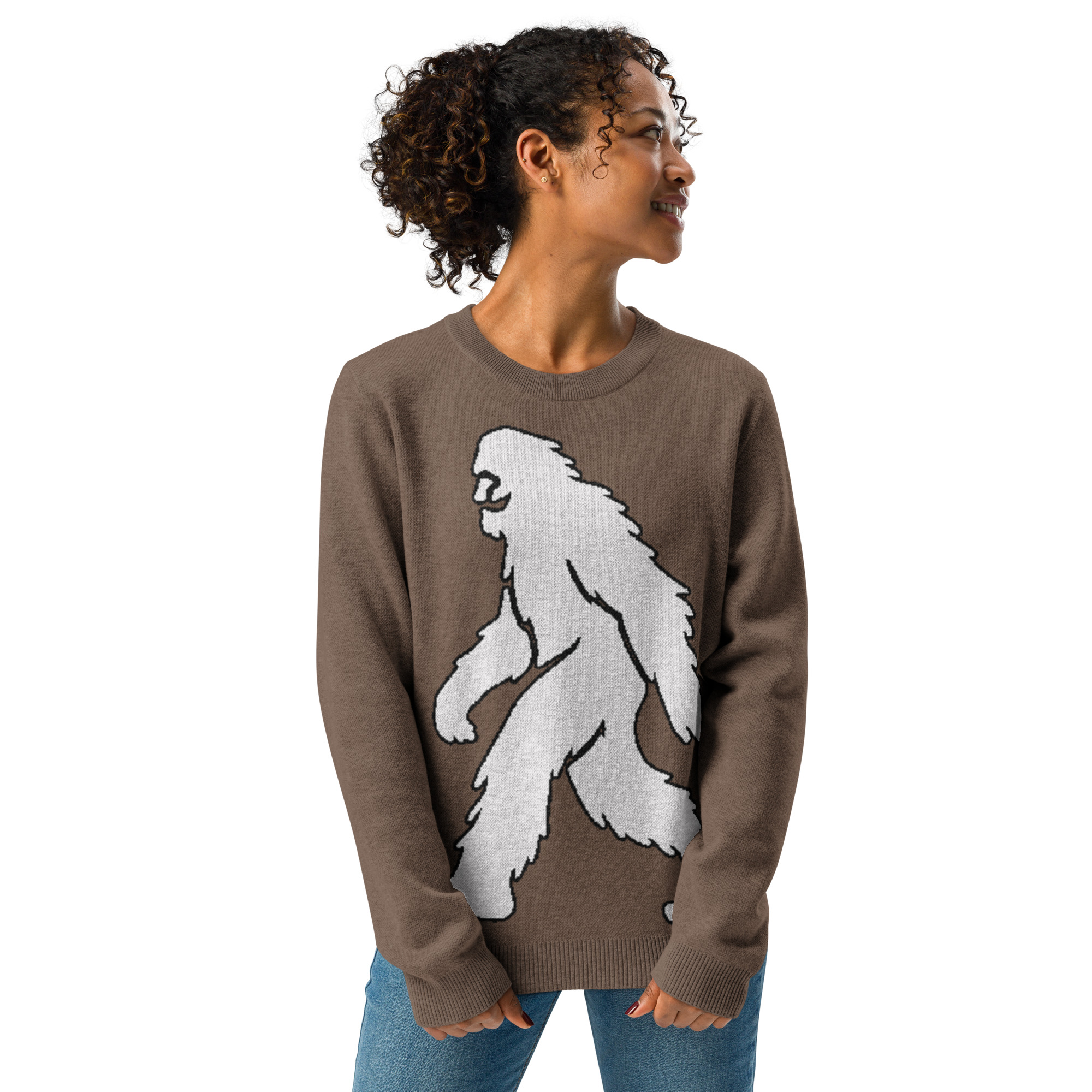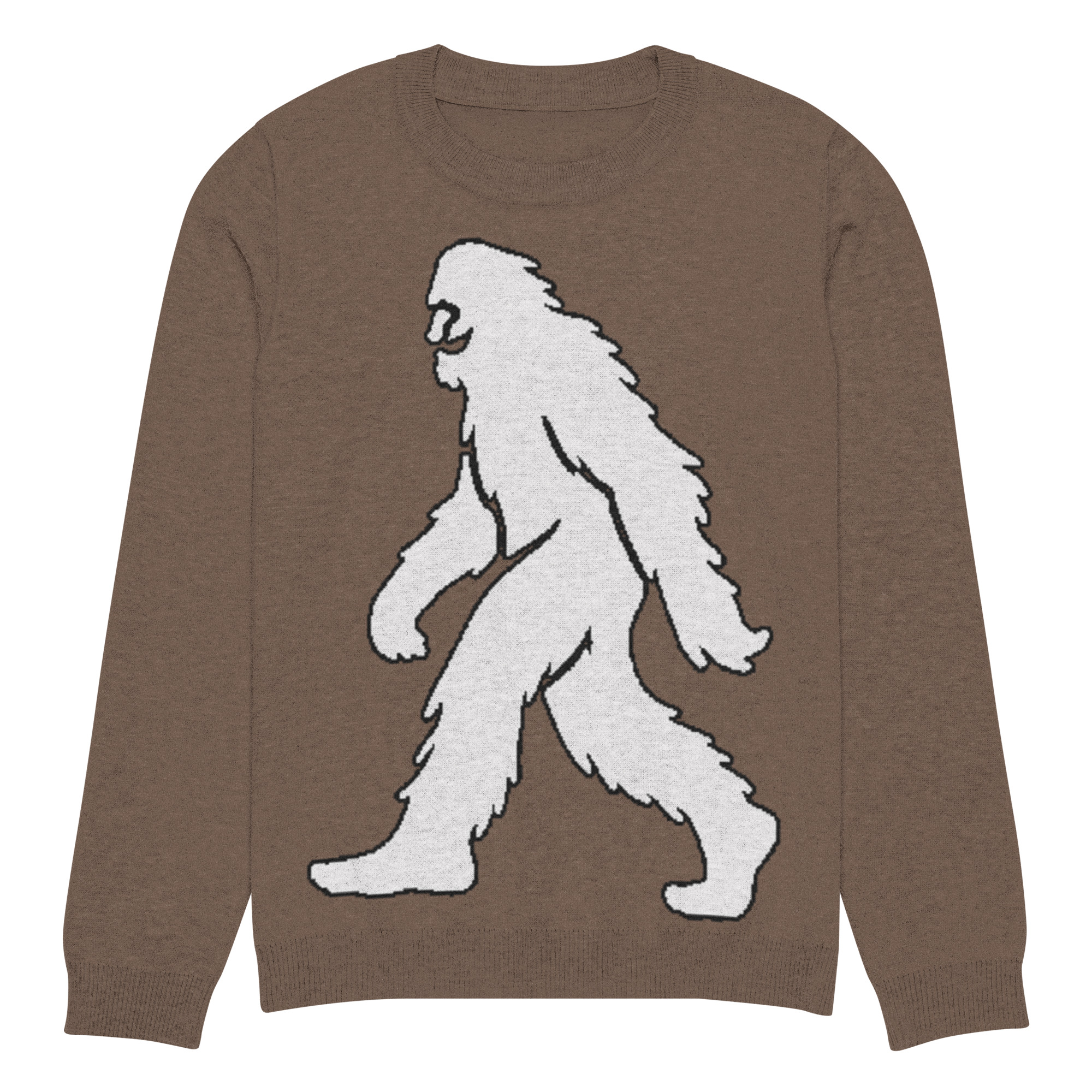 Unisex Knitted Sweater Smiling Yeti Bigfoot Earth Brown