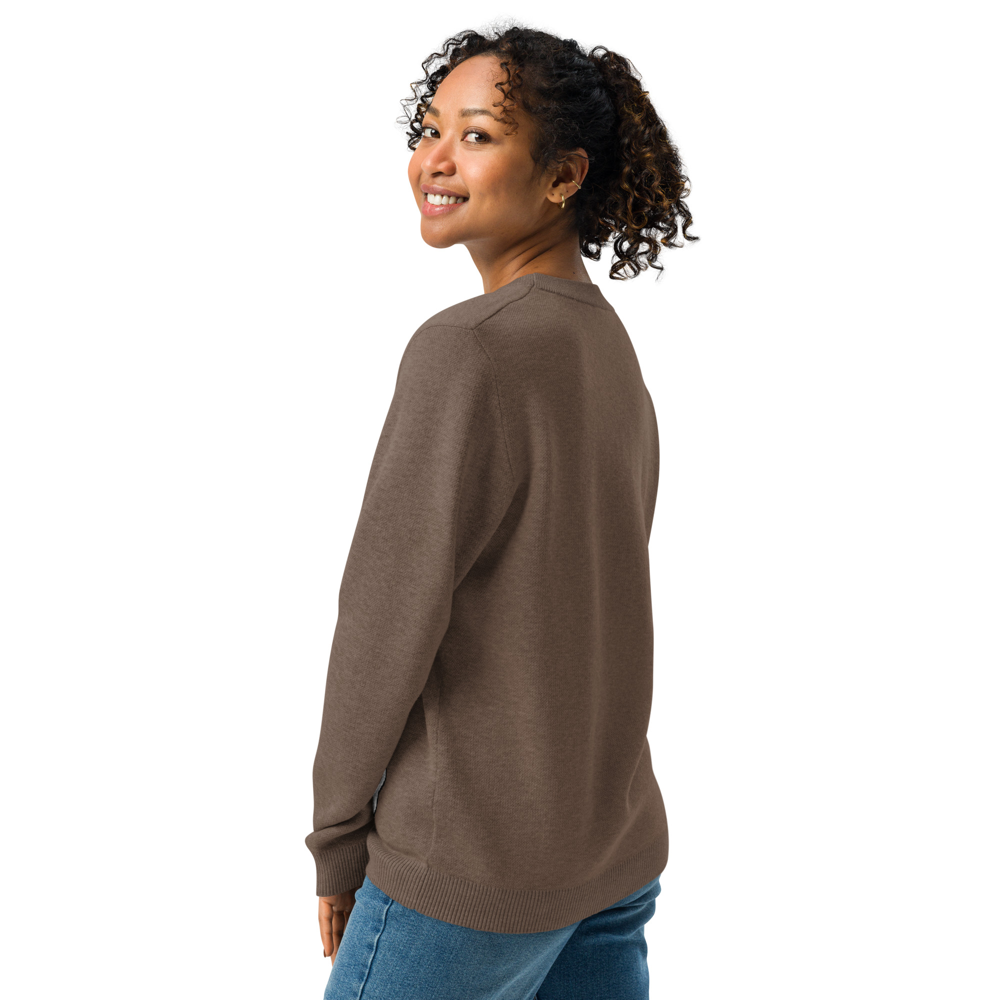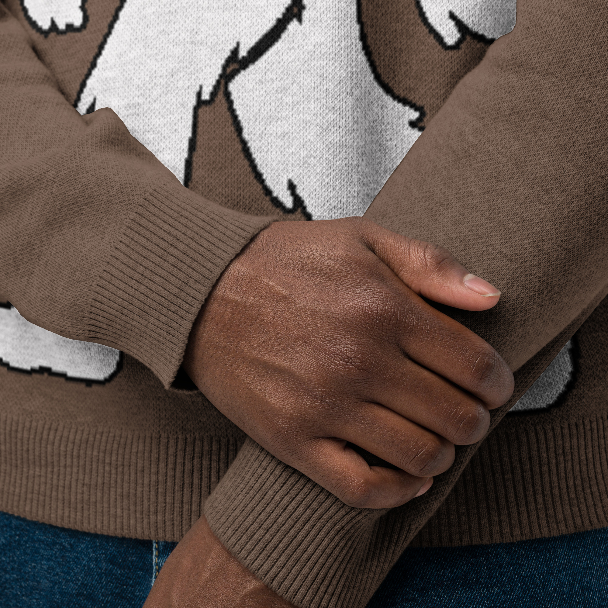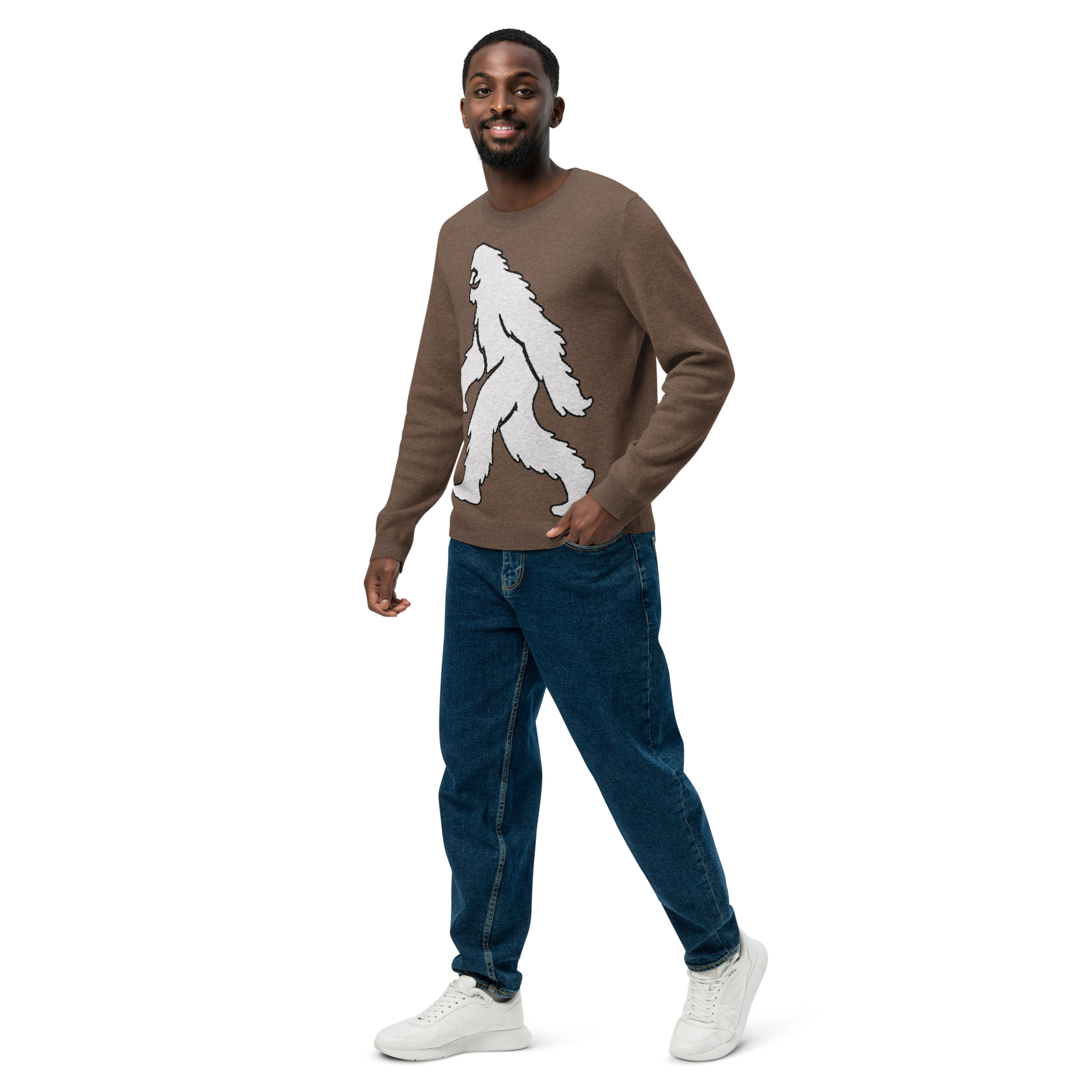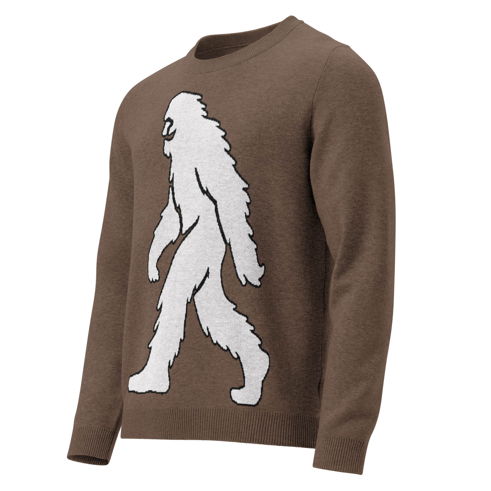 Unisex Knitted Sweater Smiling Yeti Bigfoot Earth Brown