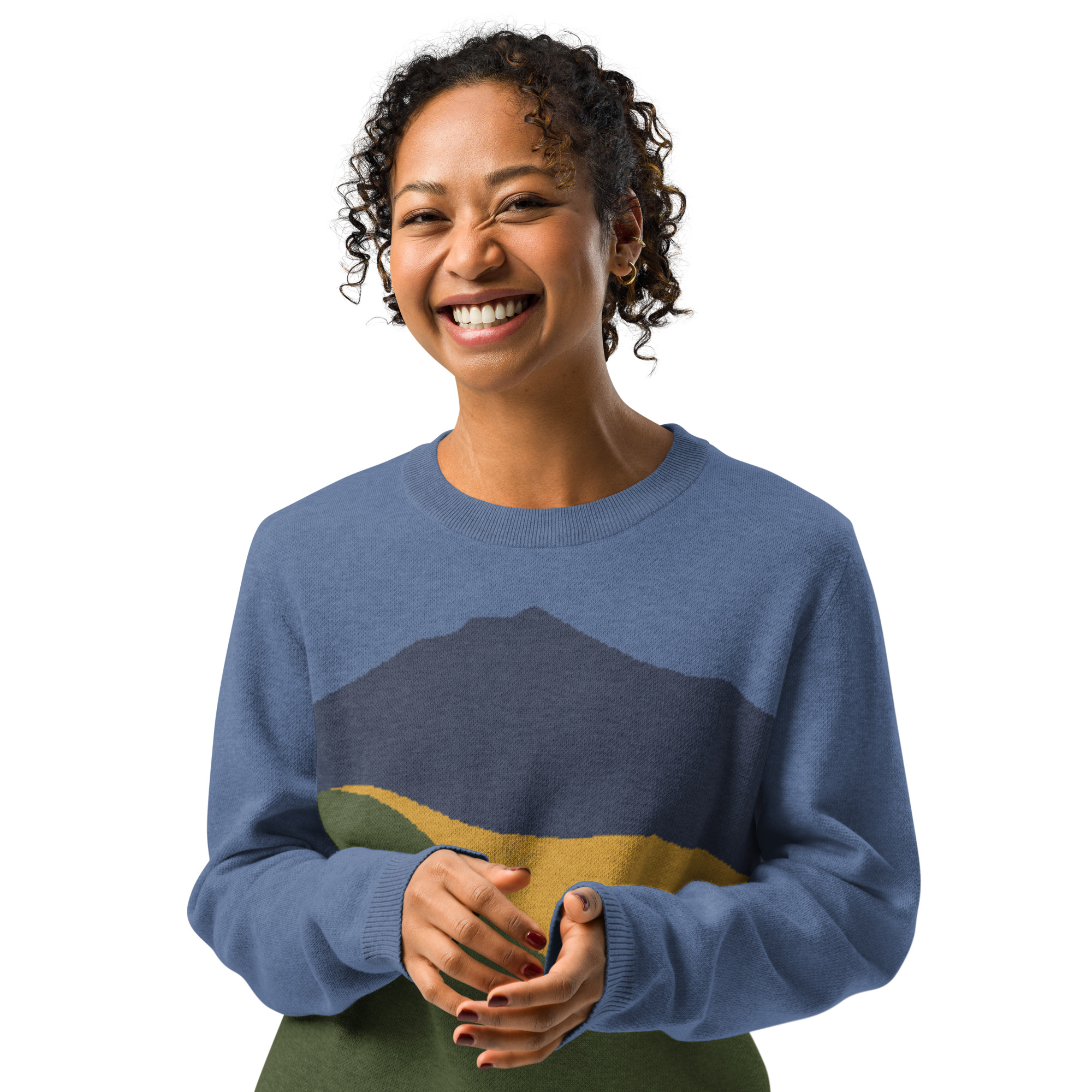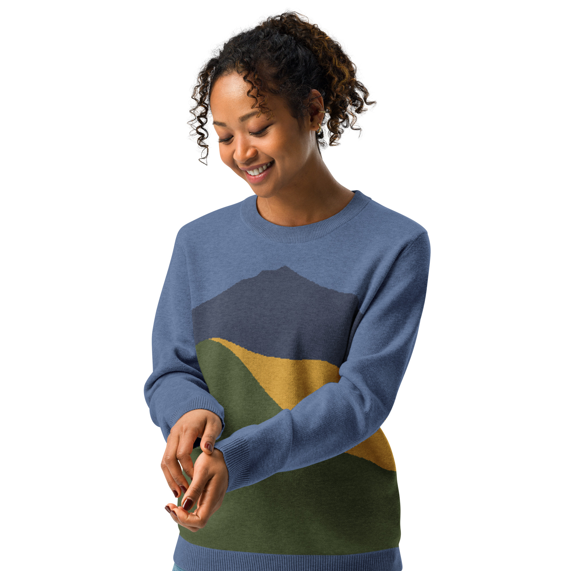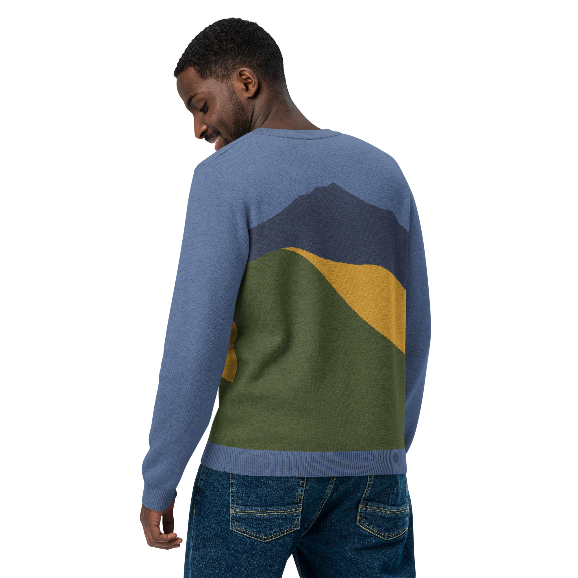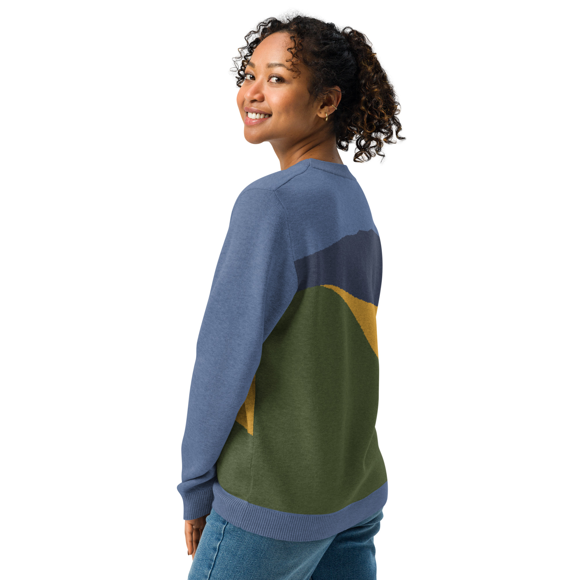 Knitted Sweater Vivid Colors of Mt Tamalpais Denim Navy Gold Olive