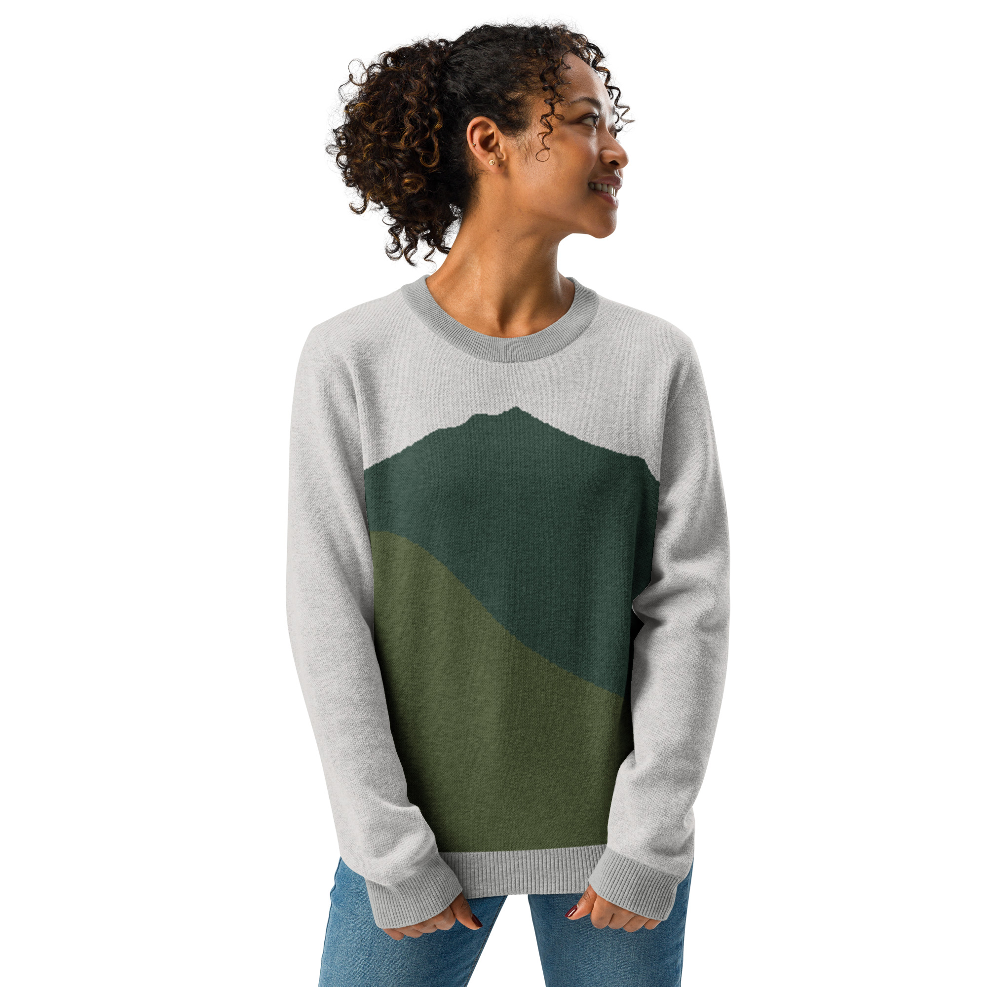Unisex Knitted Sweater Vivid Colors of Mt Tamalpais Grays Pine Olive by Mhana from Heaven©