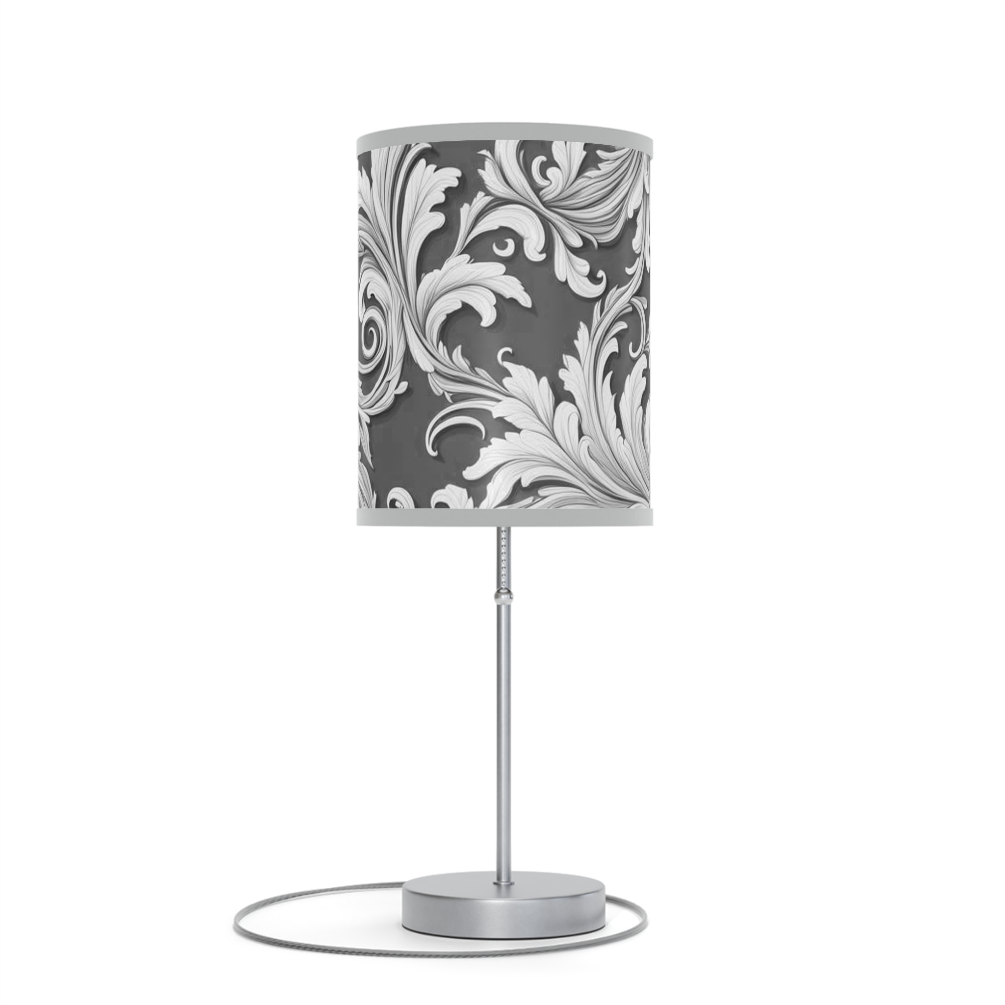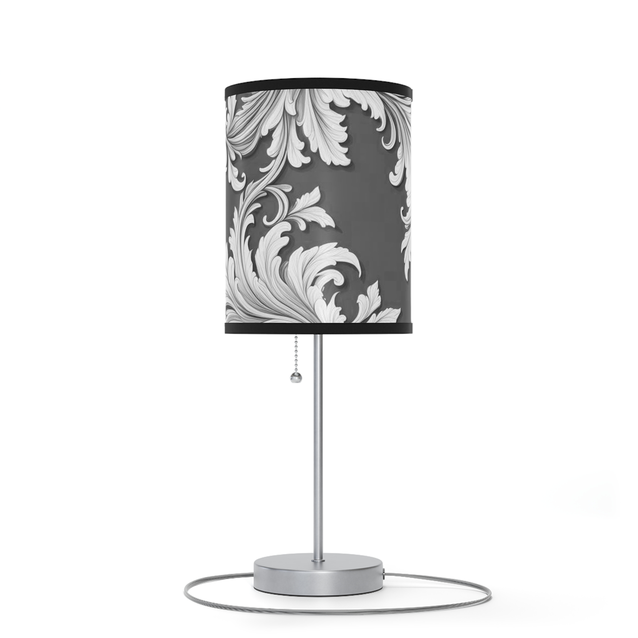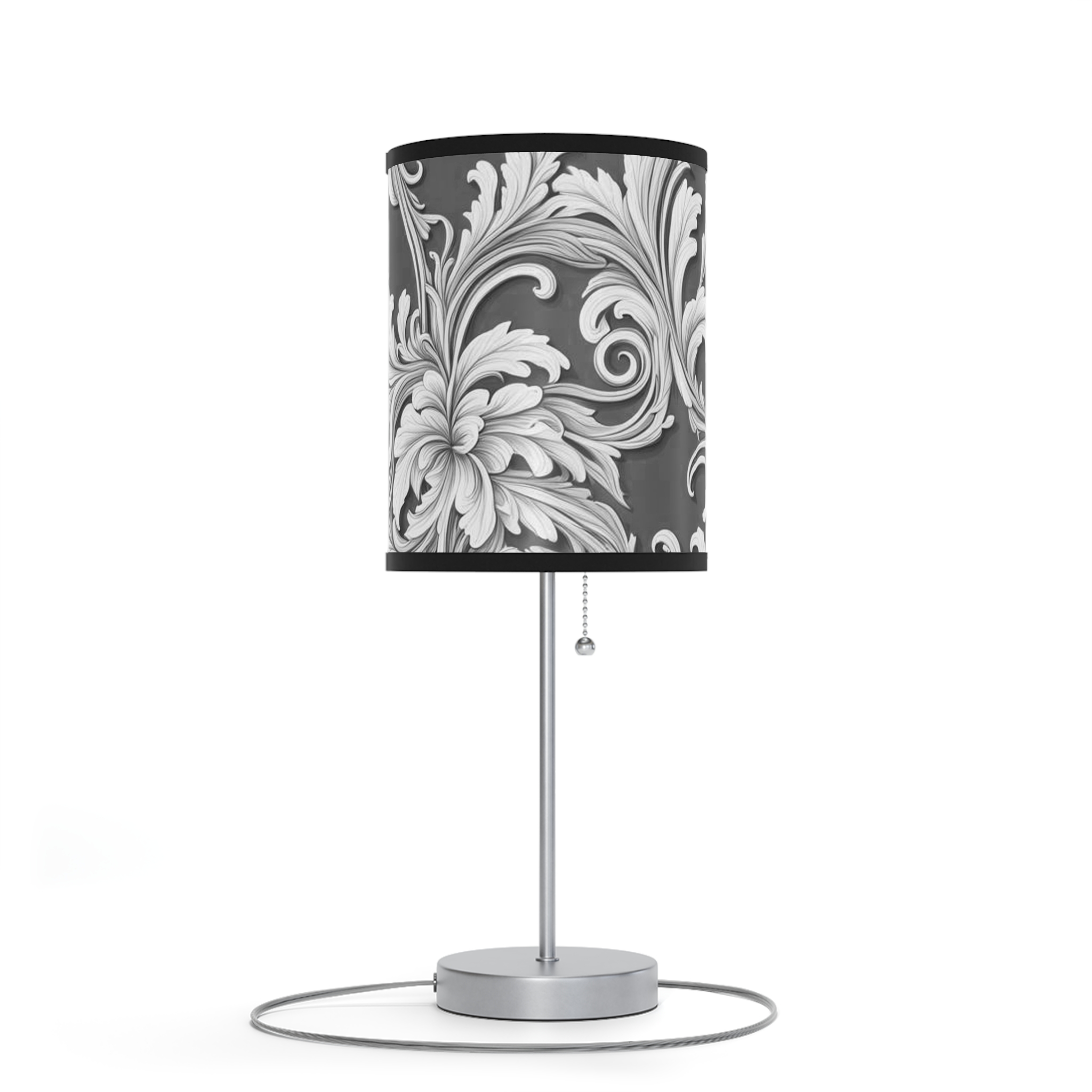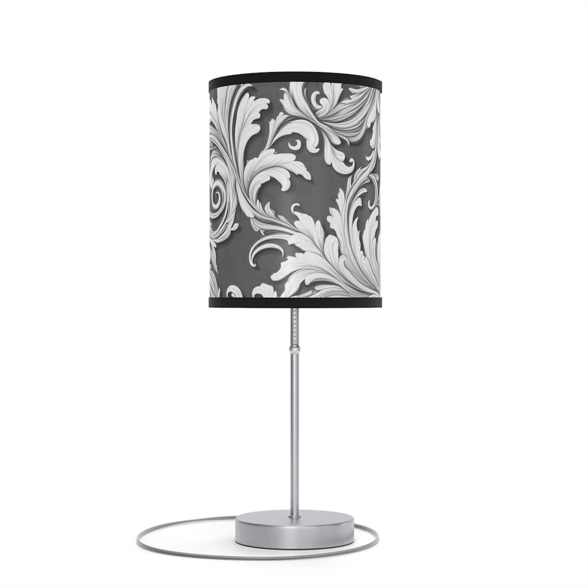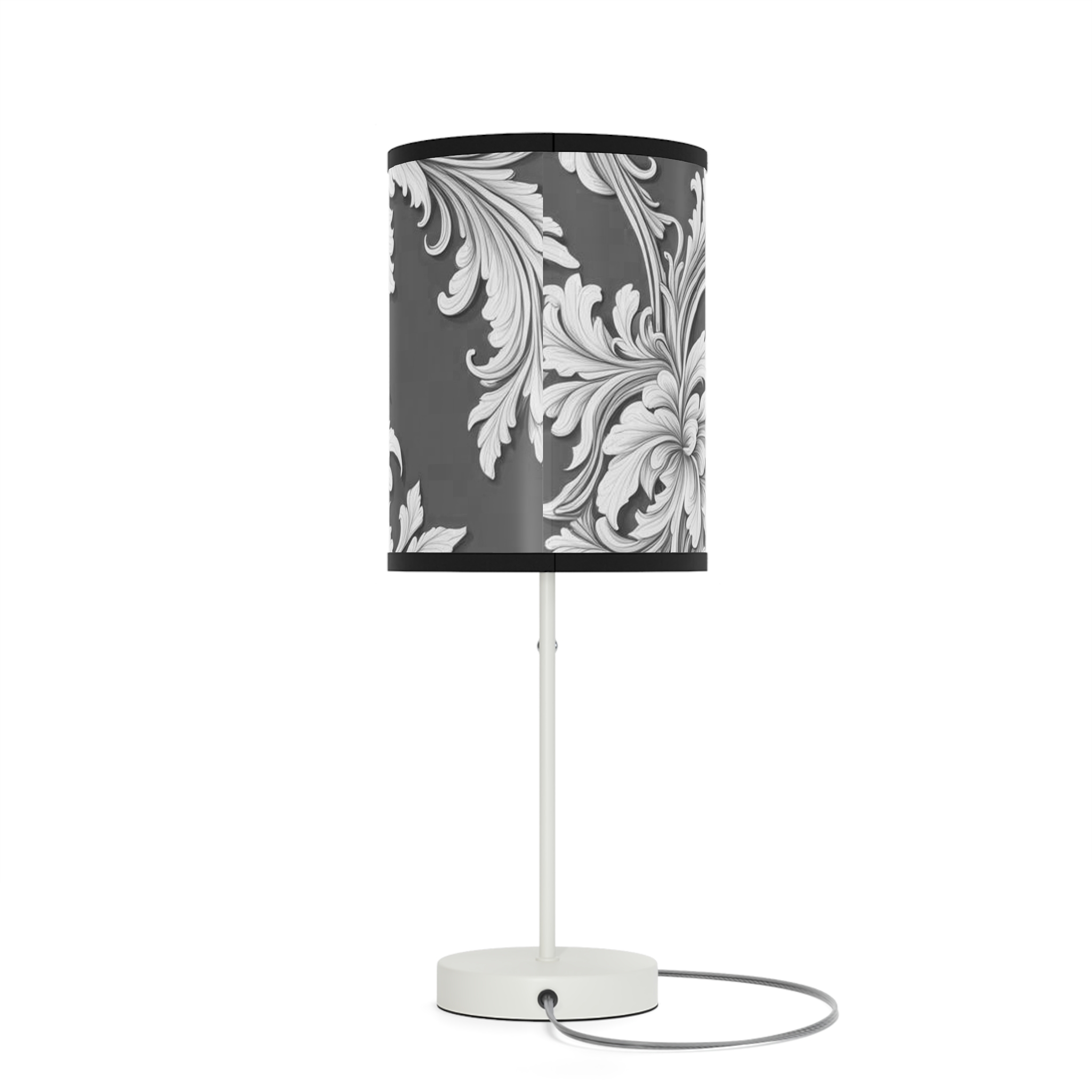 Lamp on a Stand, US|CA plug Damask Design Gray Black & White