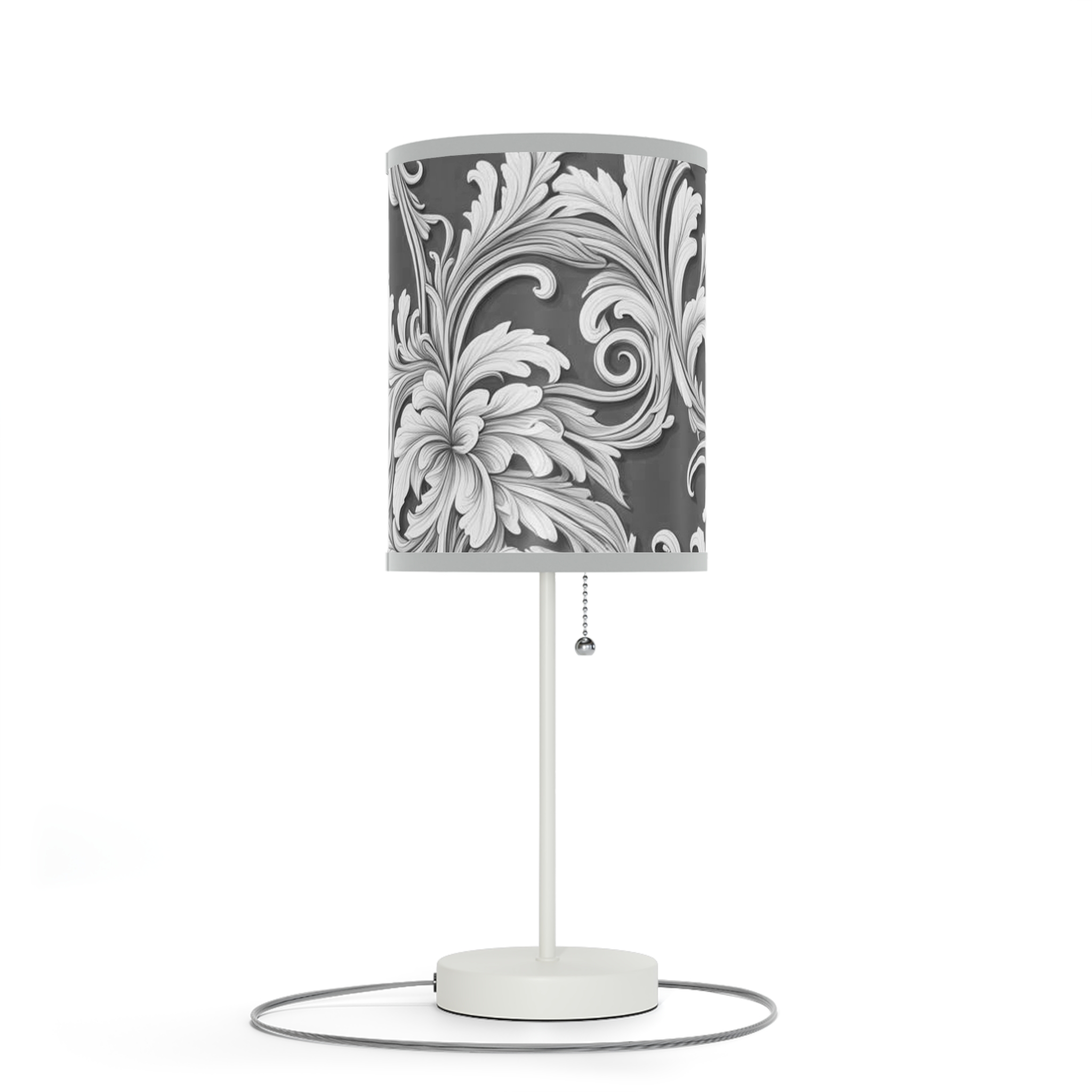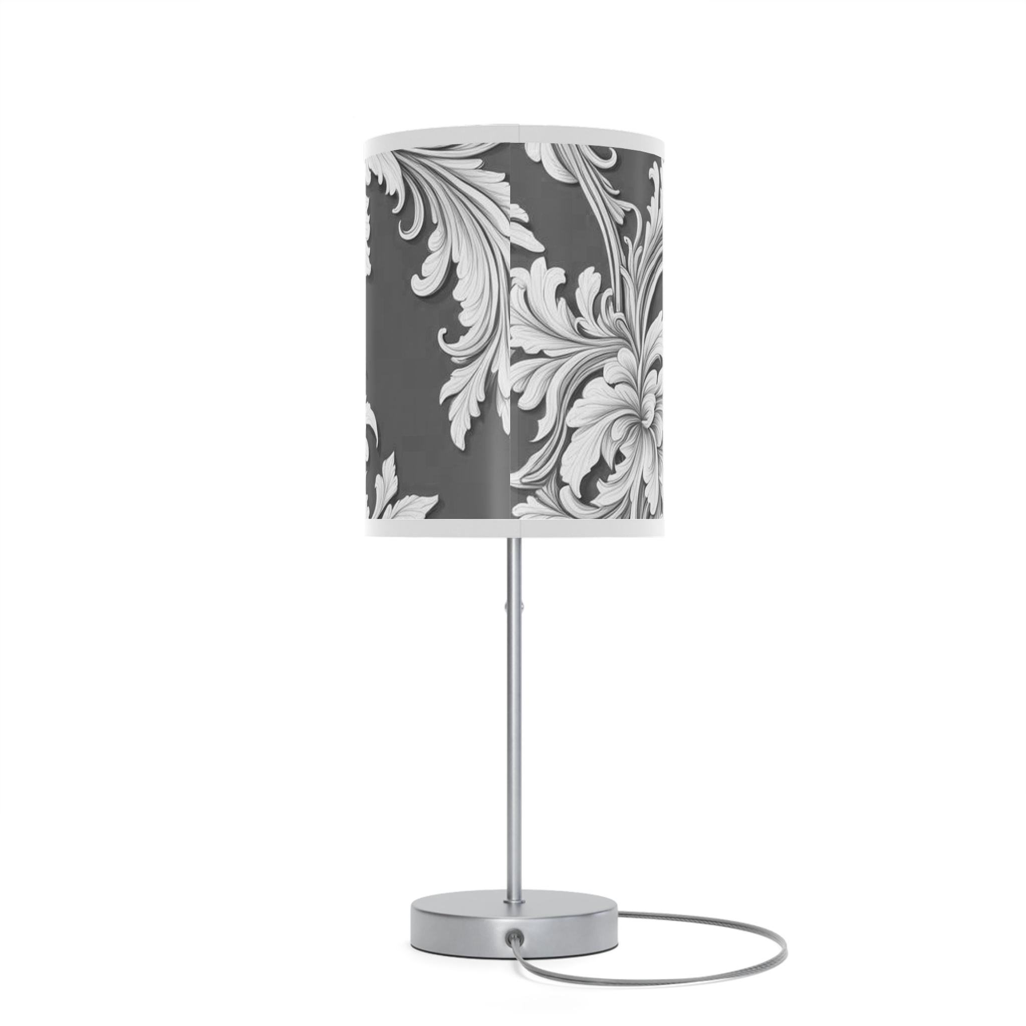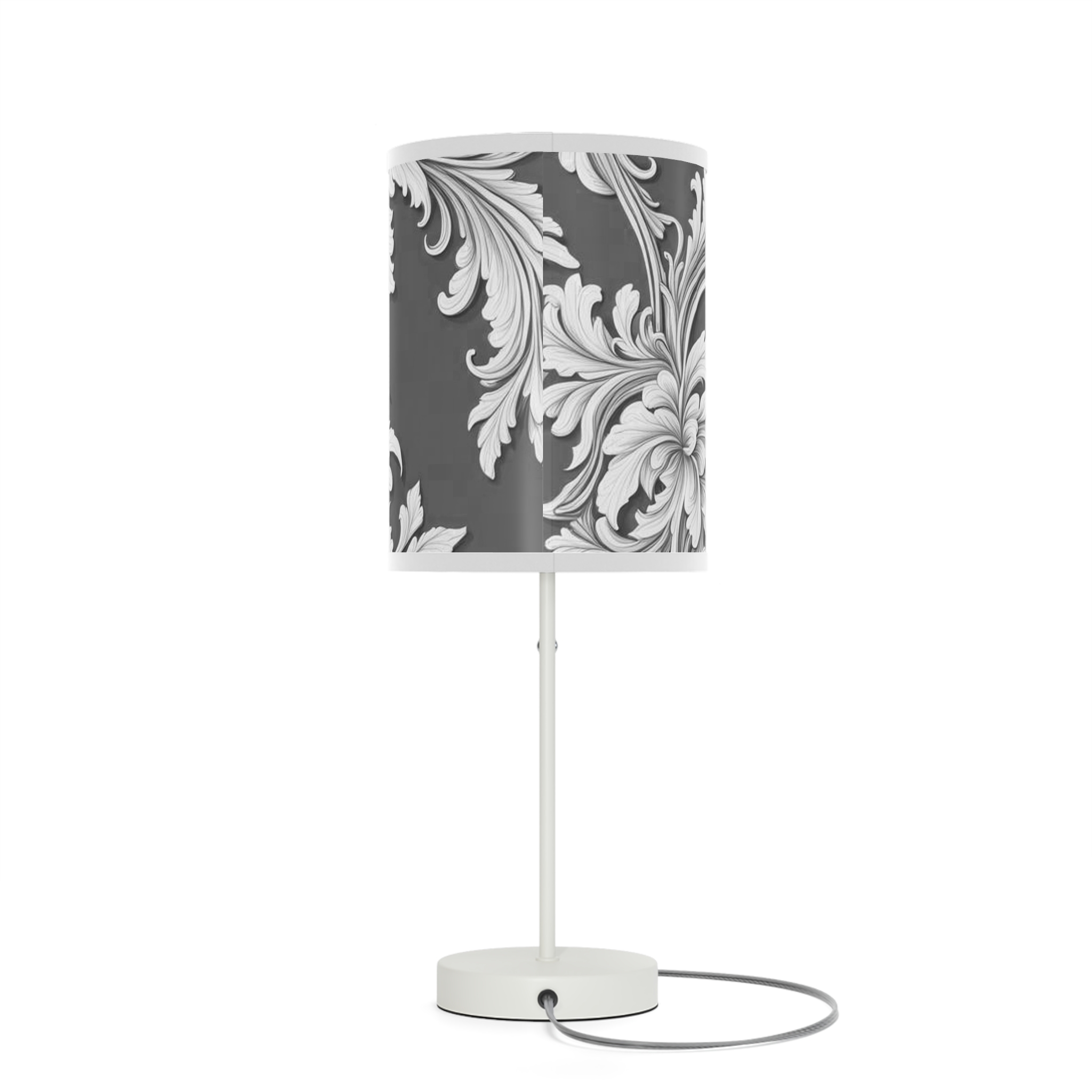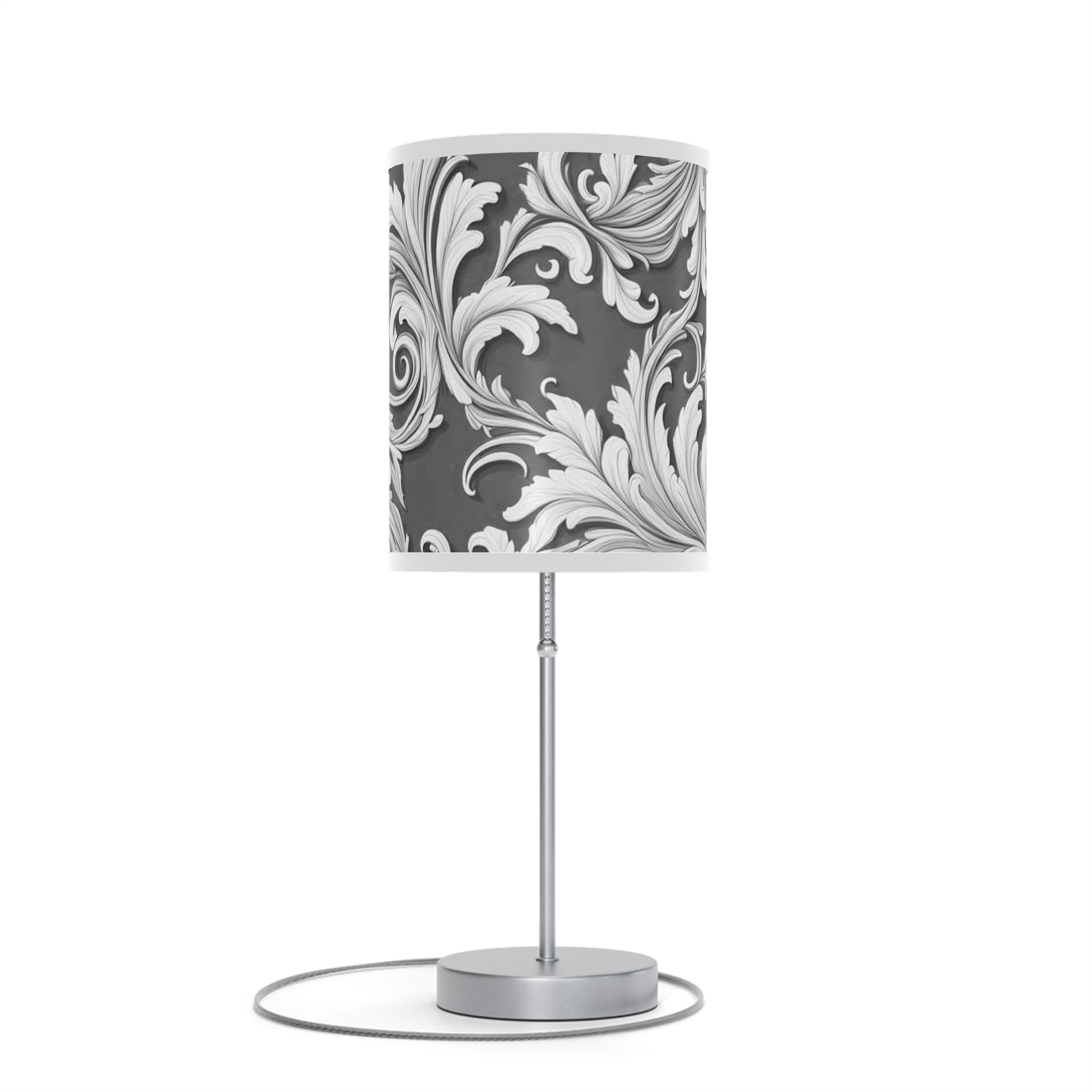 Lamp on a Stand, US|CA plug Damask Design Gray Black & White