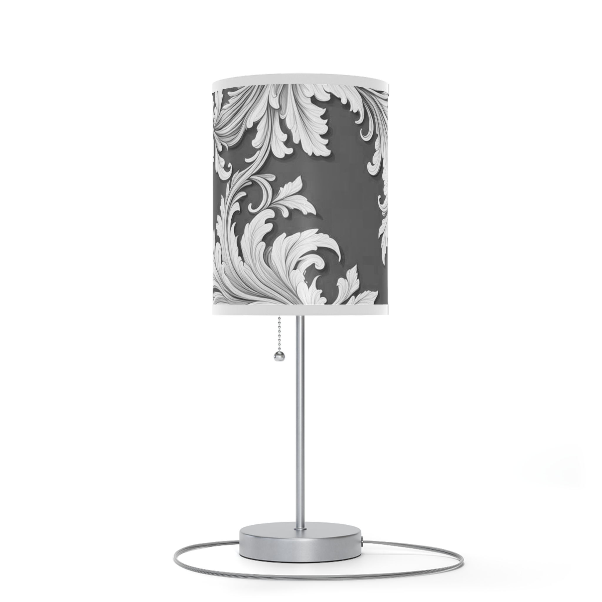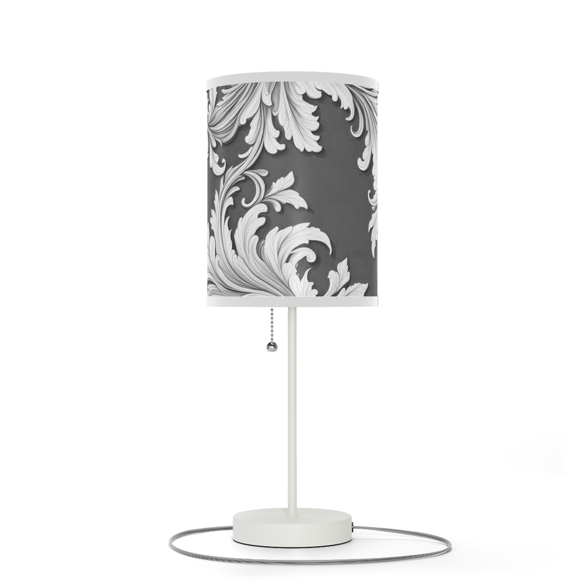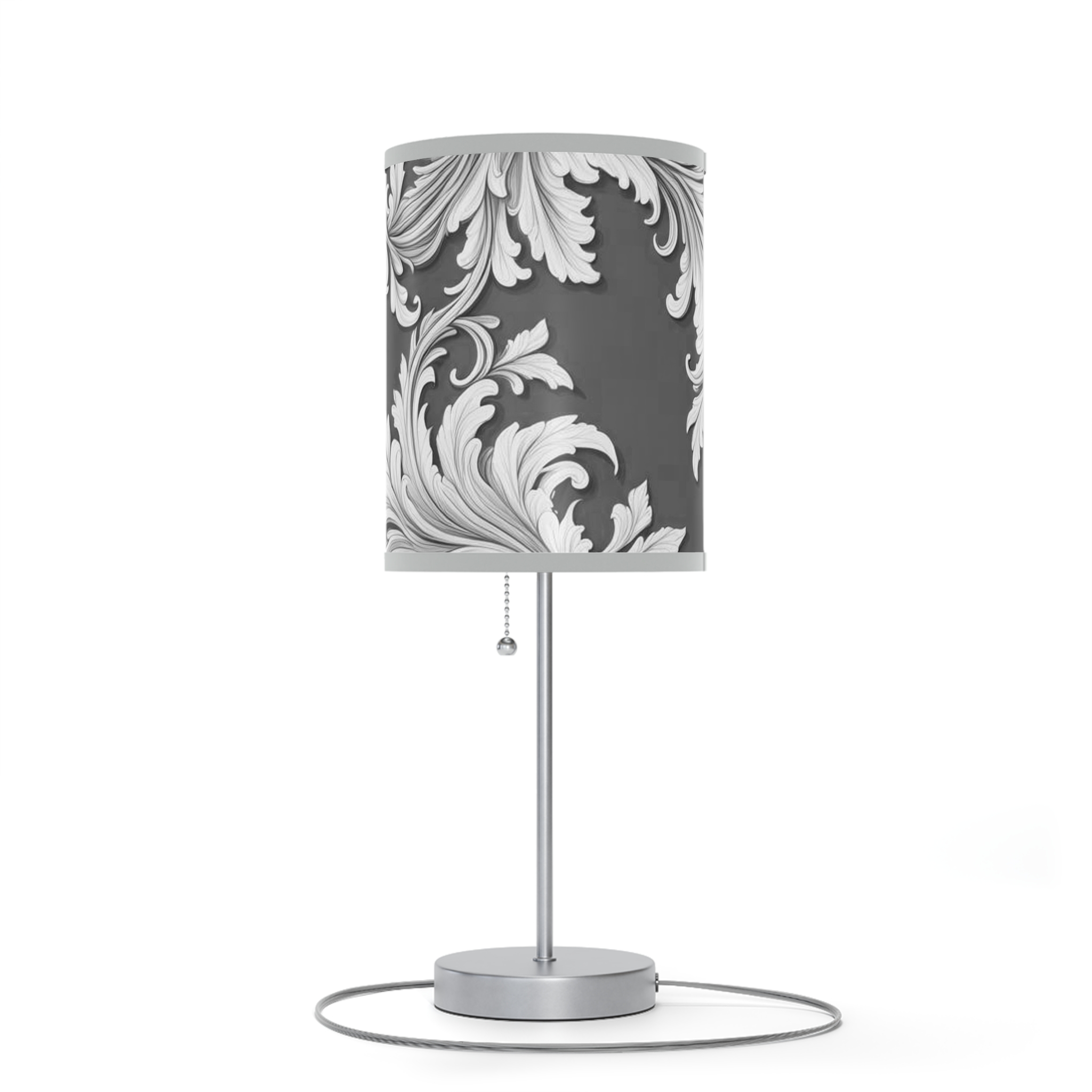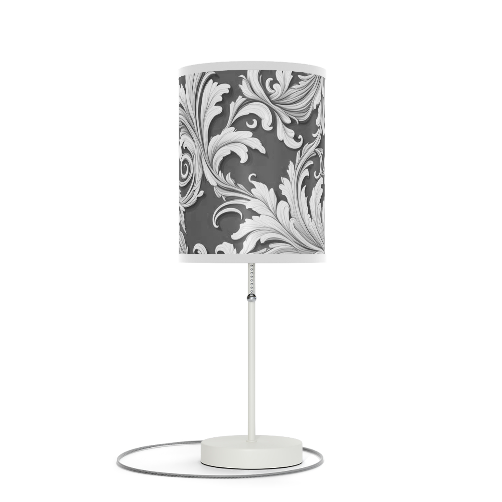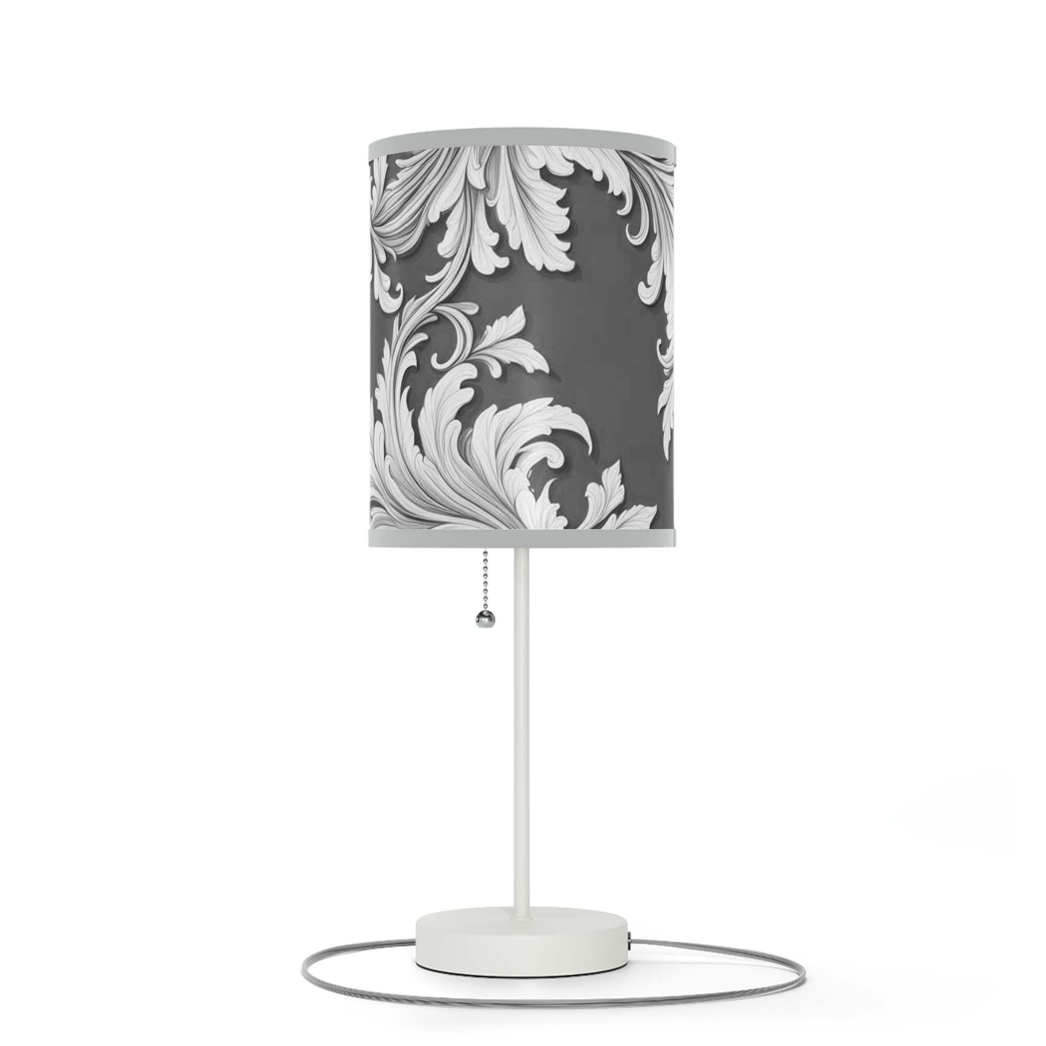 Lamp on a Stand, US|CA plug Damask Design Gray Black & White