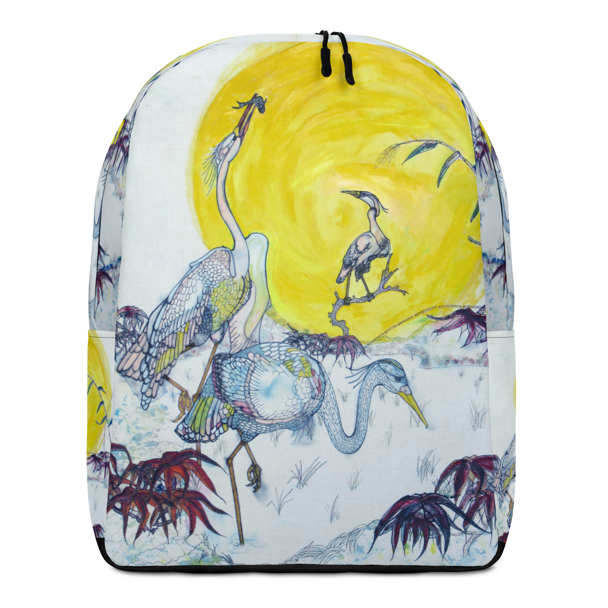 Minimalist Backpack Herons Fishing by Moonlight Painting (print)