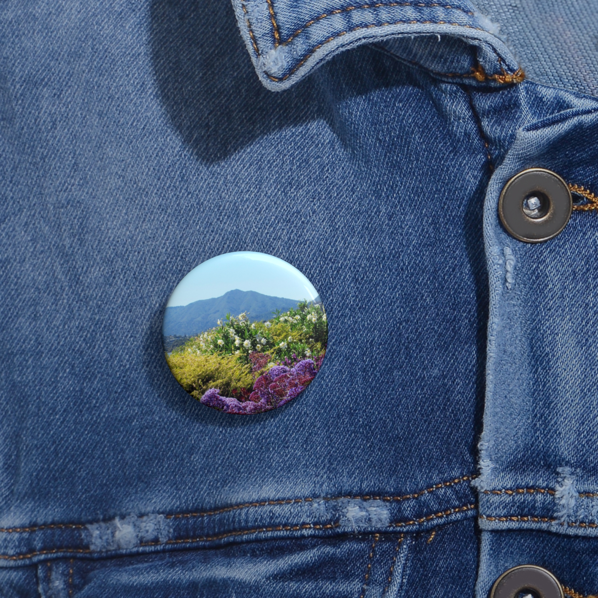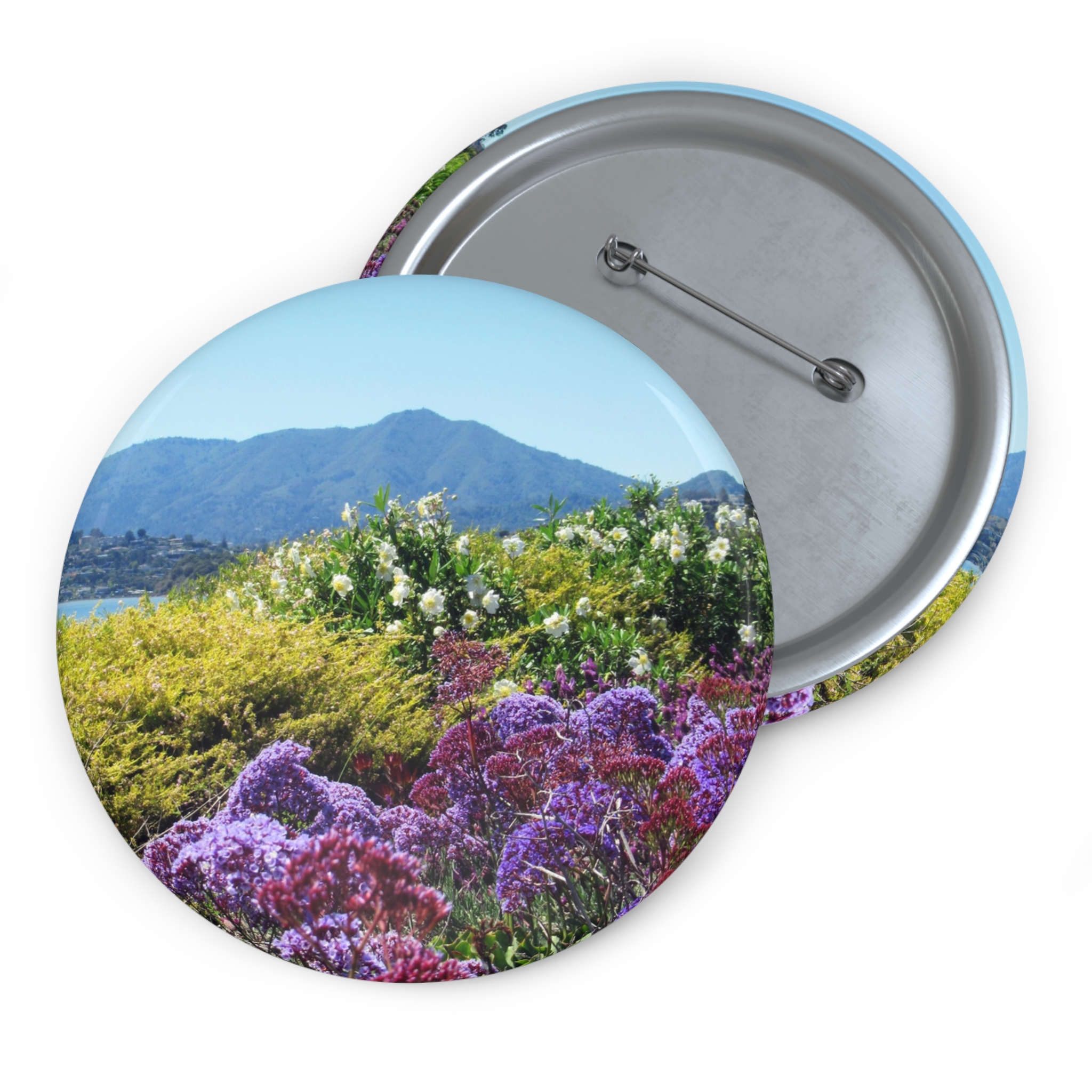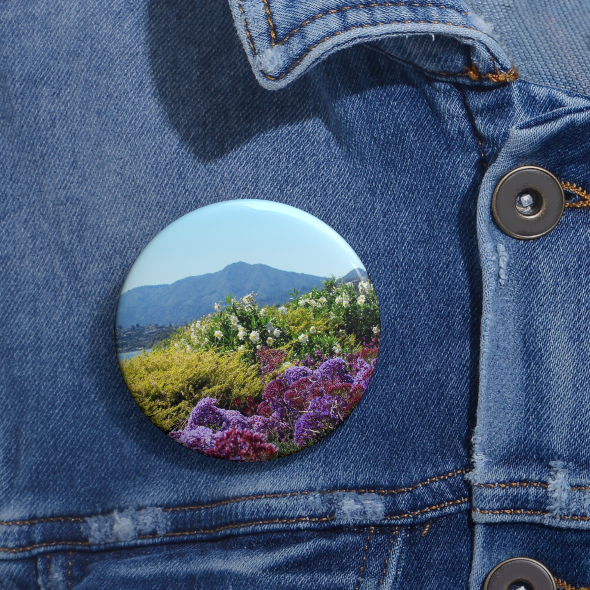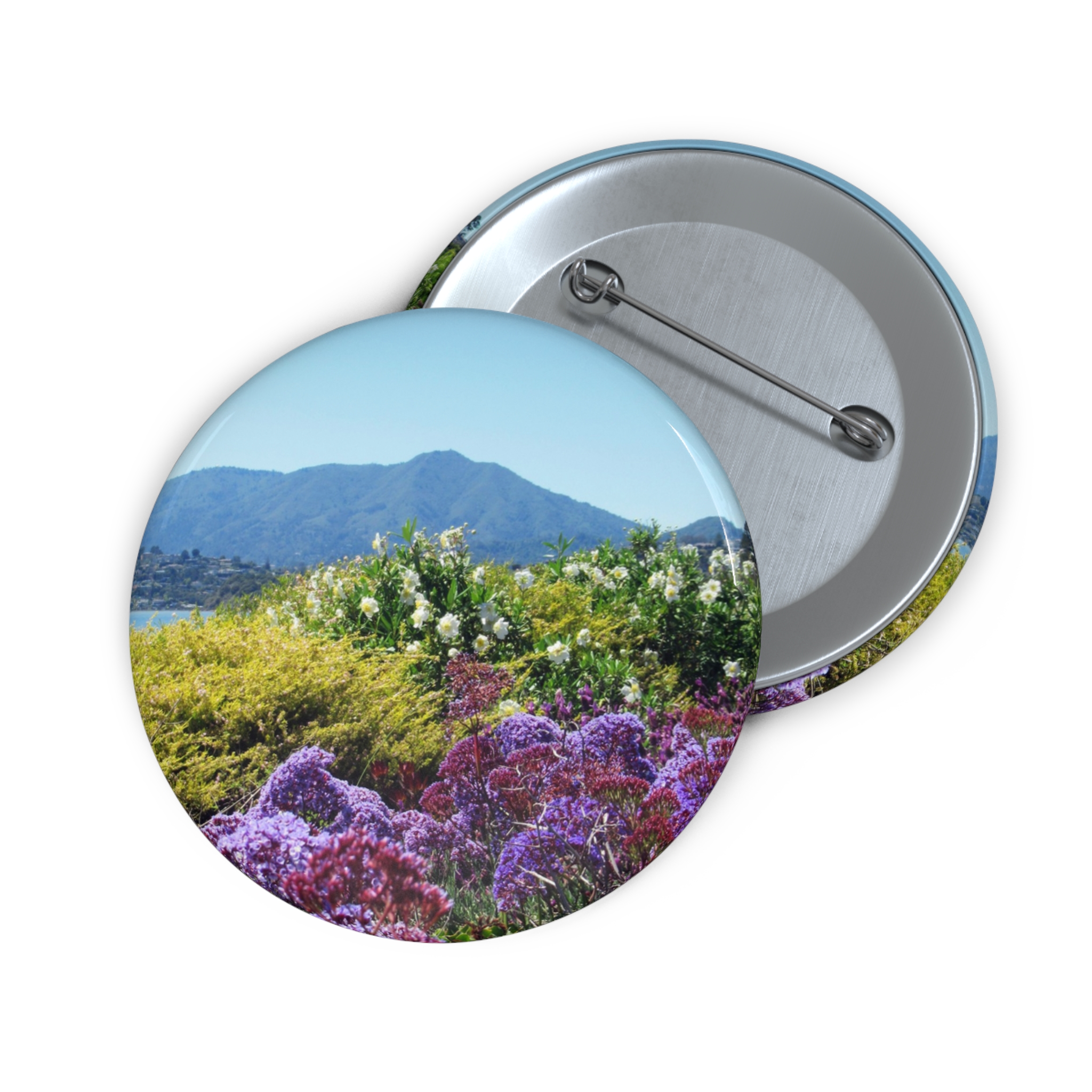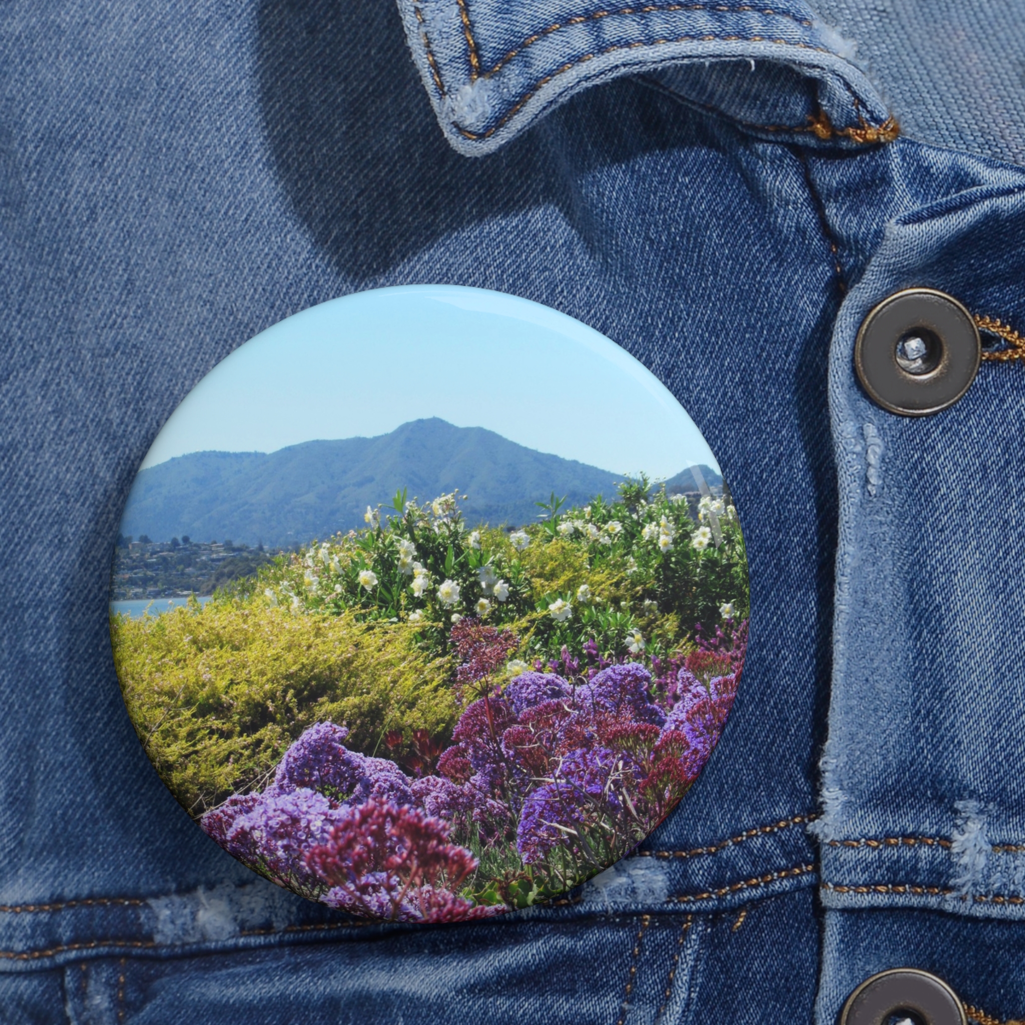 Mt Tamalpais Roses and Purple Flowers design – Pin Button – 3 sizes