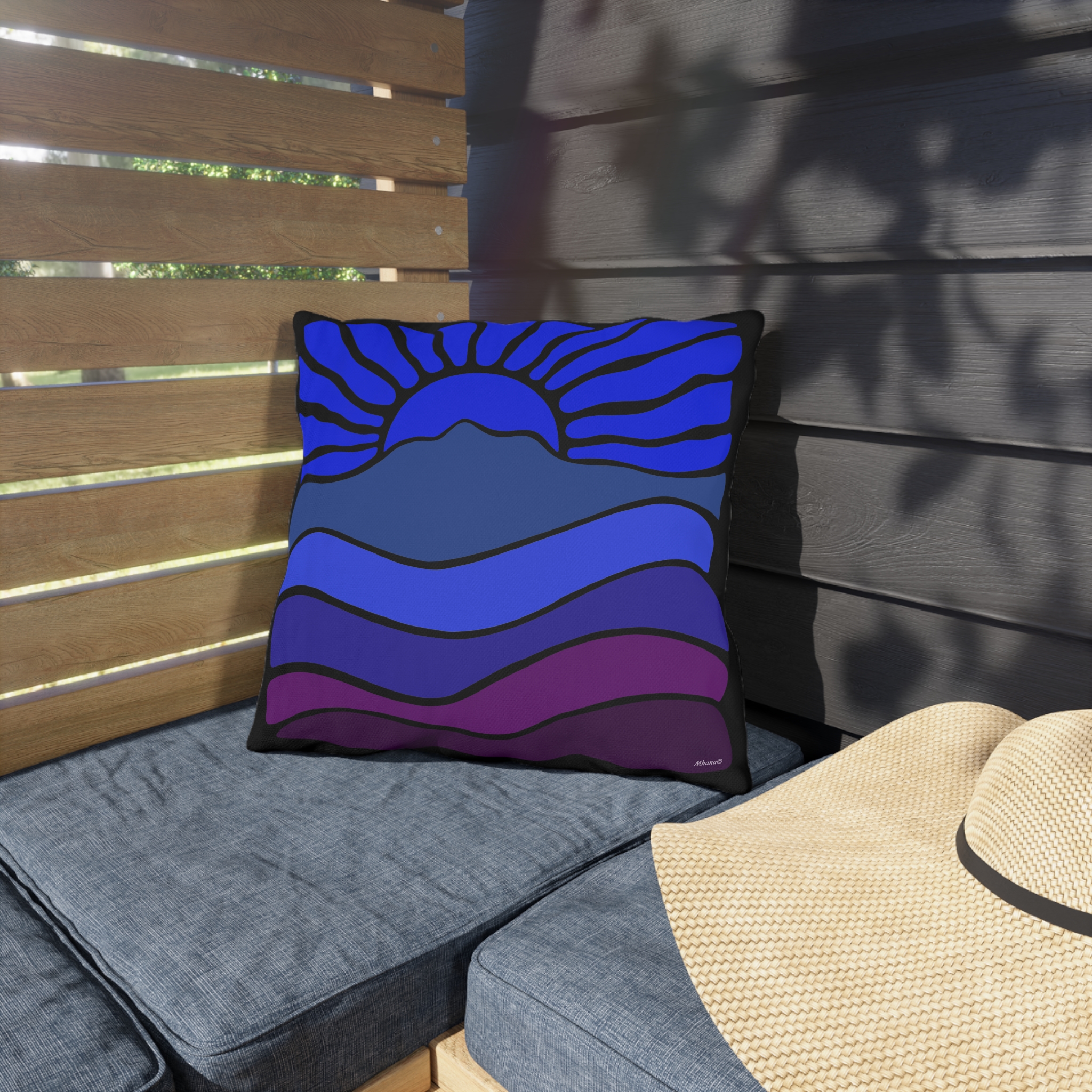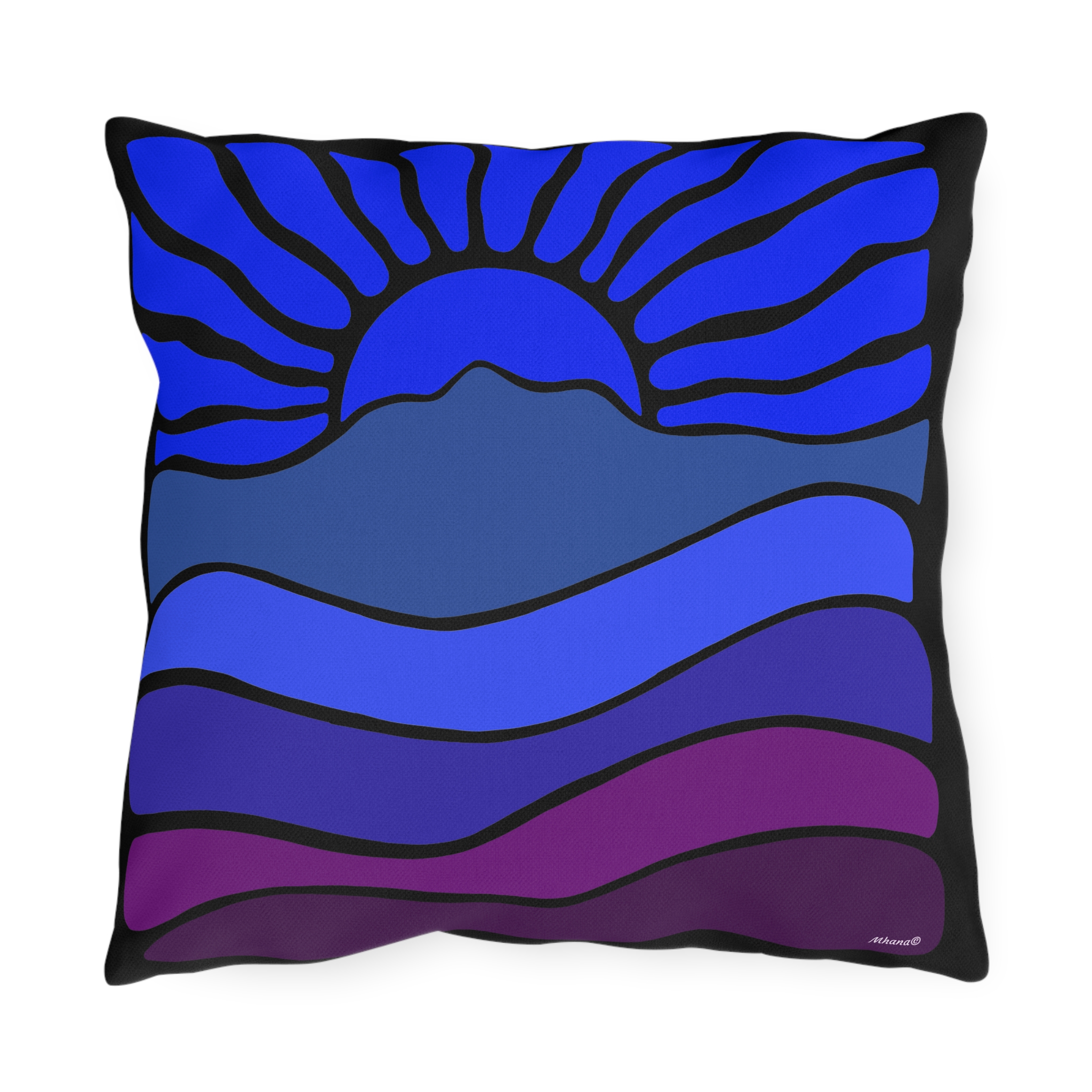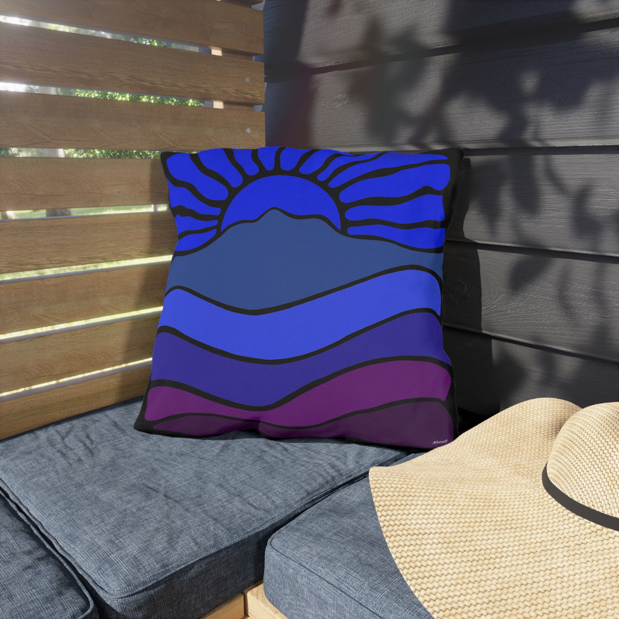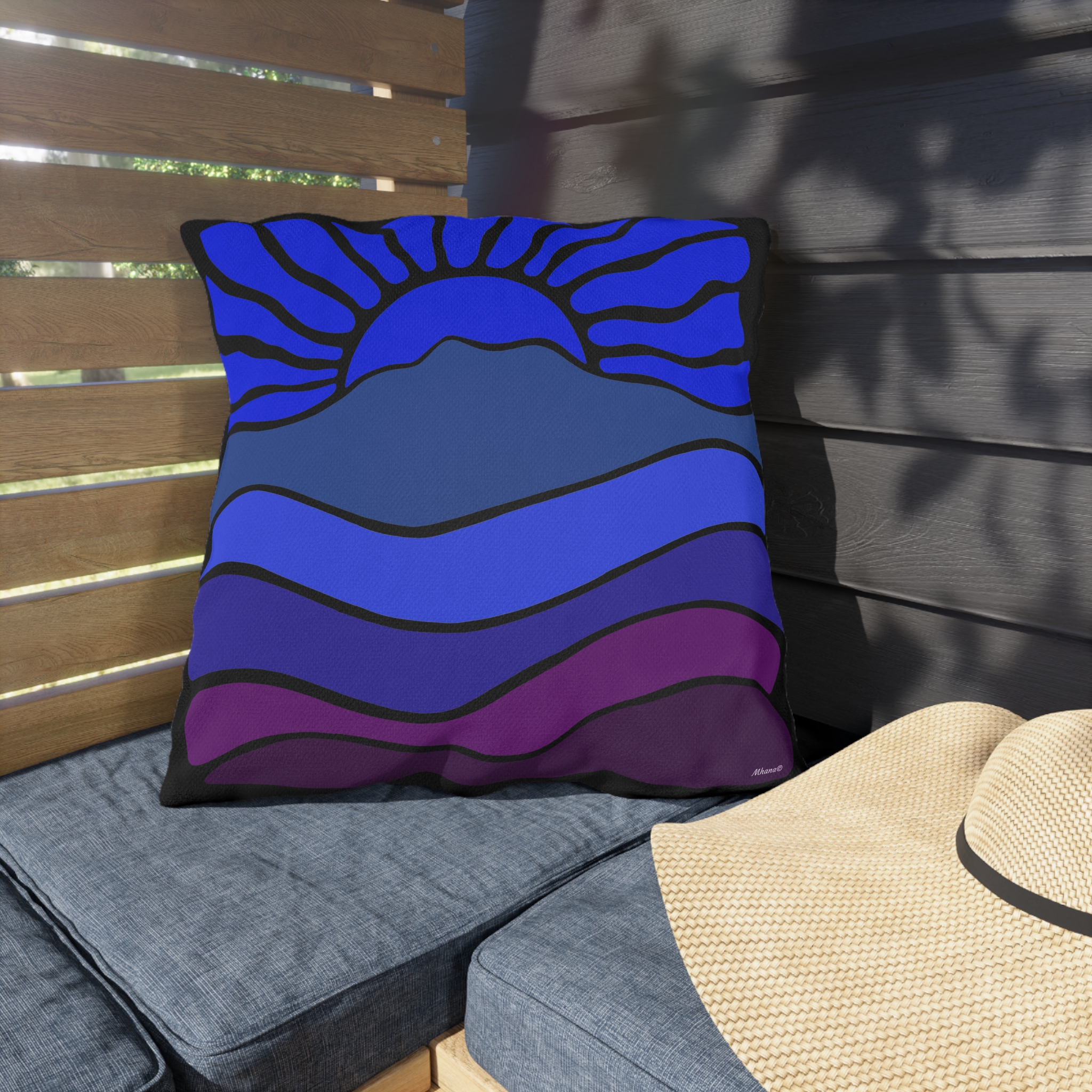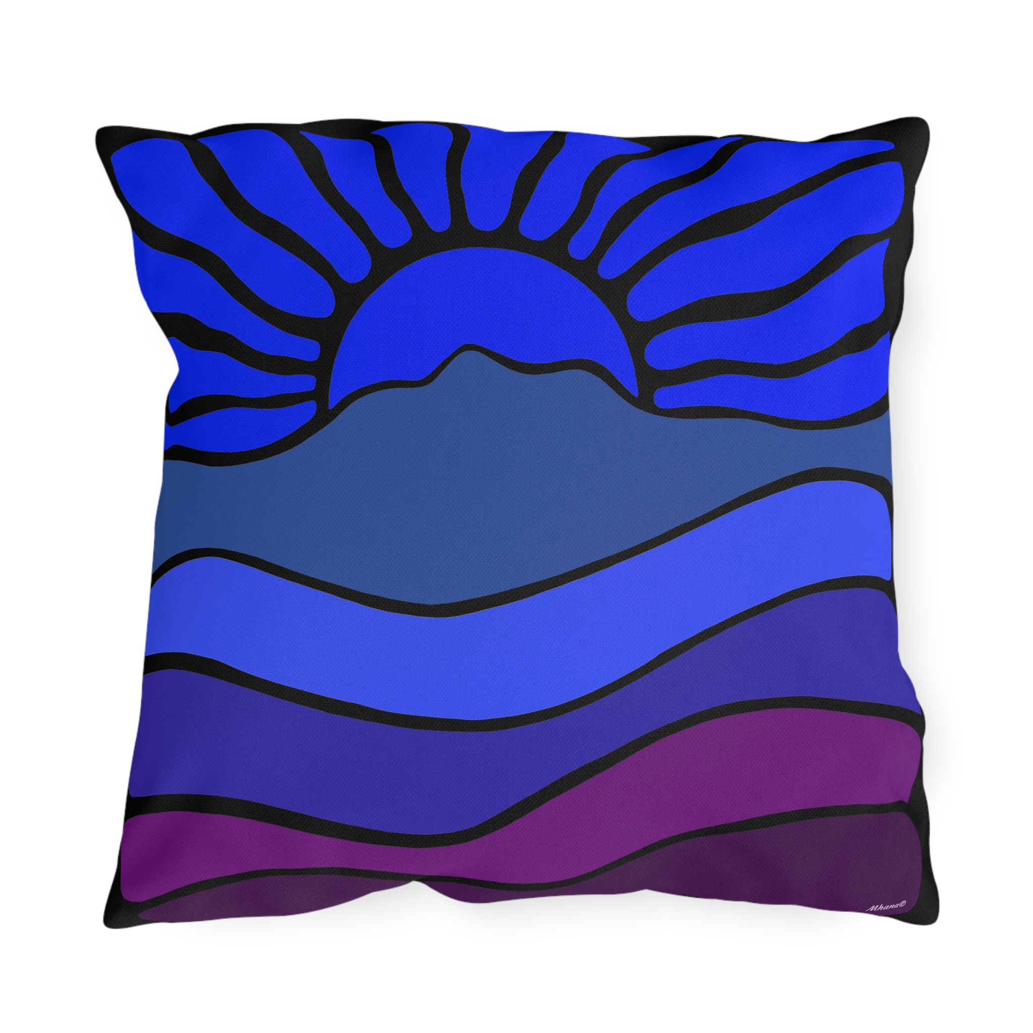 Outdoor Pillow – Groovy Retro Mt Tamalpais Sun – Vibrant Decorative Cushion for Outdoor Living