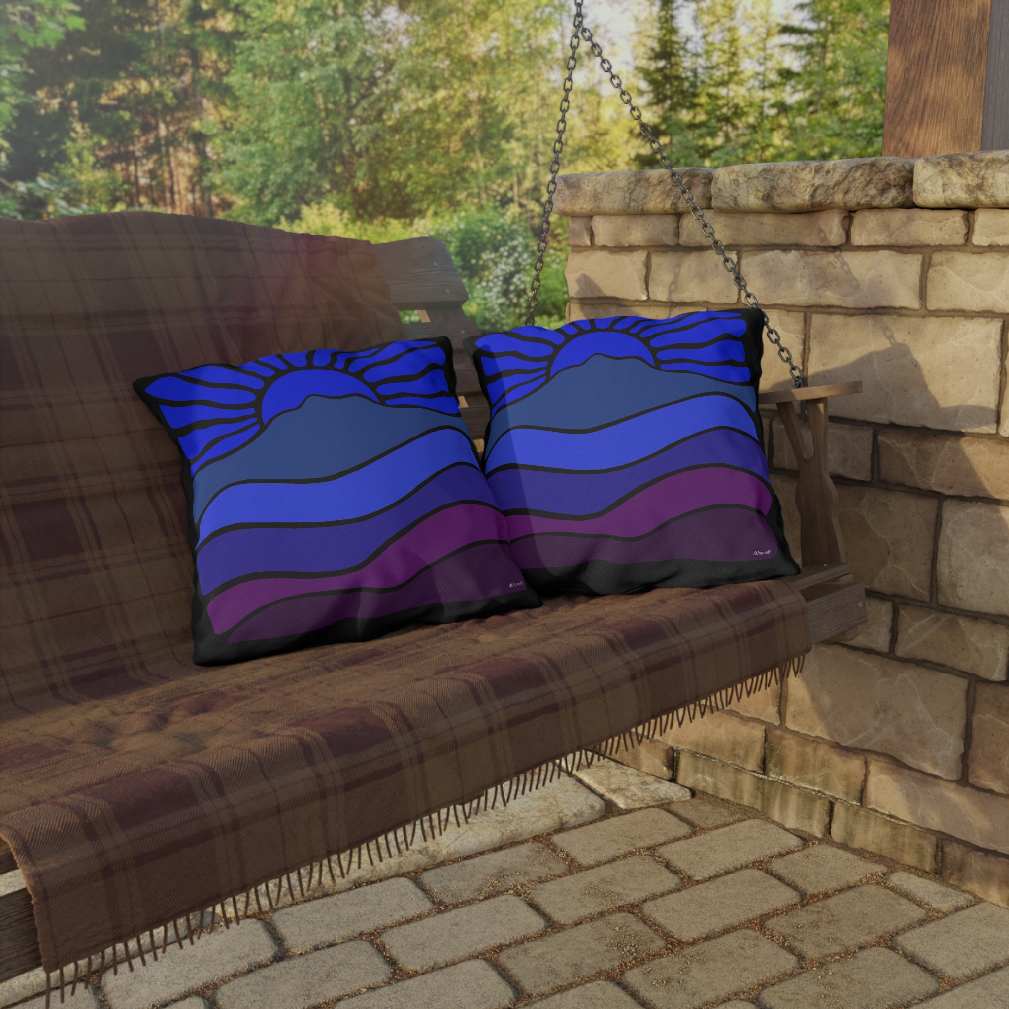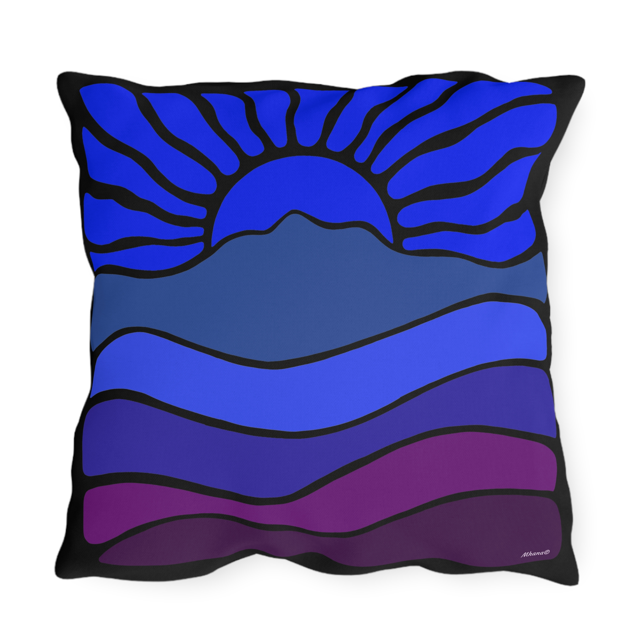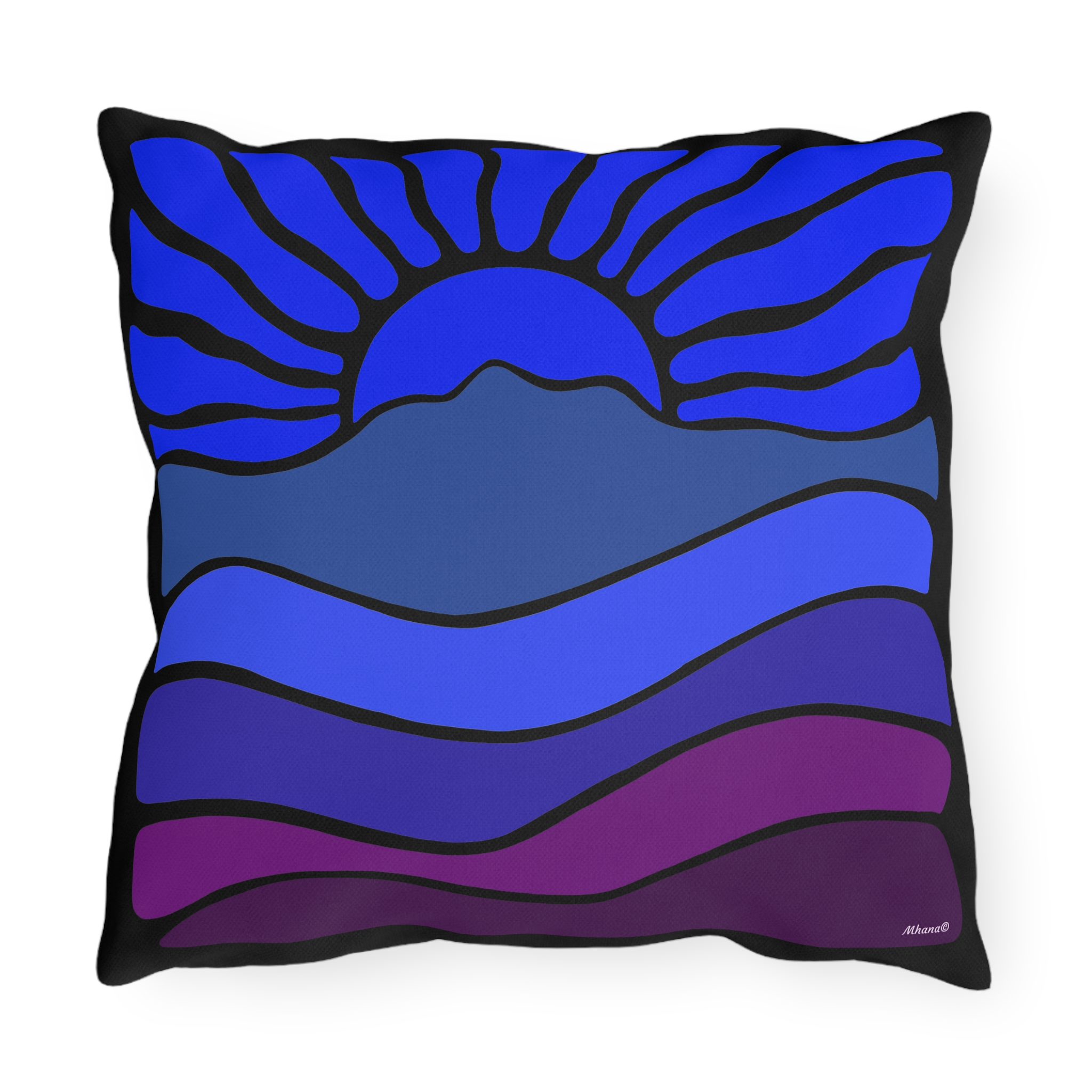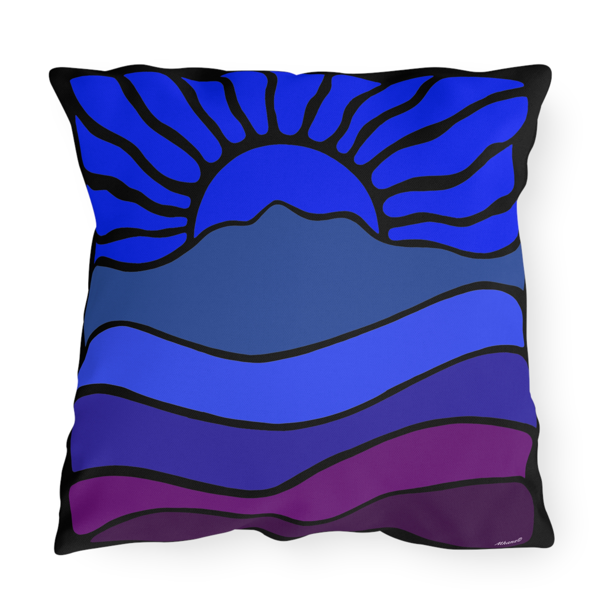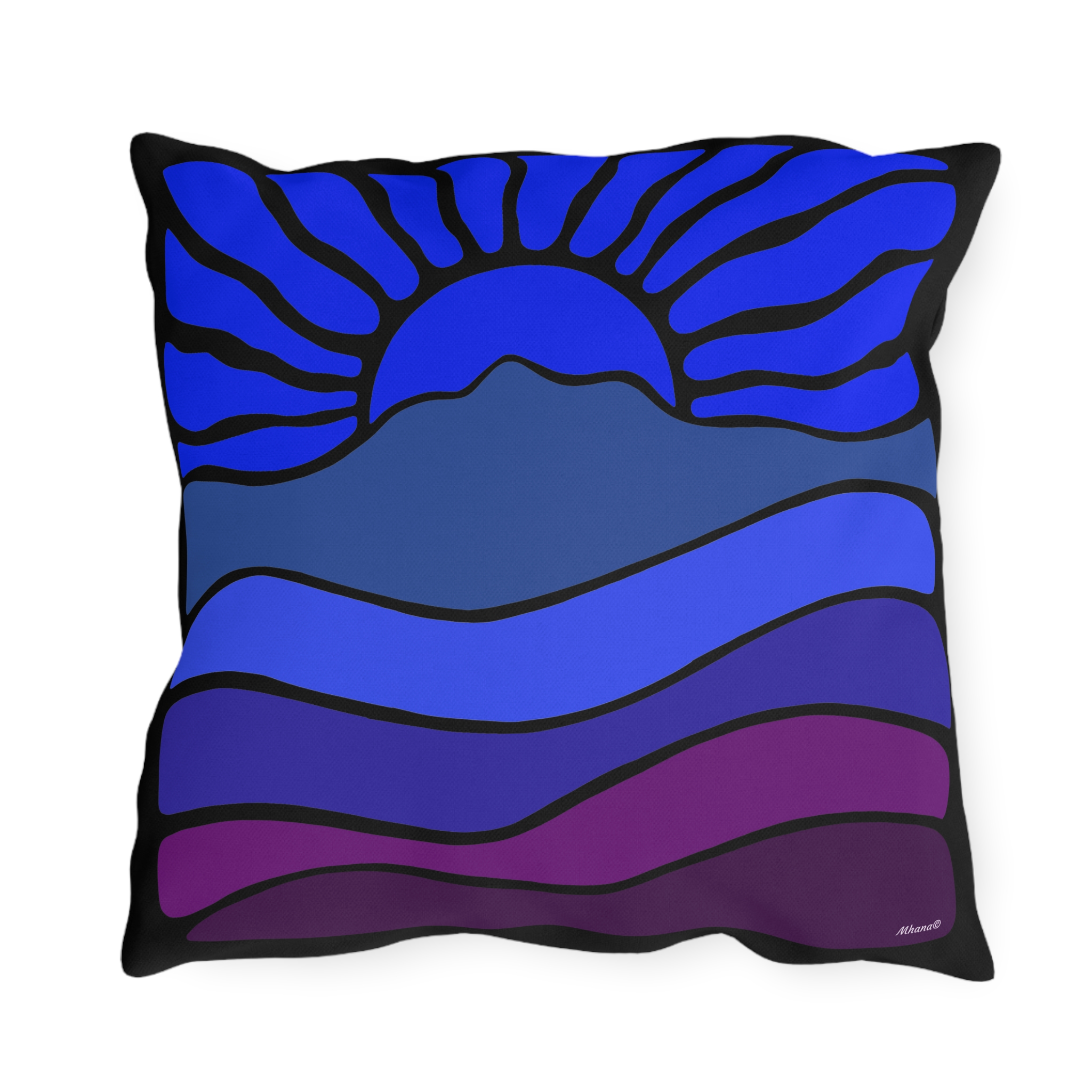 Outdoor Pillow – Groovy Retro Mt Tamalpais Sun – Vibrant Decorative Cushion for Outdoor Living