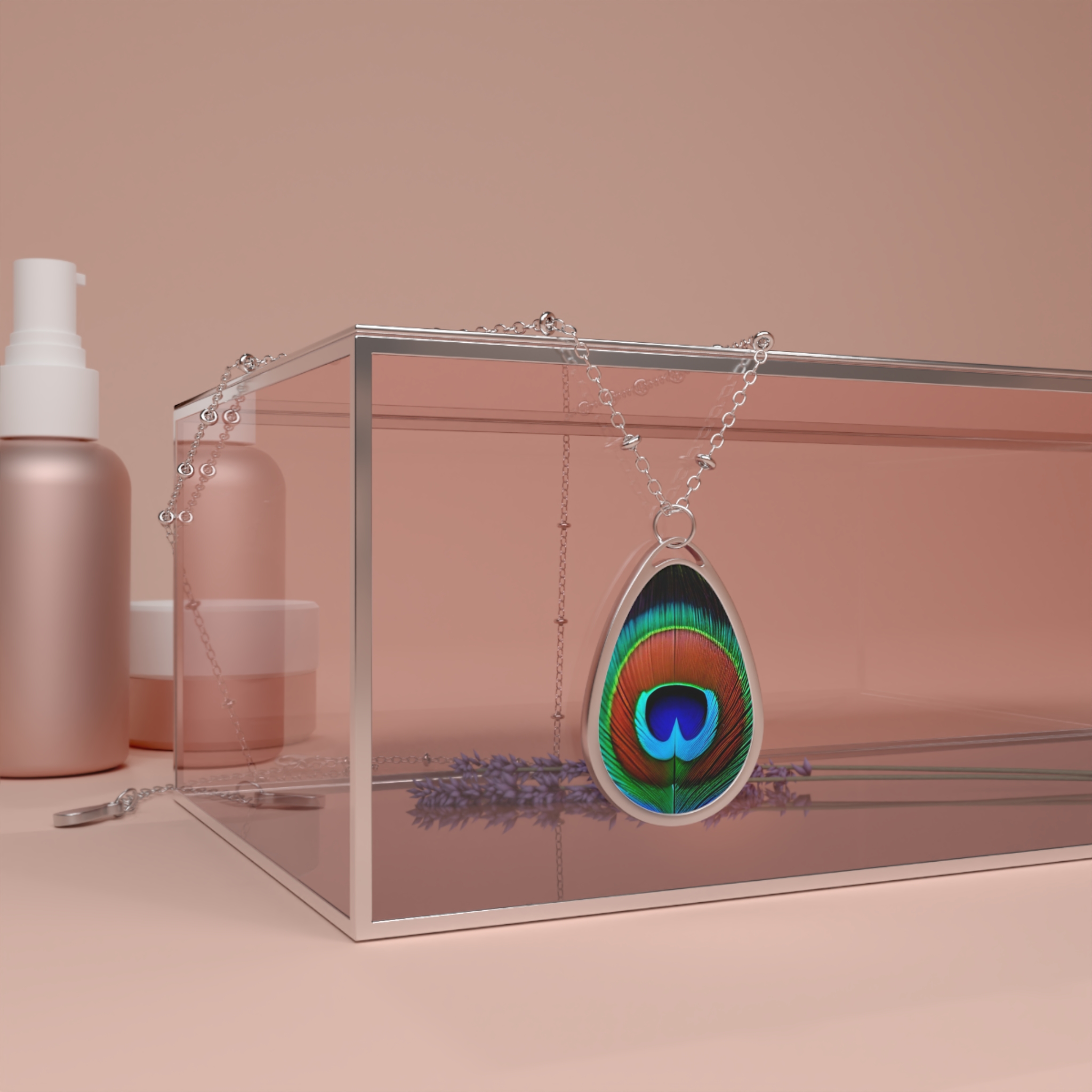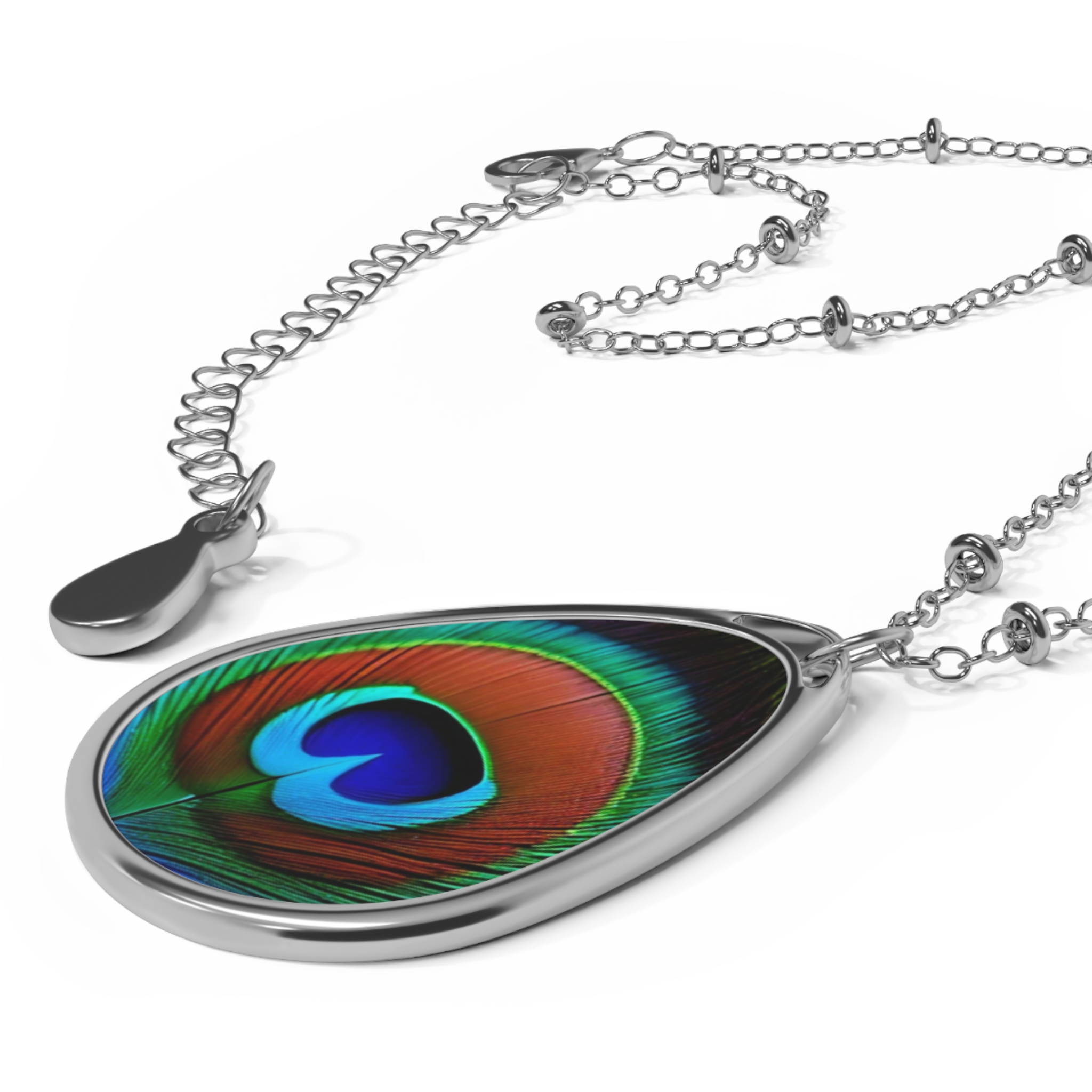 Oval Necklace Peacock Feather
