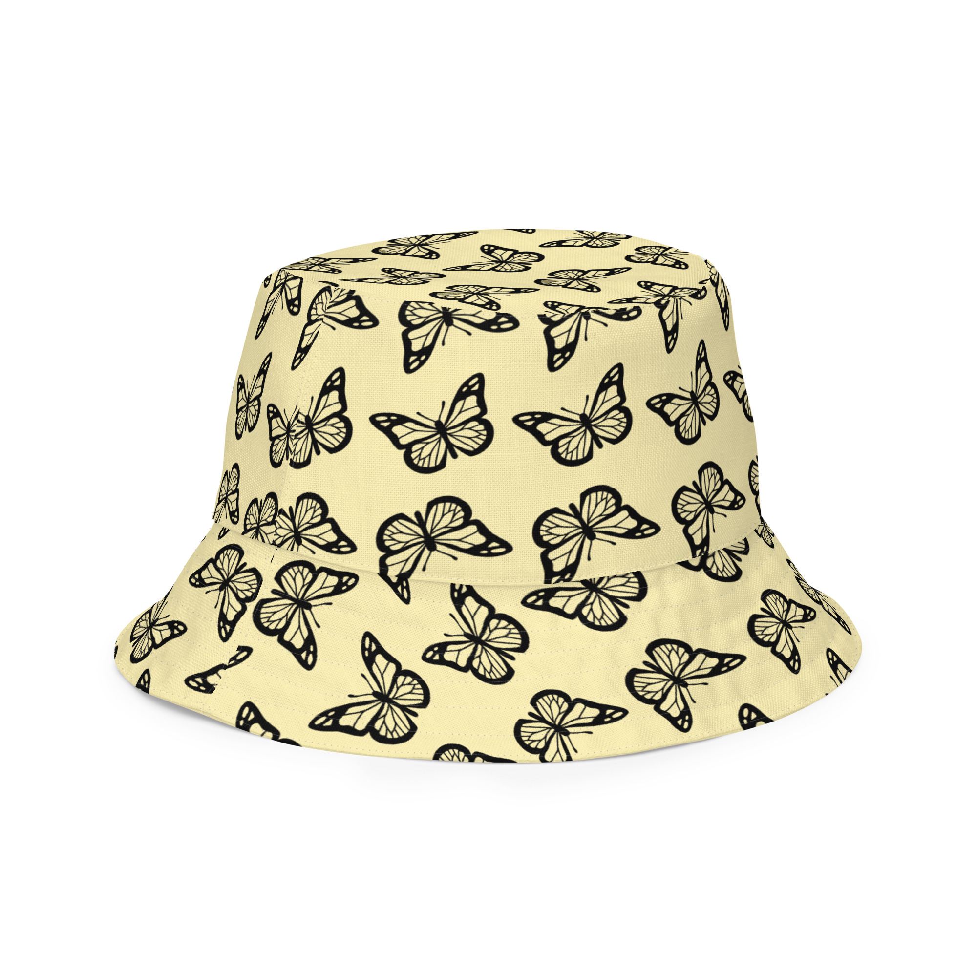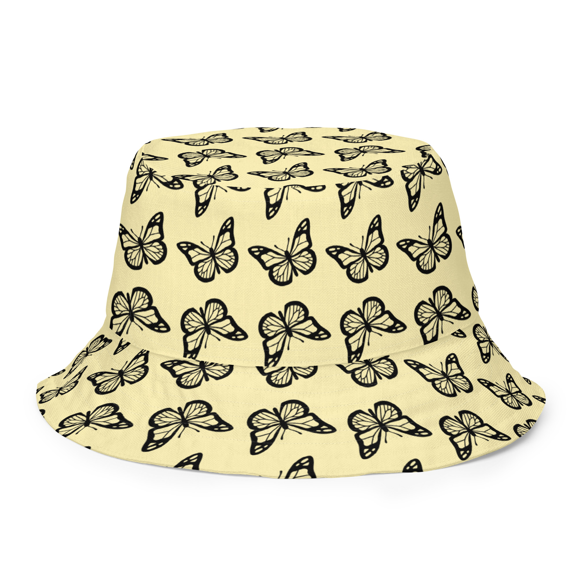 Reversible bucket hat Pink Butterflies Yellow Inside