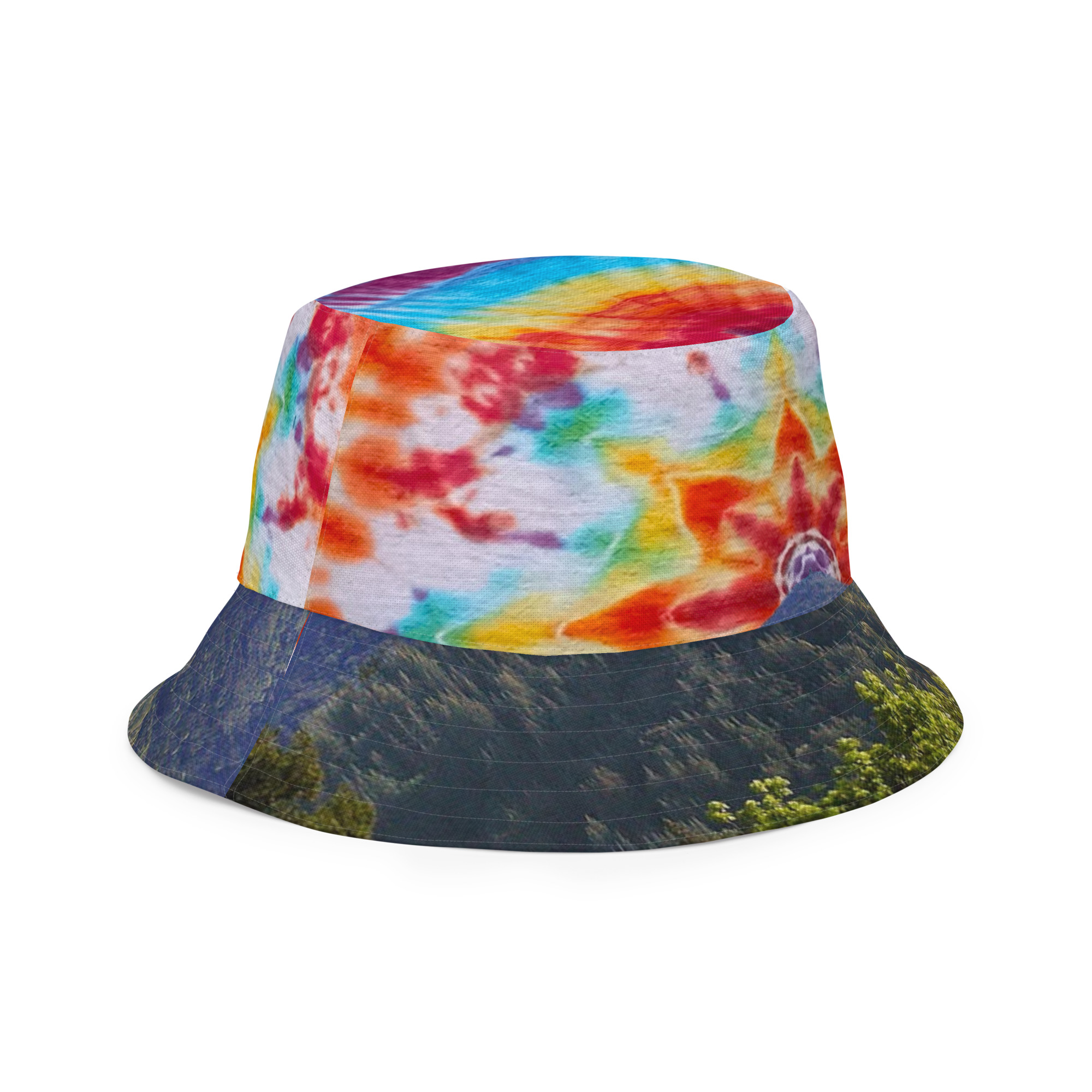 Reversible bucket hat Tie-Dye Mt Tamalpais Sky and Opal Green