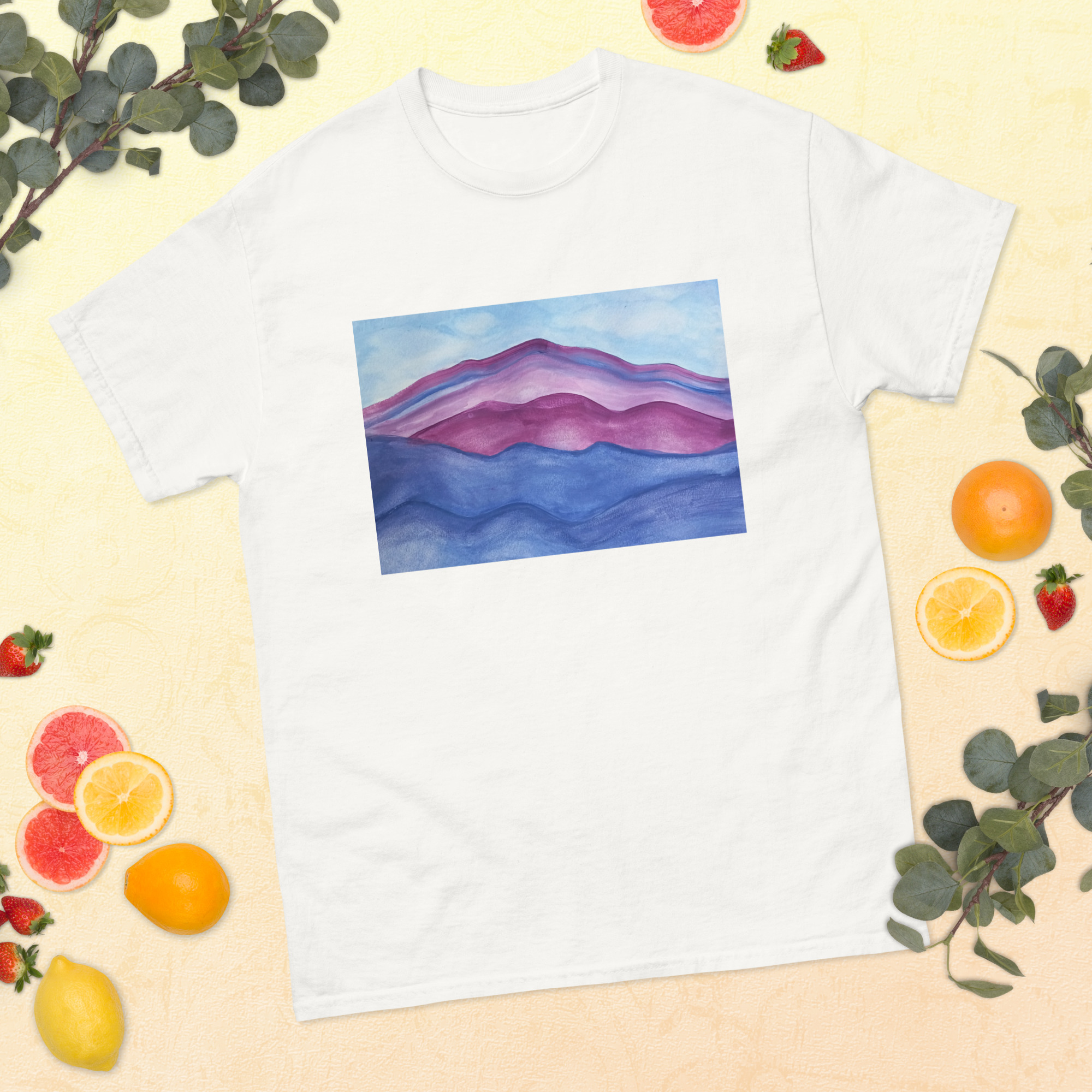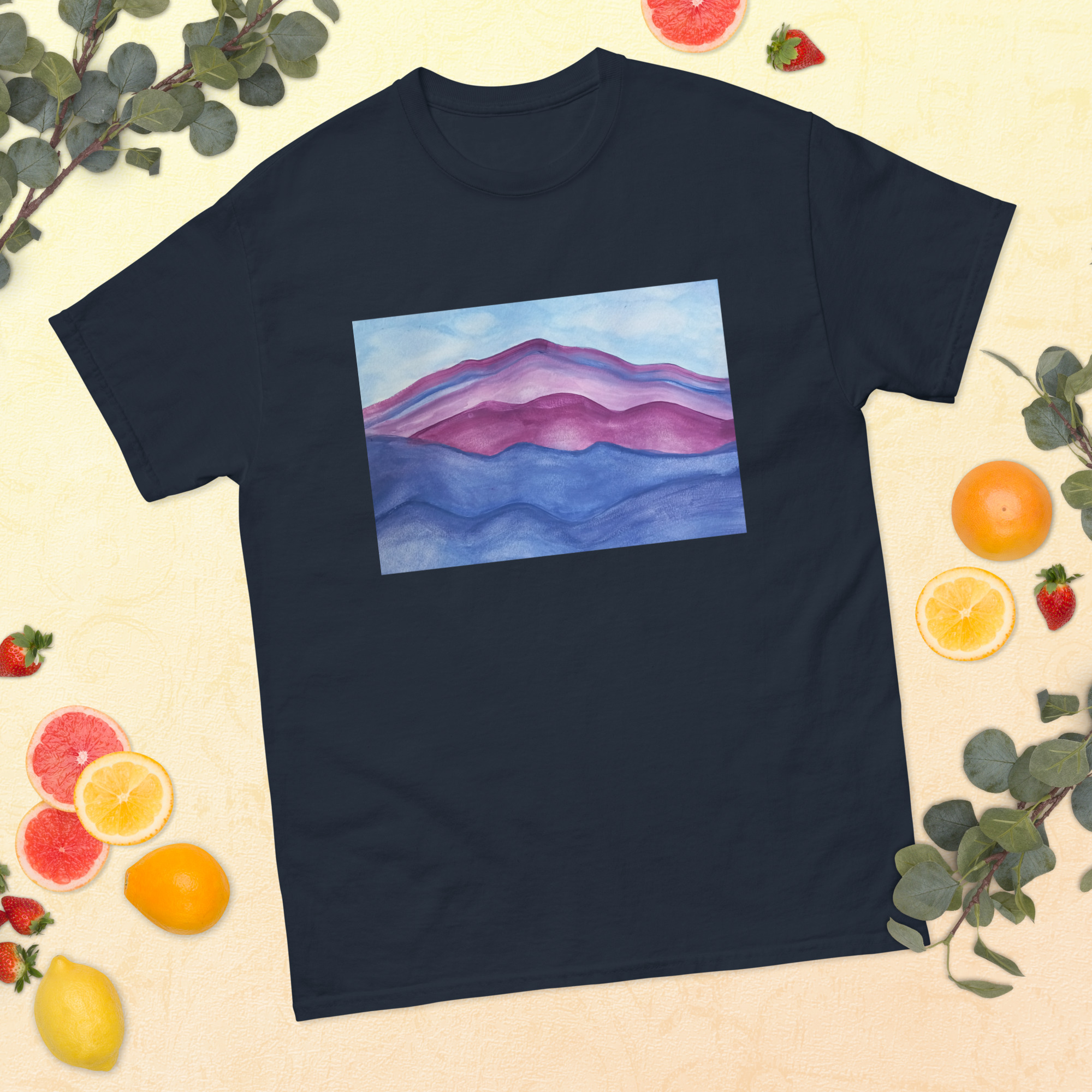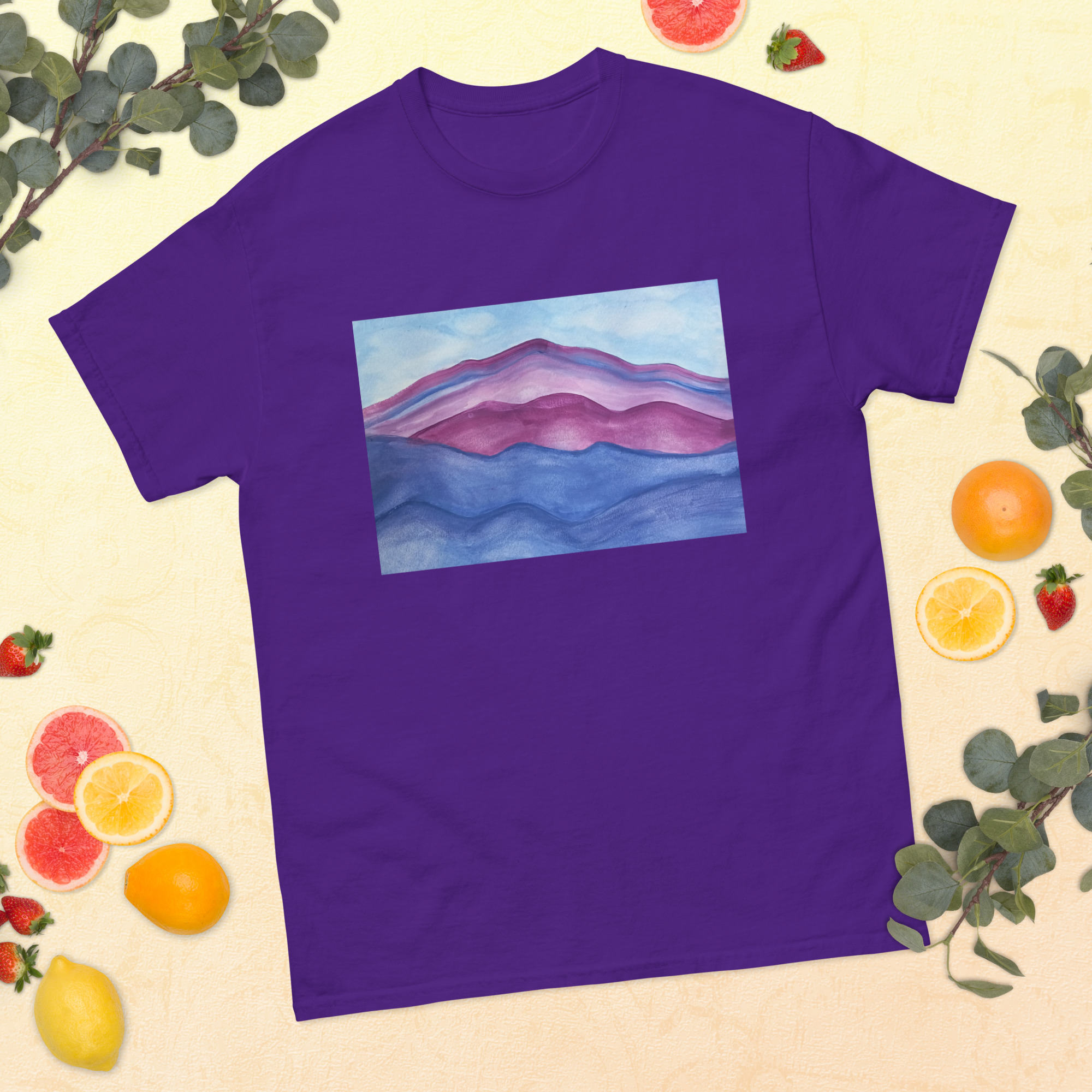 Unisex classic tee T-shirt Purple Mountains Majesty Mt Tamalpais Watercolor