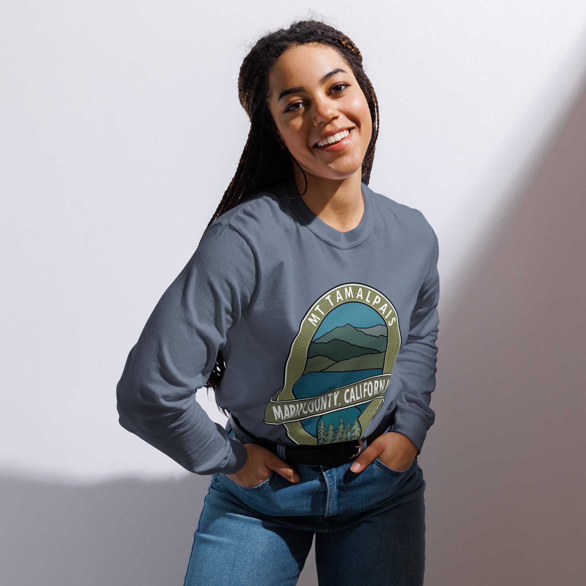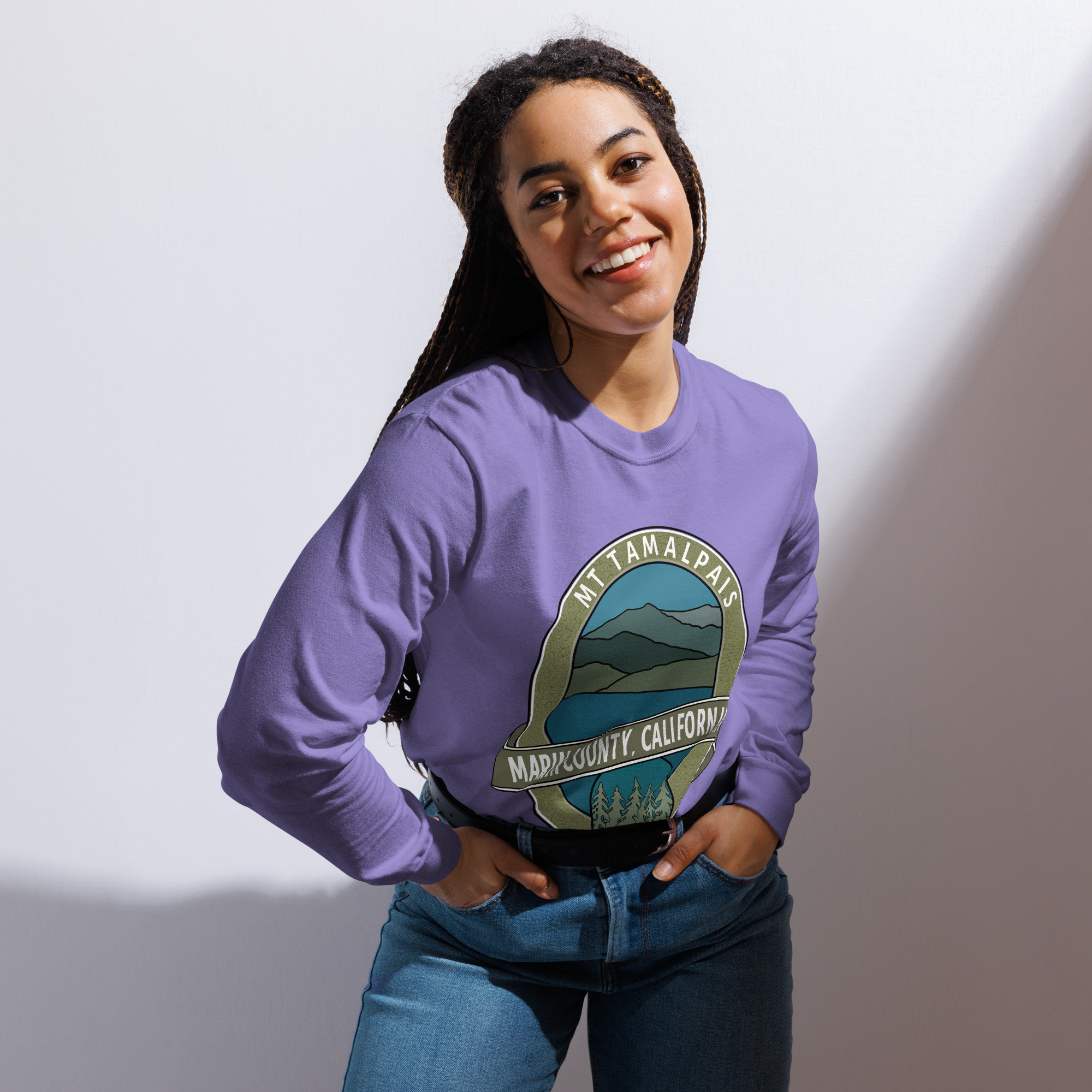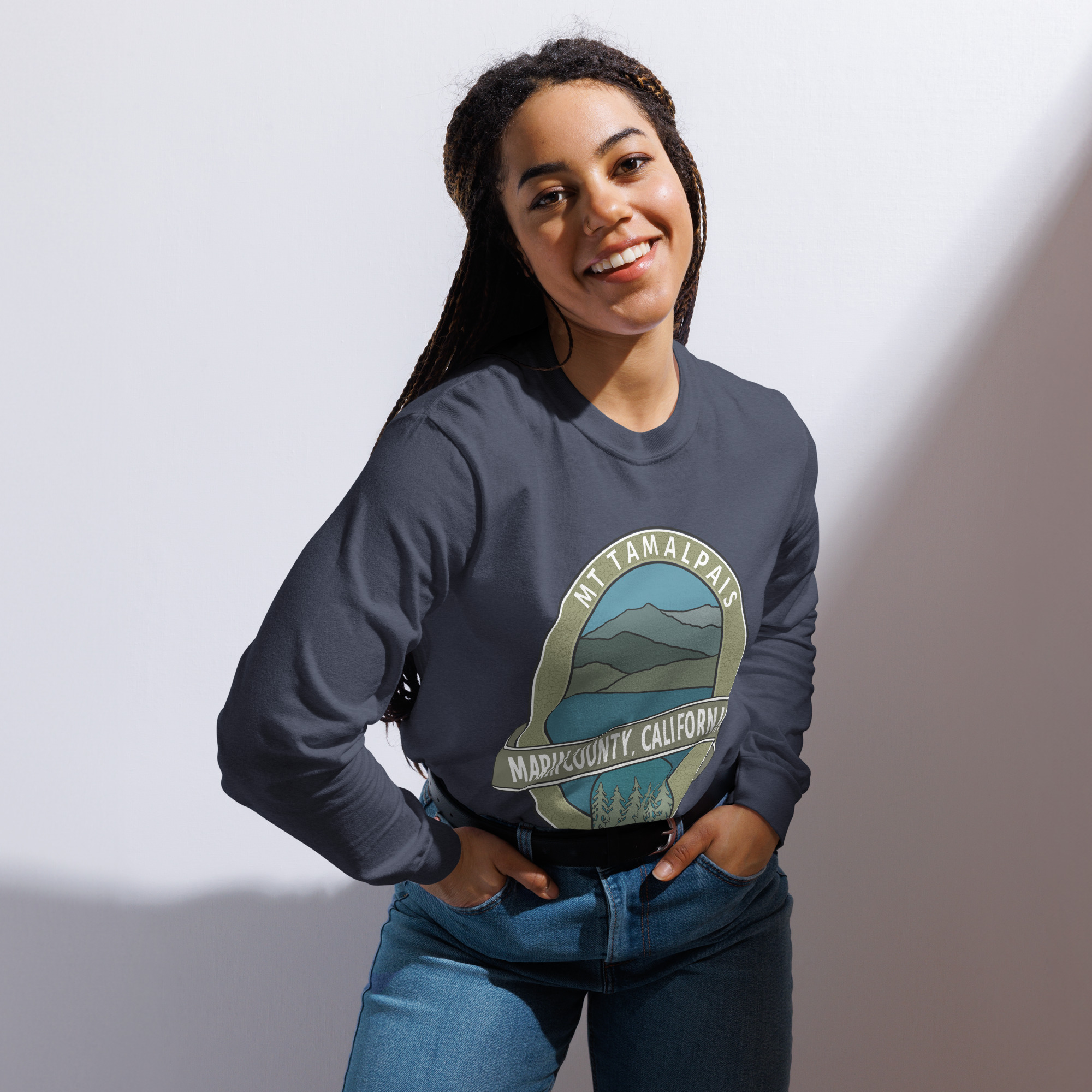 Unisex Garment-Dyed Heavyweight Long Sleeve Shirt Mt Tamalpais Marin County California Oval Souvenir Design