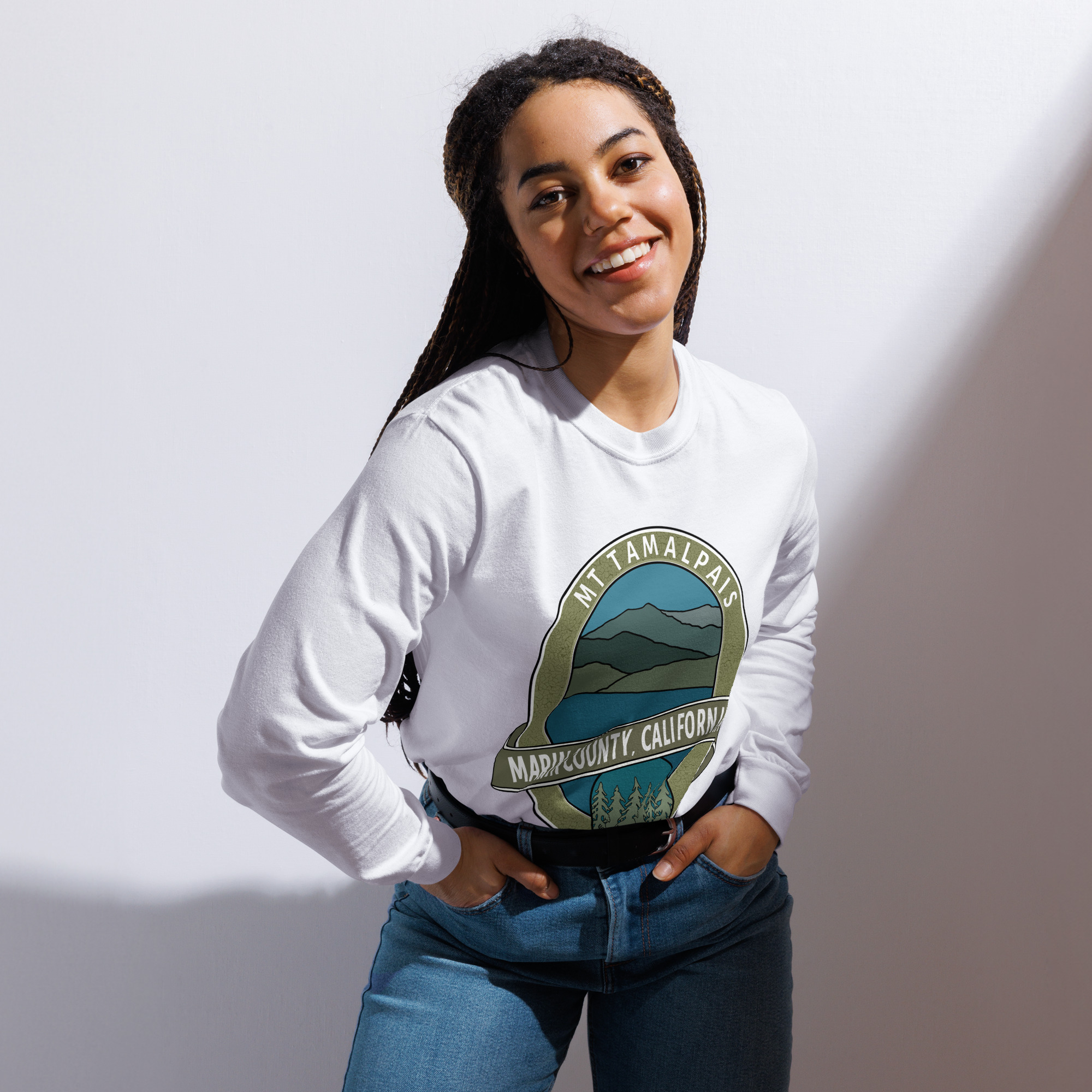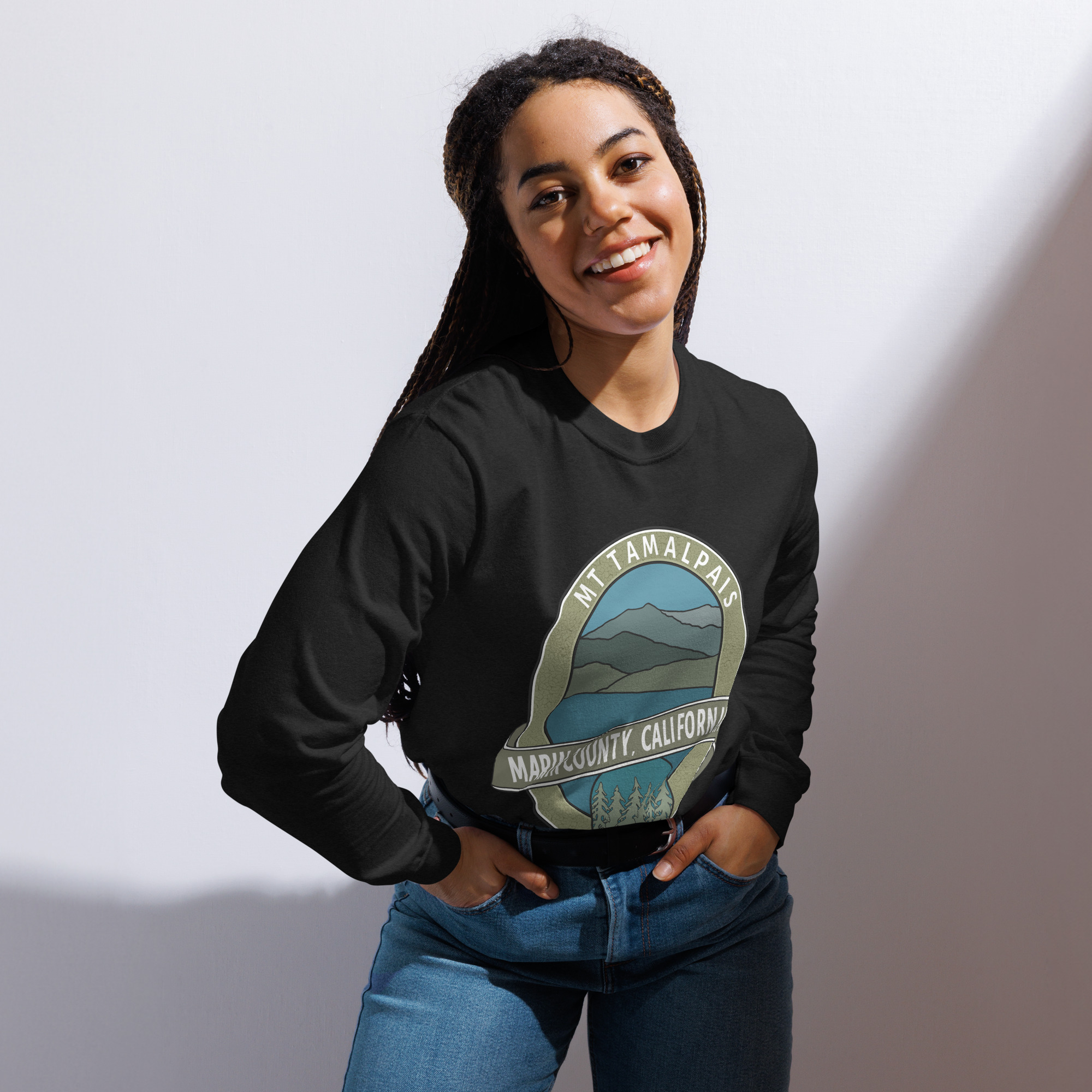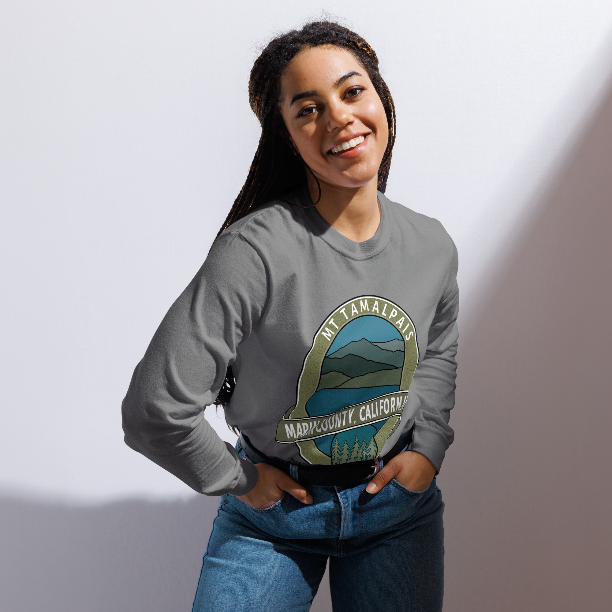 Unisex Garment-Dyed Heavyweight Long Sleeve Shirt Mt Tamalpais Marin County California Oval Souvenir Design