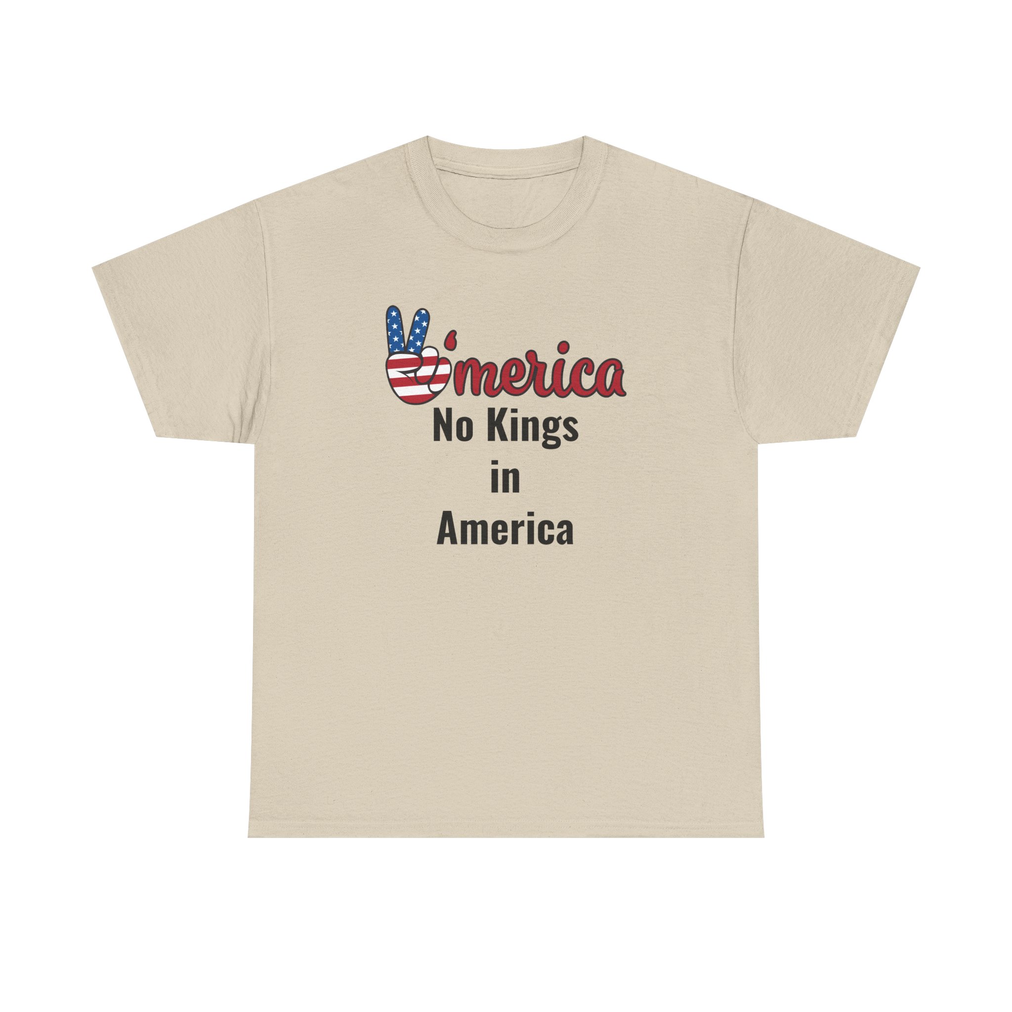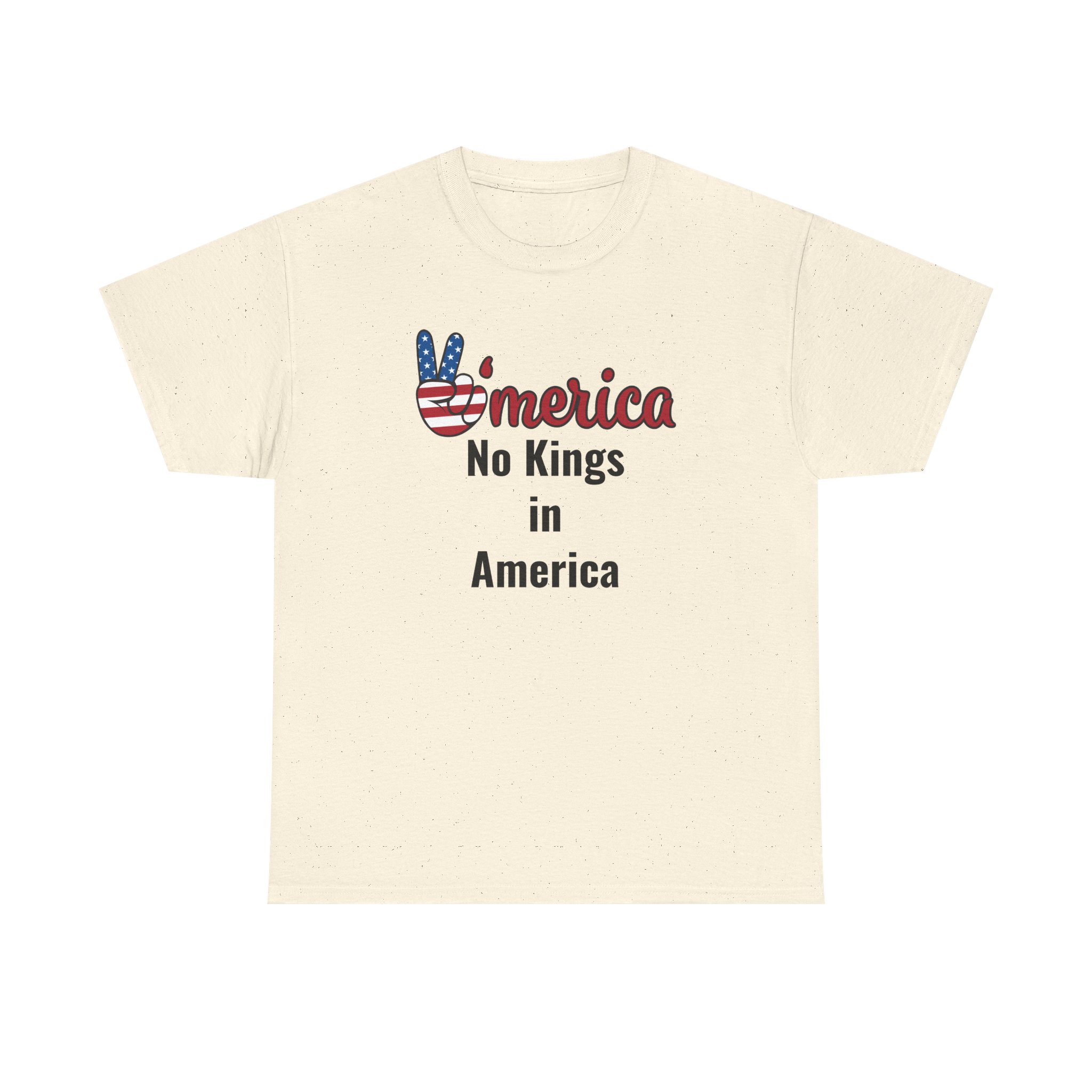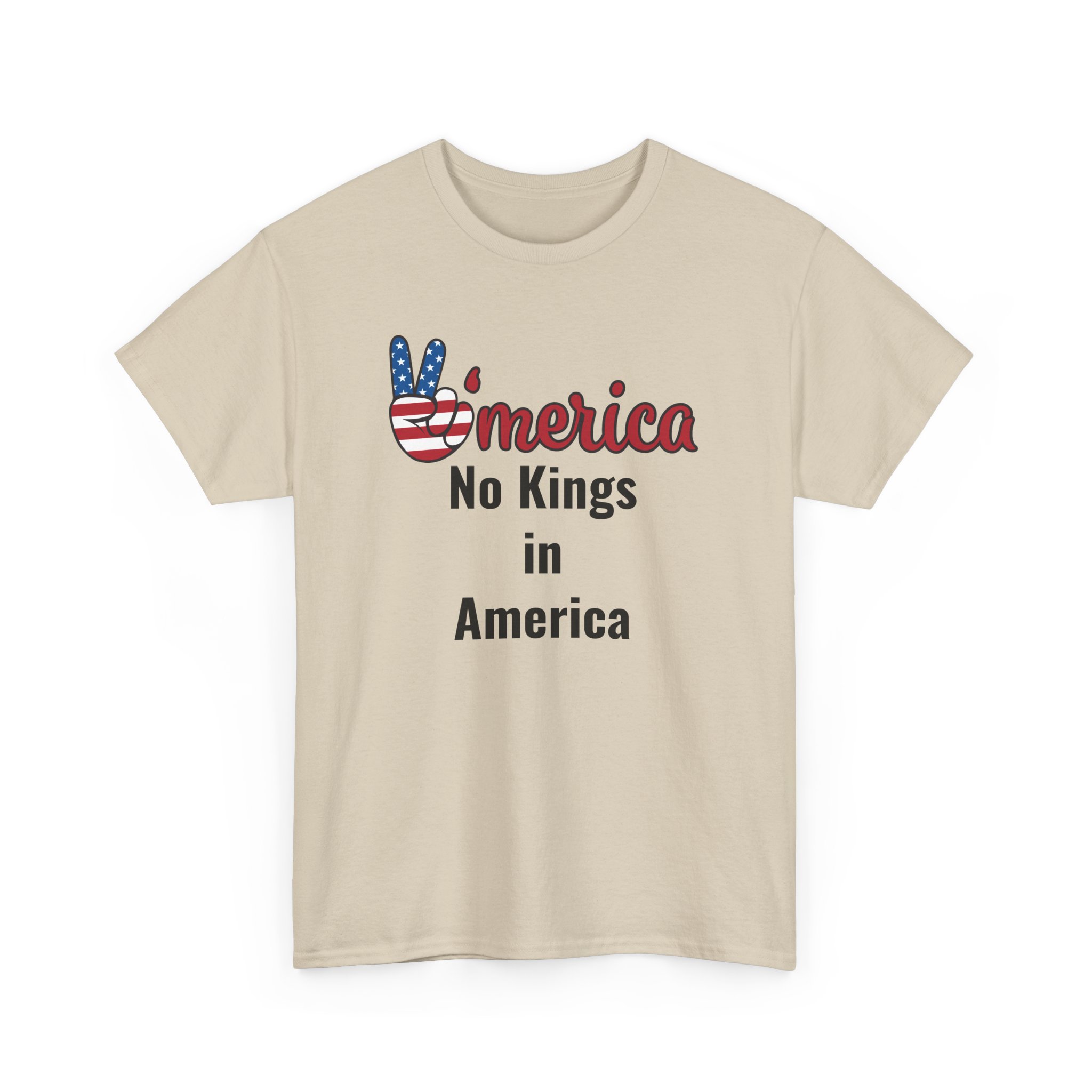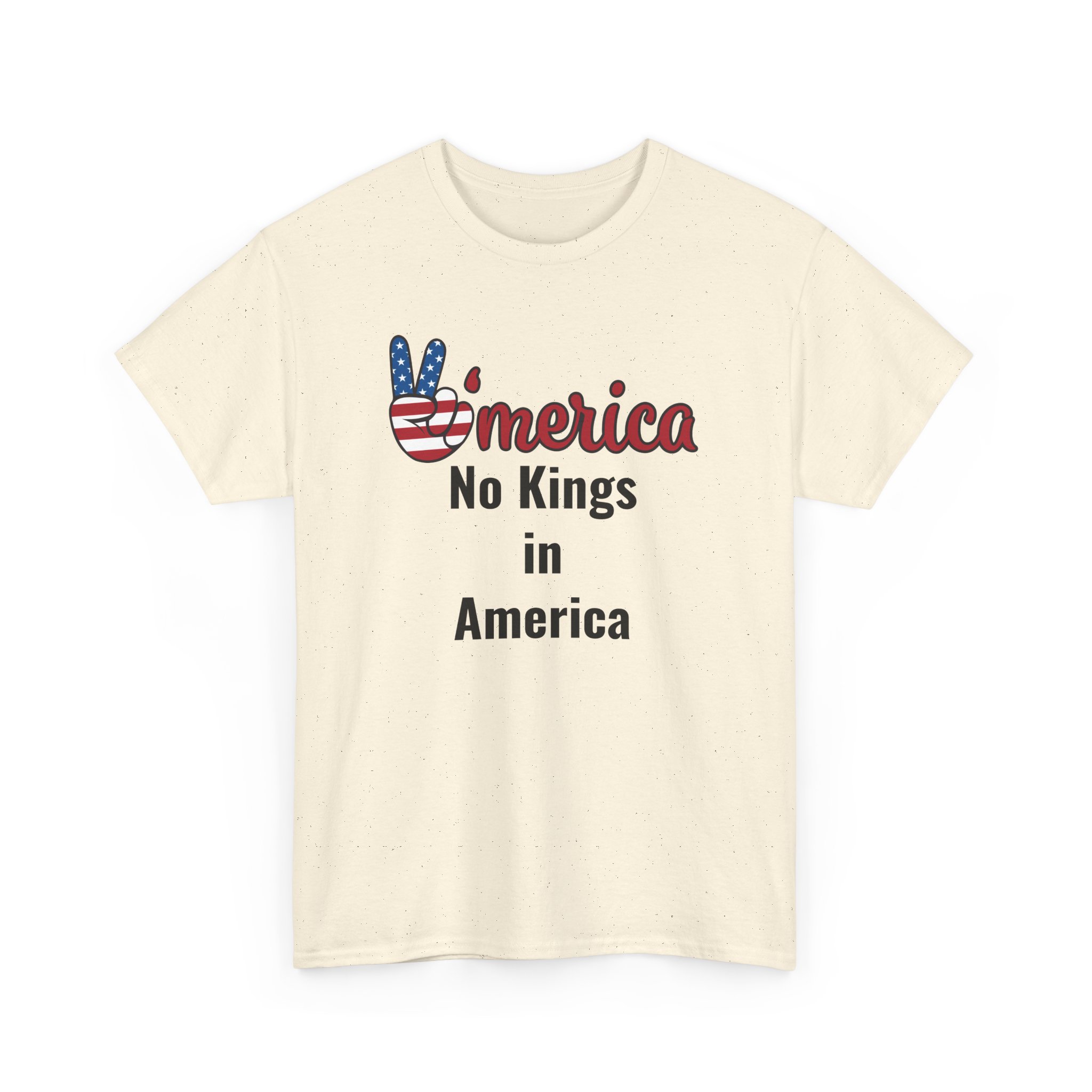Unisex Heavy Cotton Tee – No Kings in America Peace Sign Design – Made and Assembled in the USA
