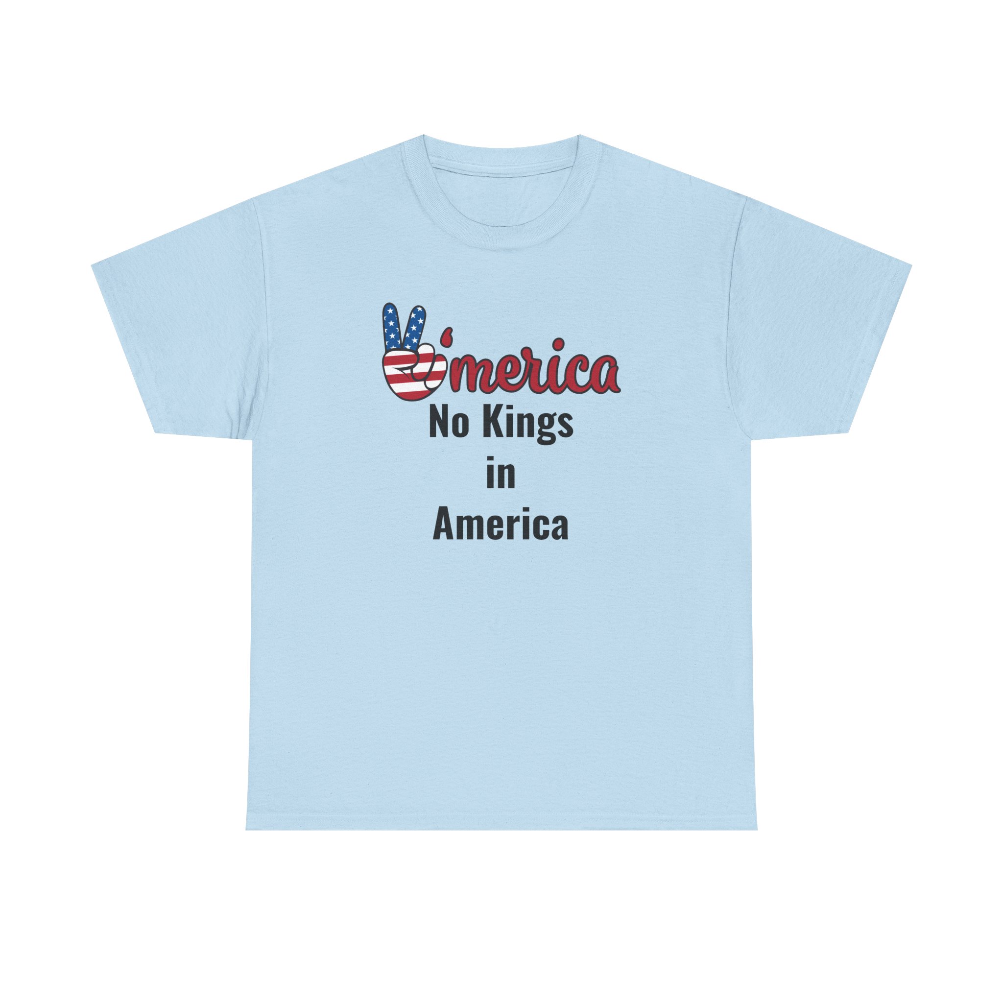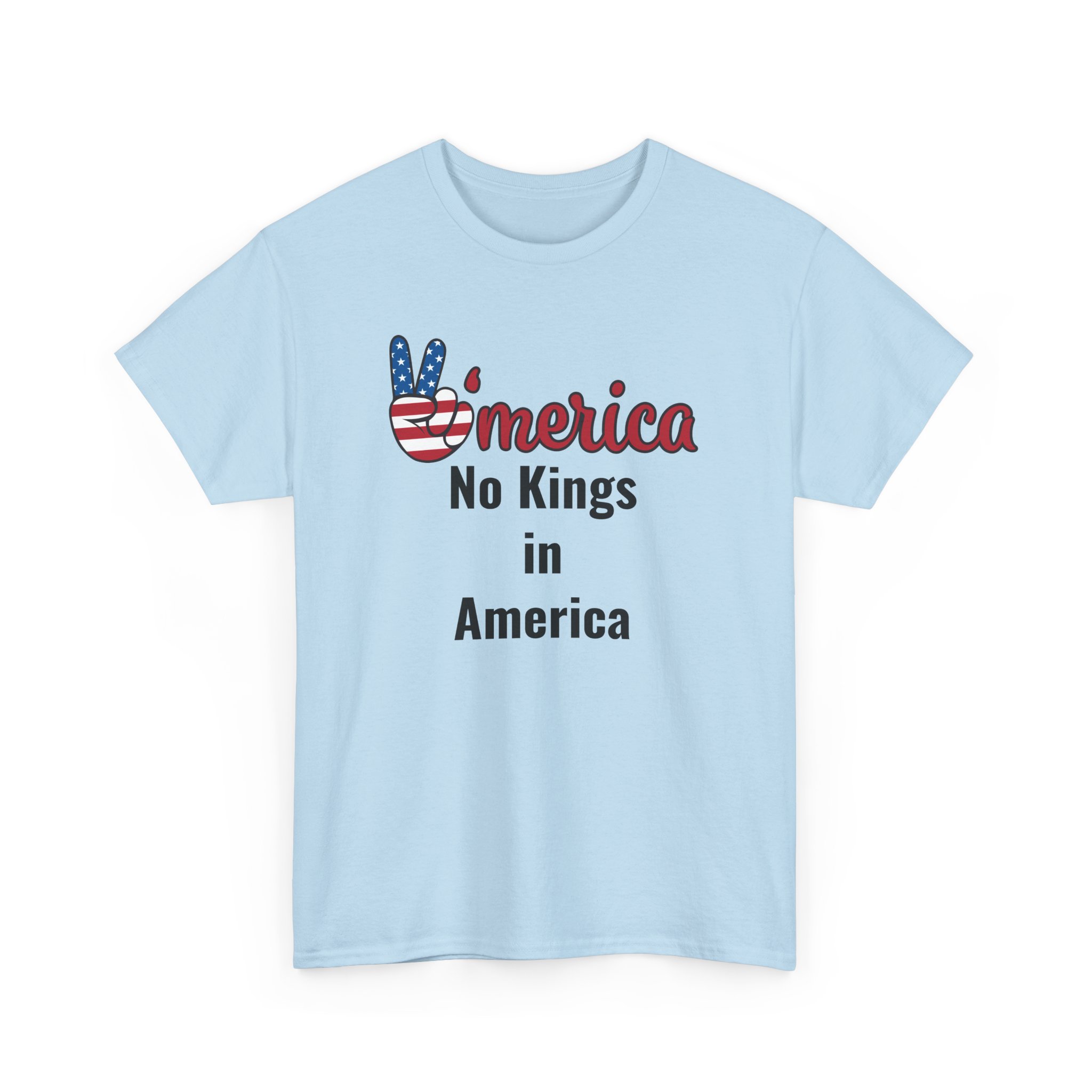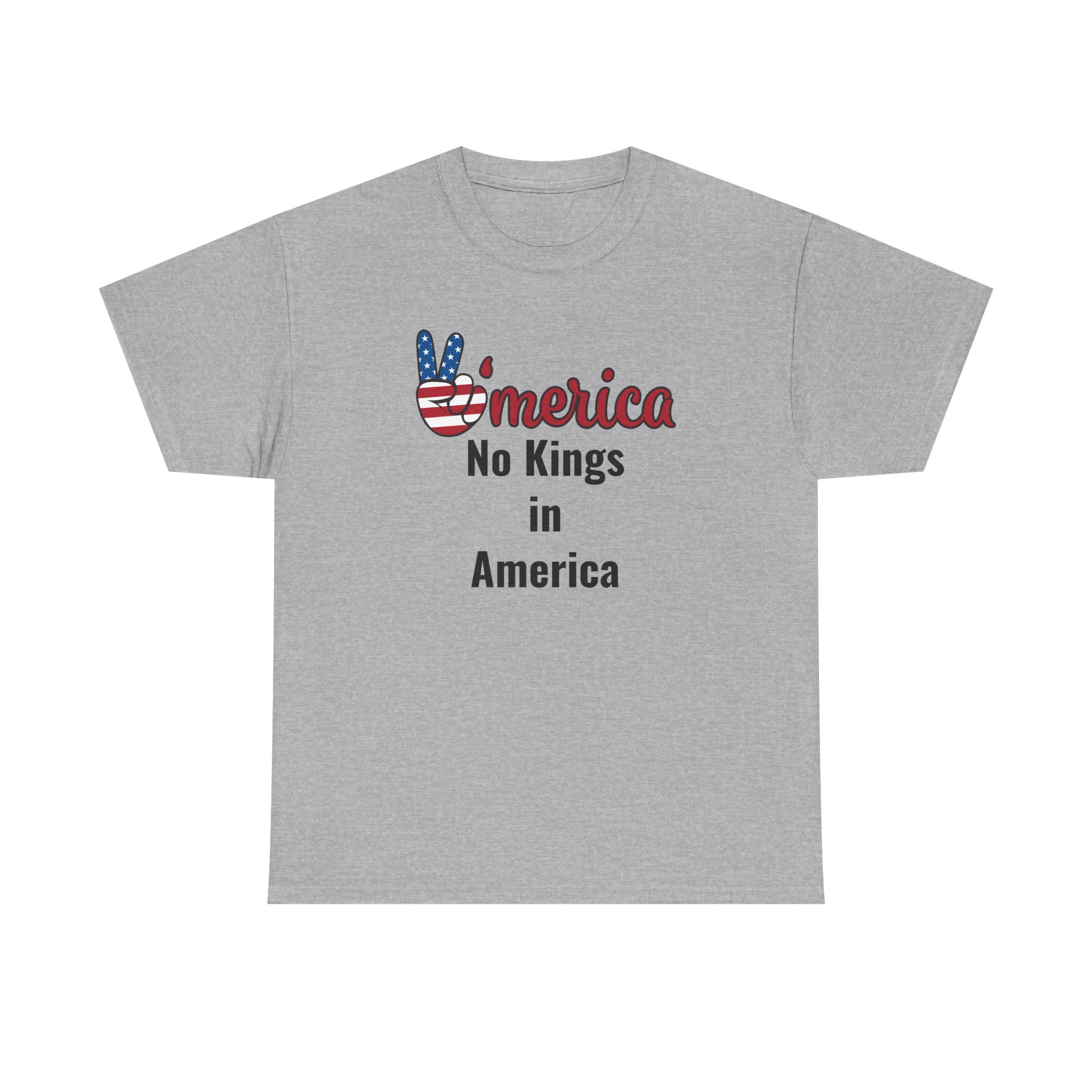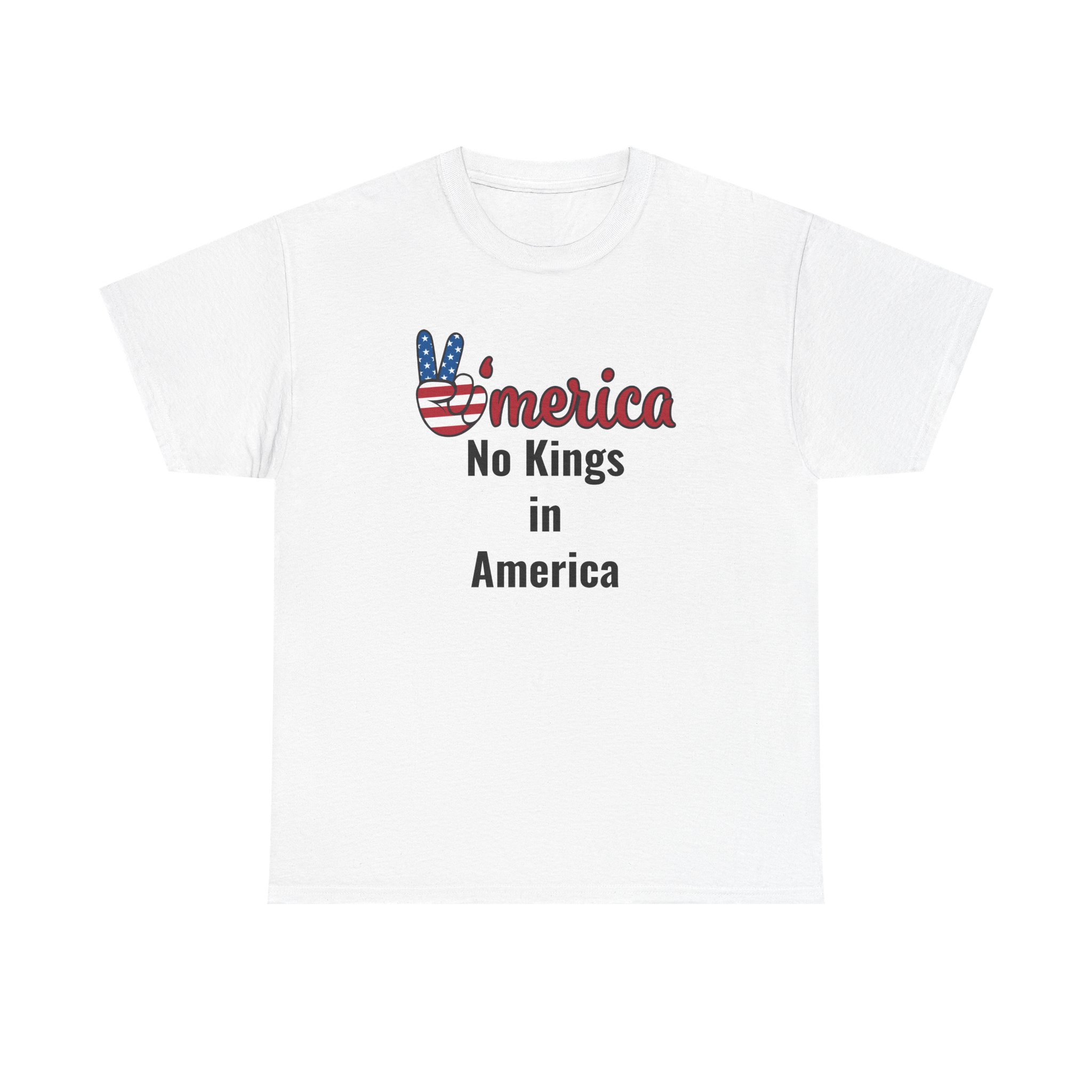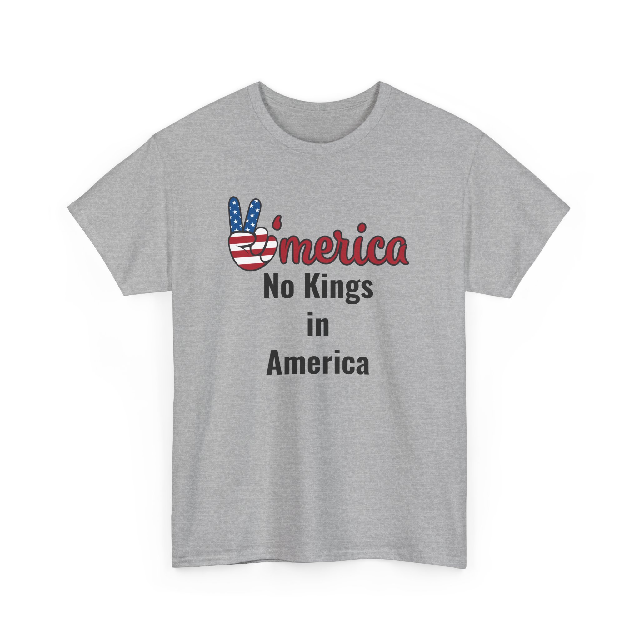 Unisex Heavy Cotton Tee – No Kings in America Peace Sign Design – Made and Assembled in the USA