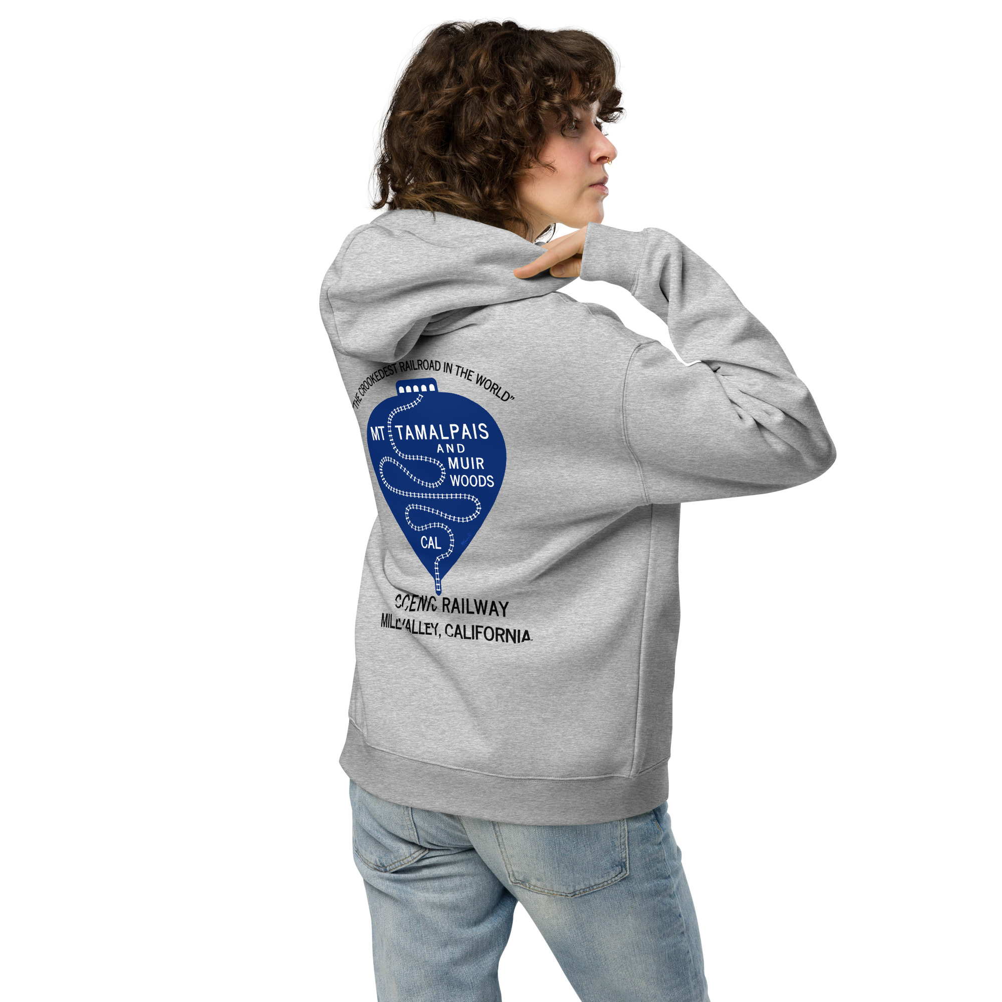Unisex oversized hoodie Vintage 1911 Mt Tamalpais Railroad Muir Woods Mill Valley California Design Front chest and Back black text