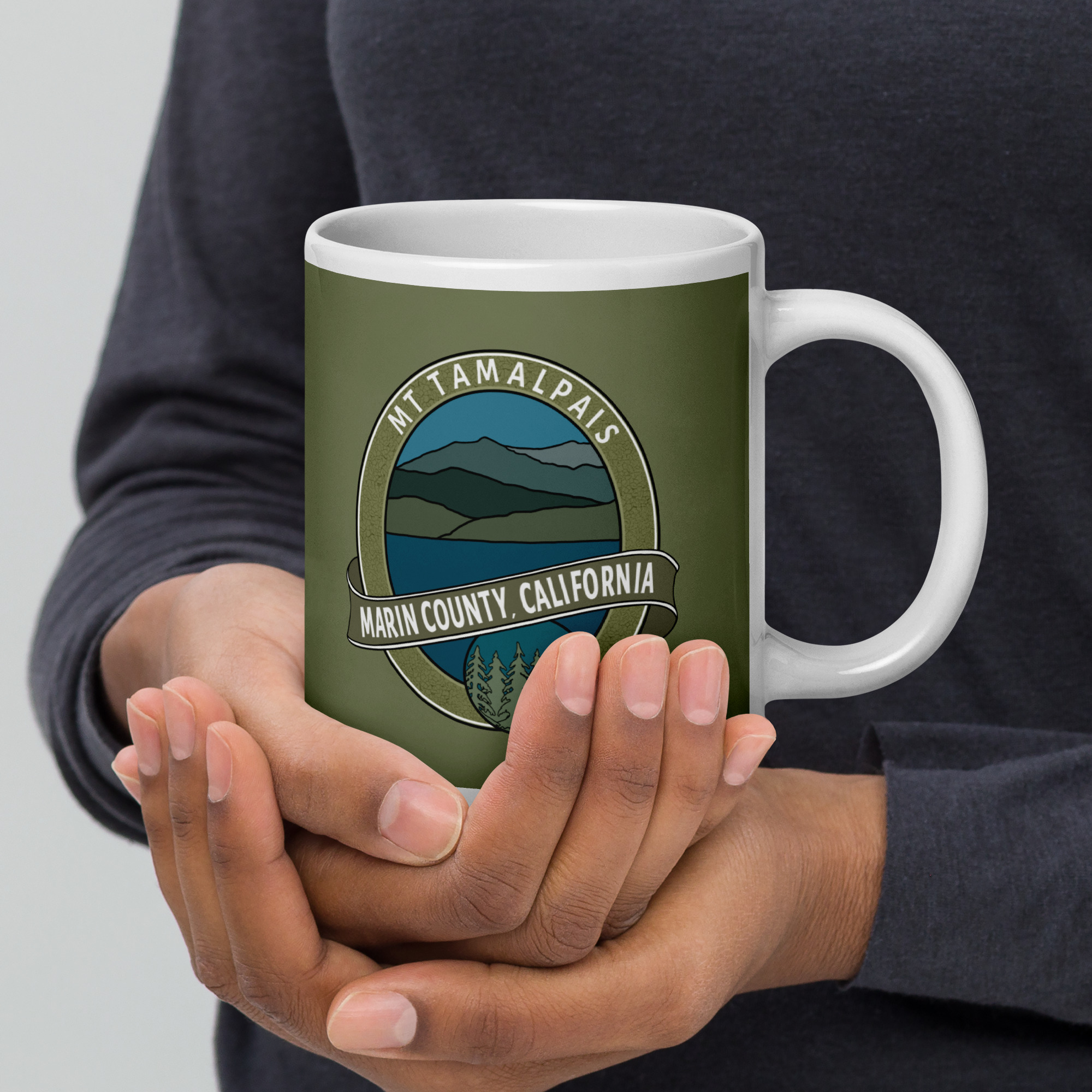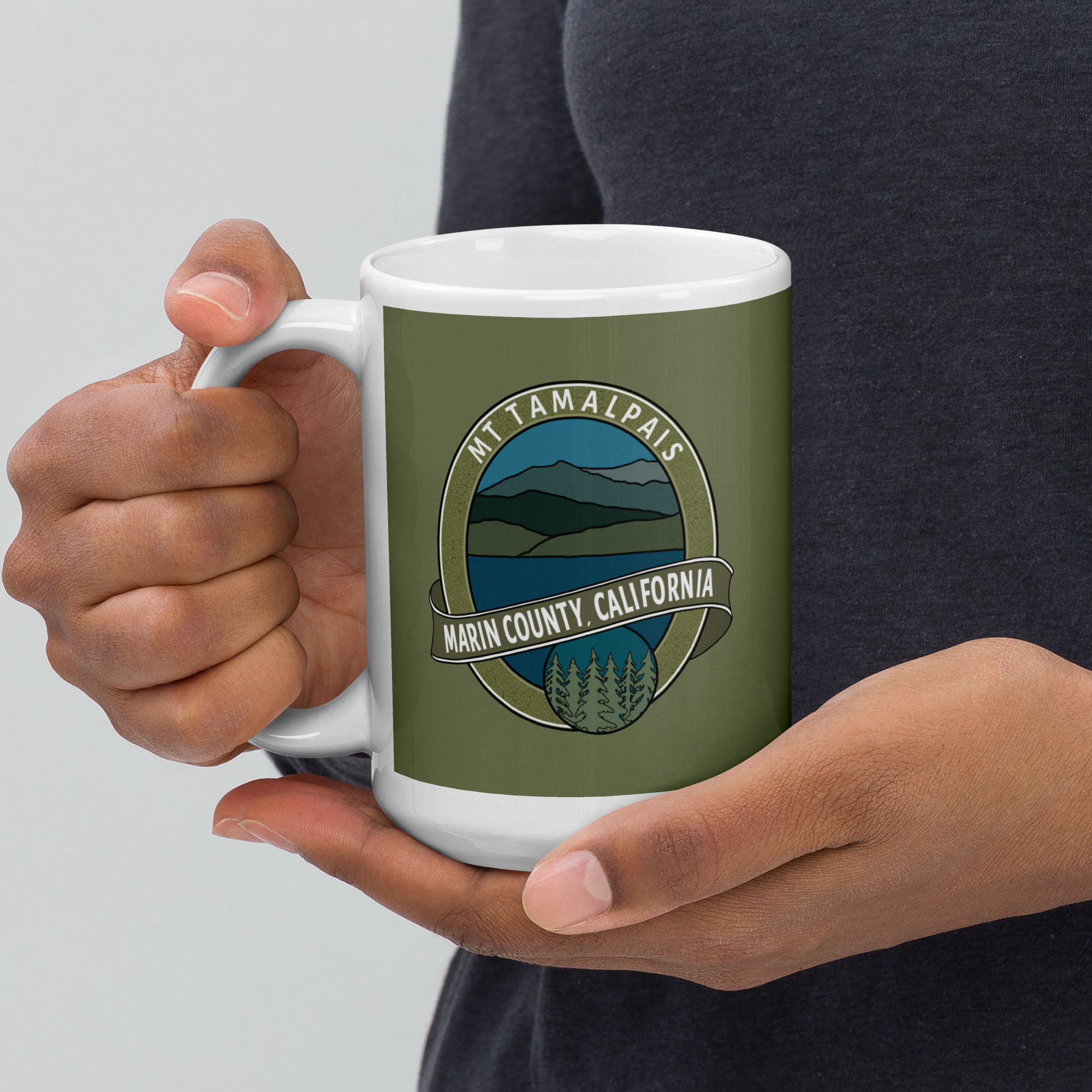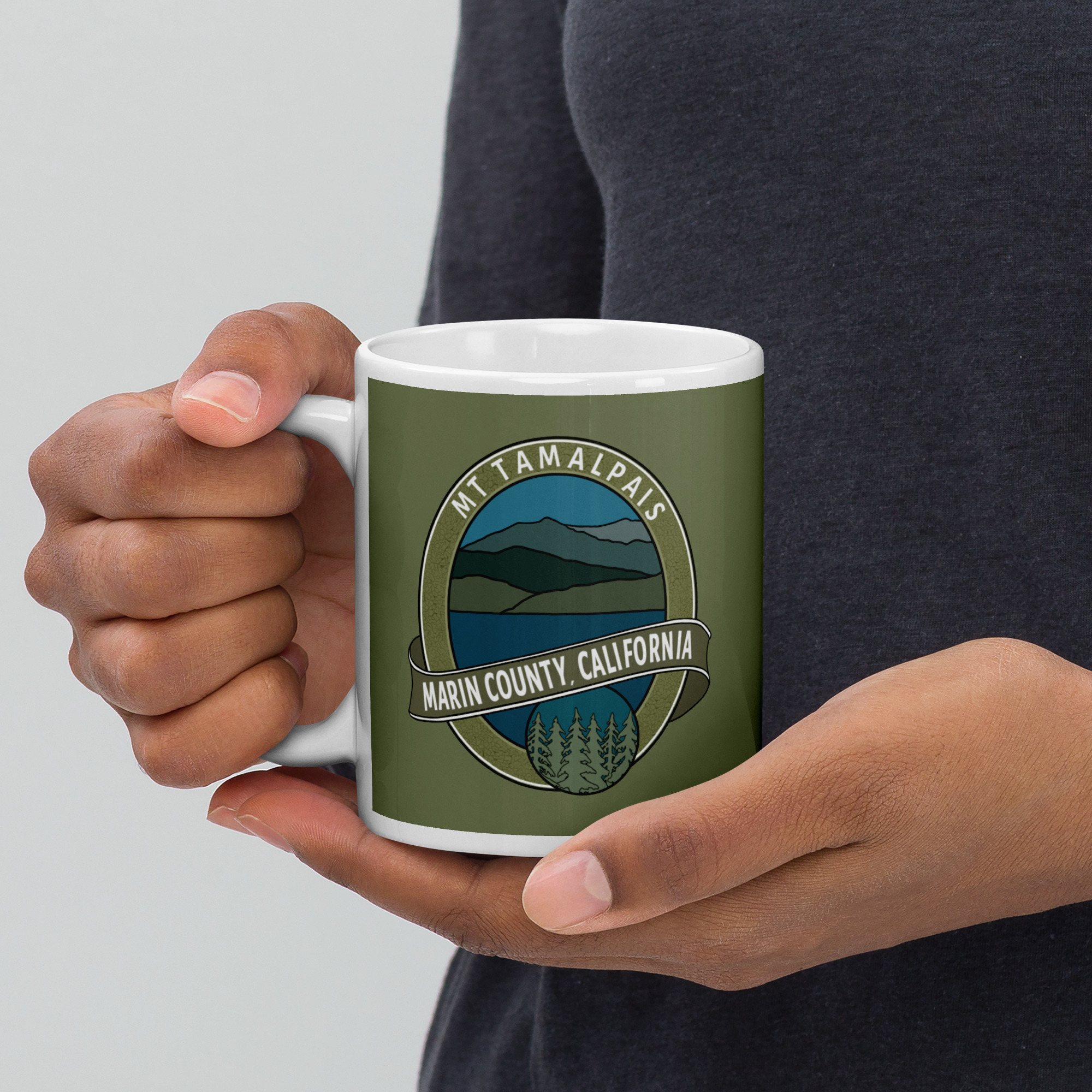 White glossy mug Mt Tamalpais Marin County California Oval Souvenir Design Green