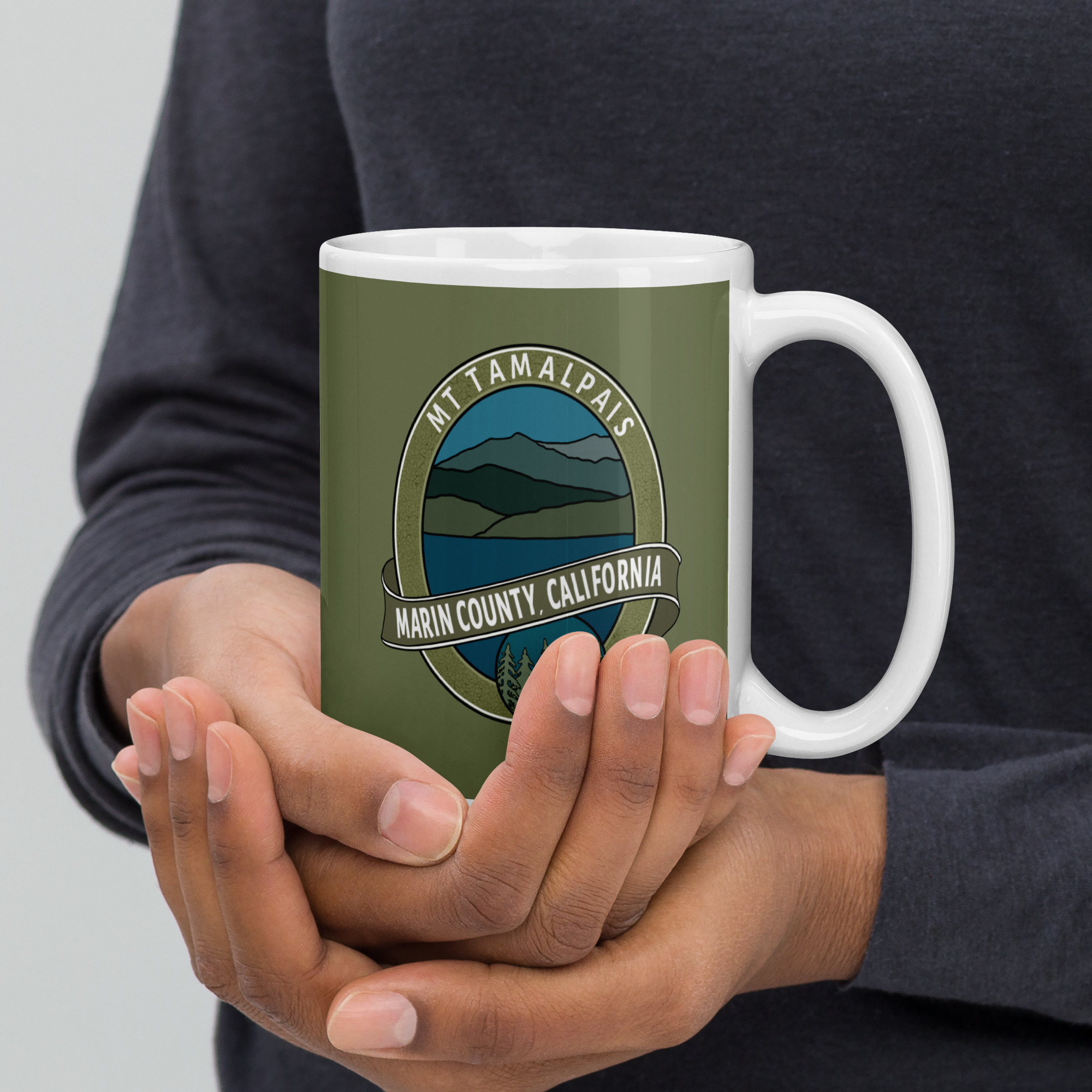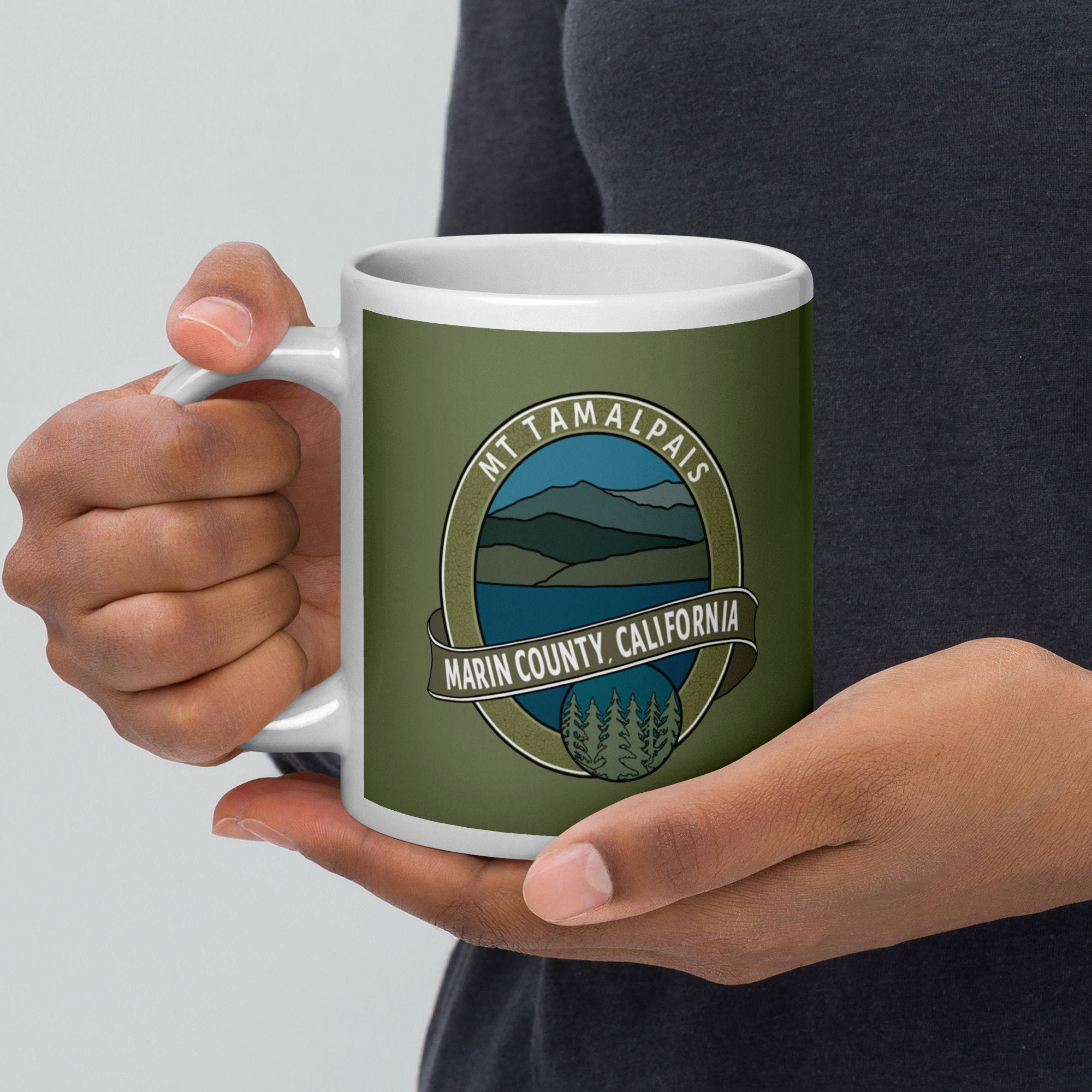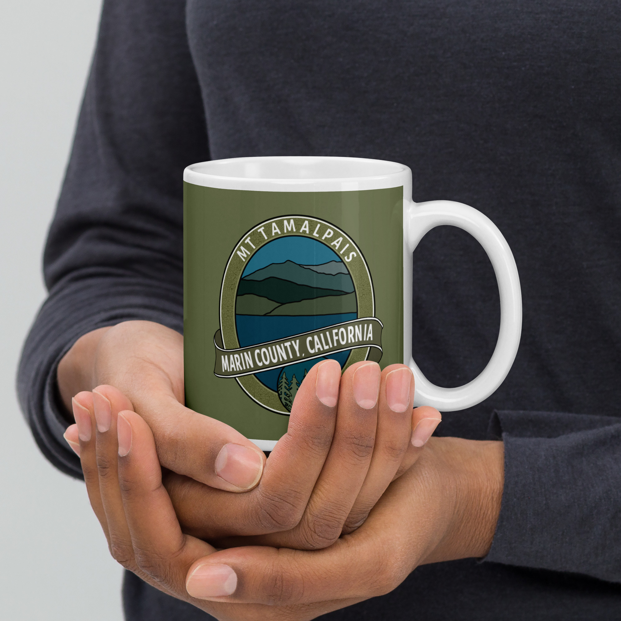White glossy mug Mt Tamalpais Marin County California Oval Souvenir Design Green
