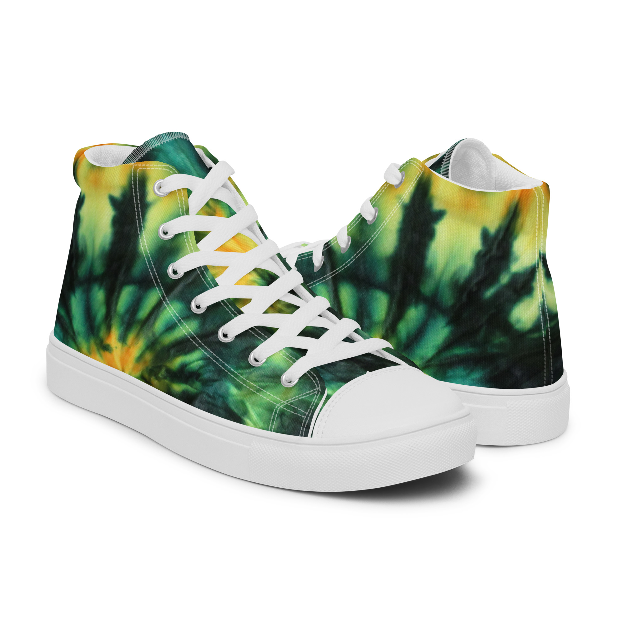 Women’s high top canvas shoes Tie Dye Green & Yellow Design