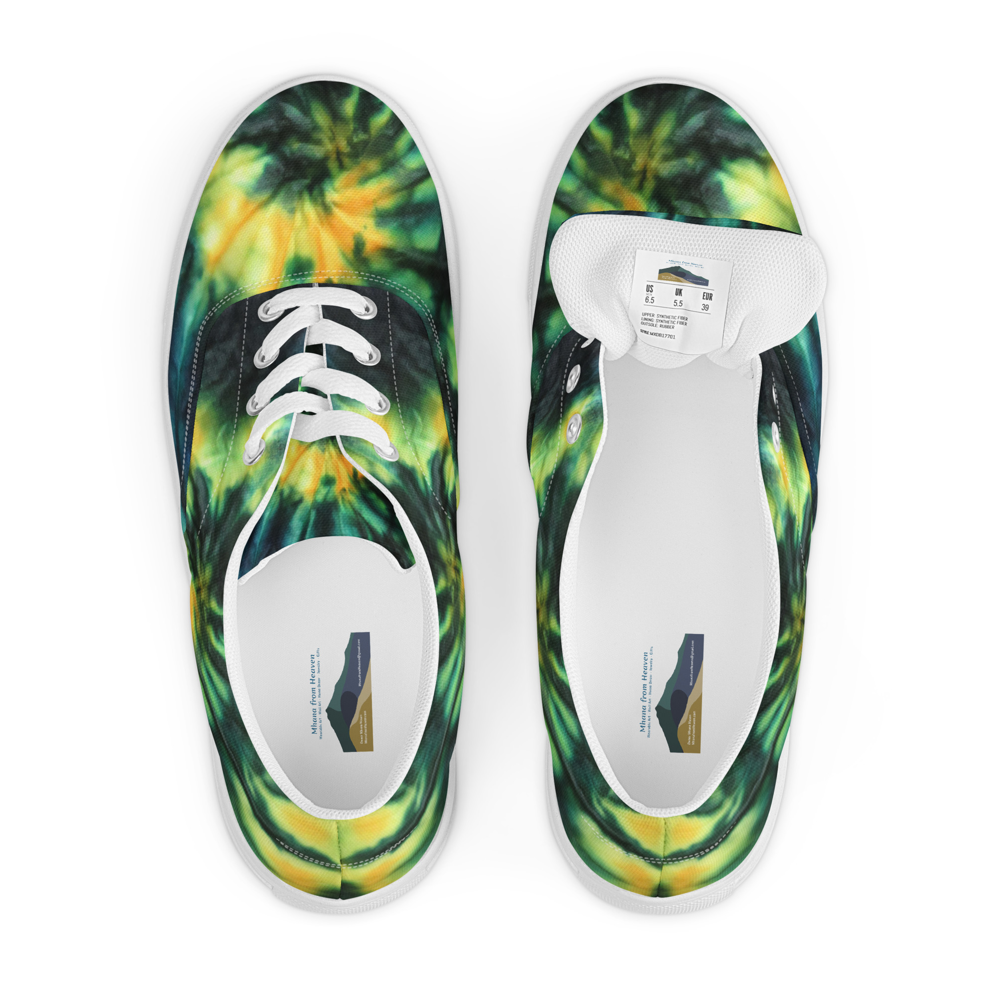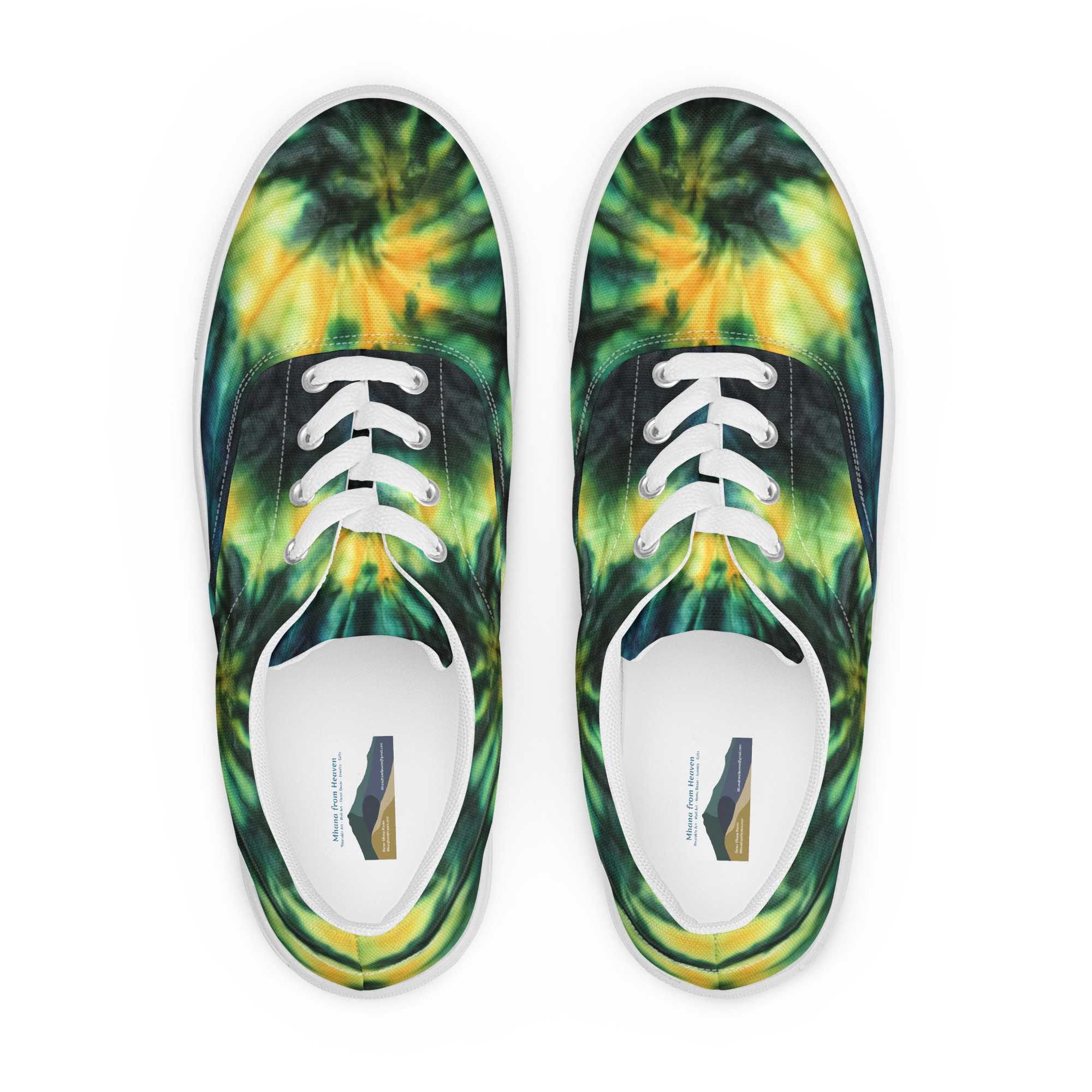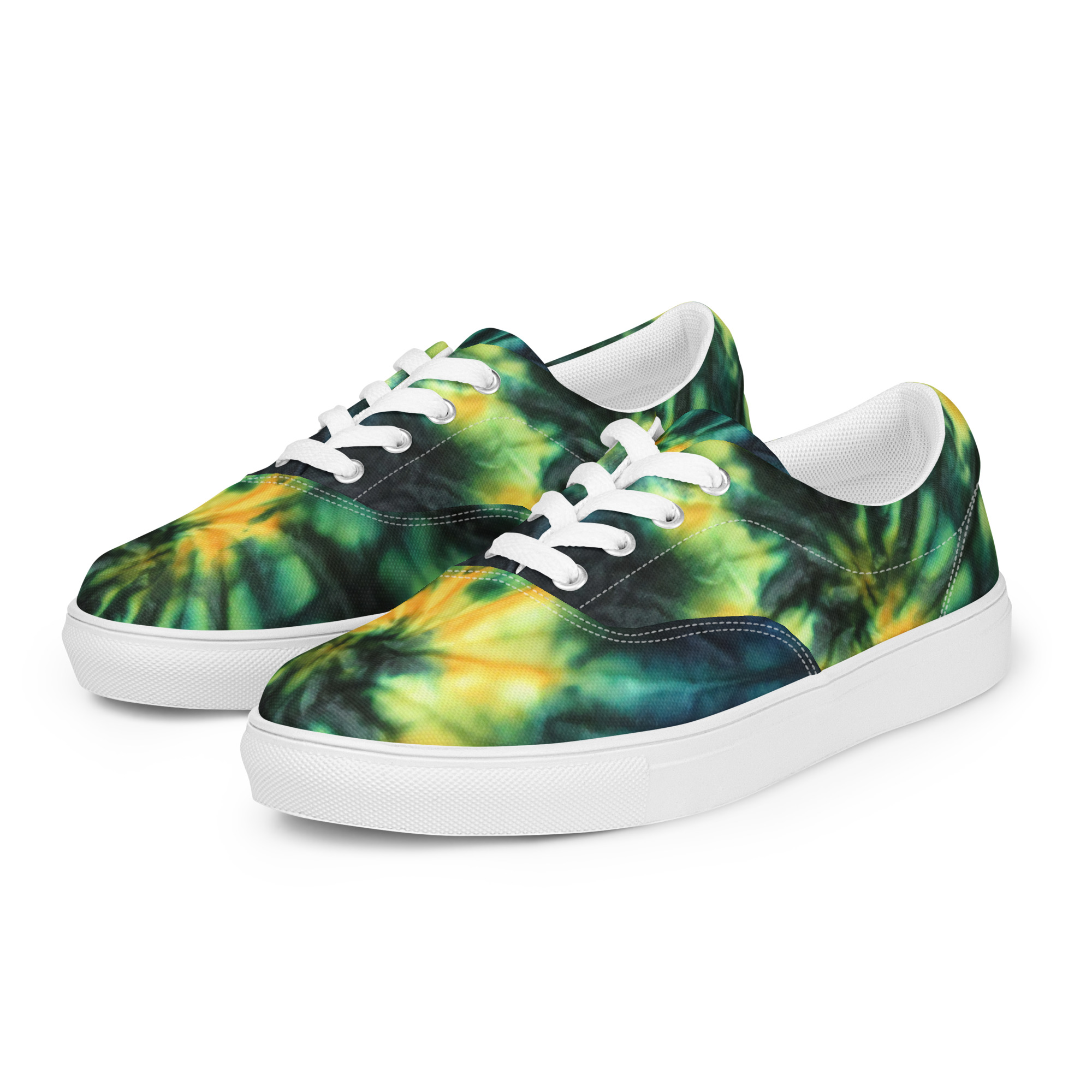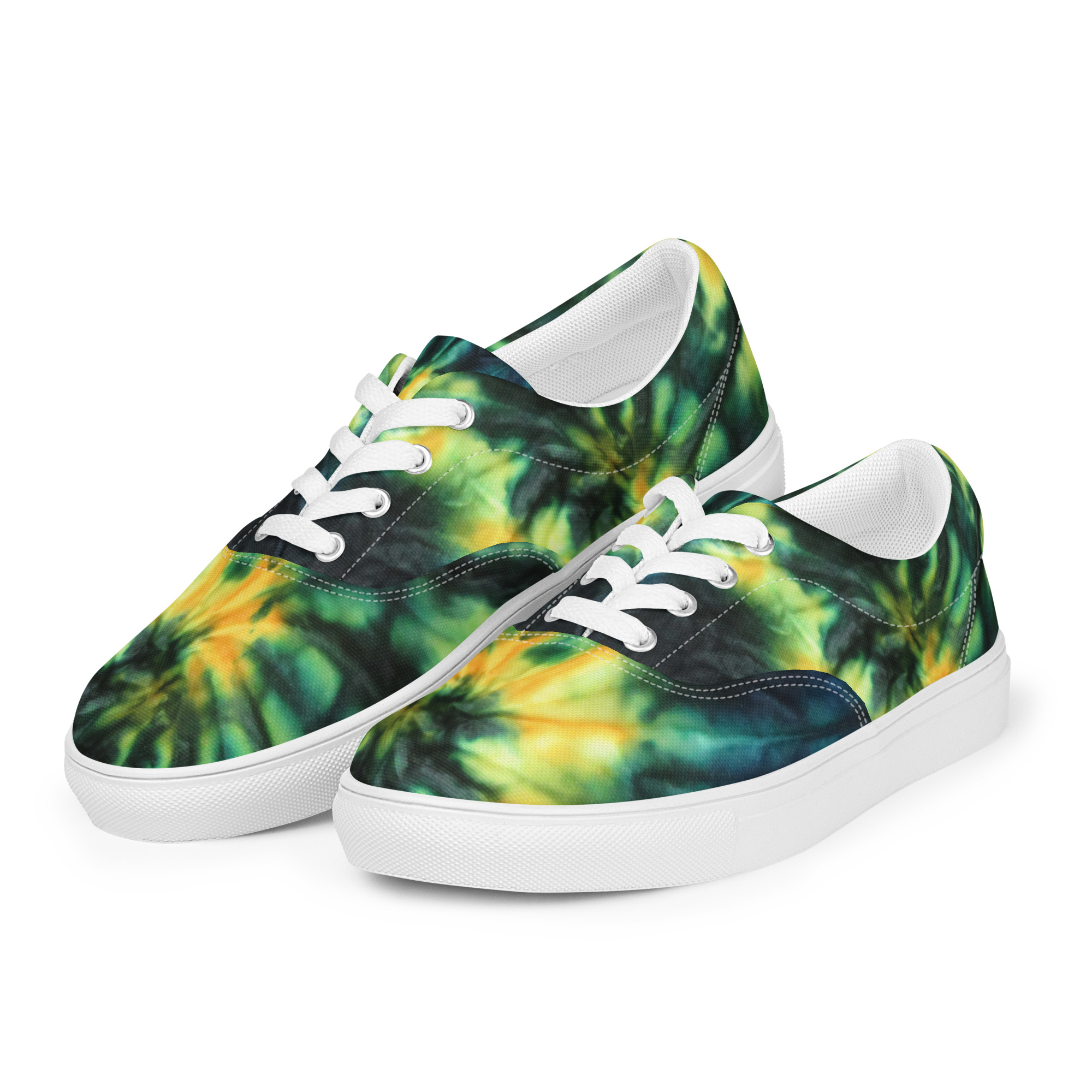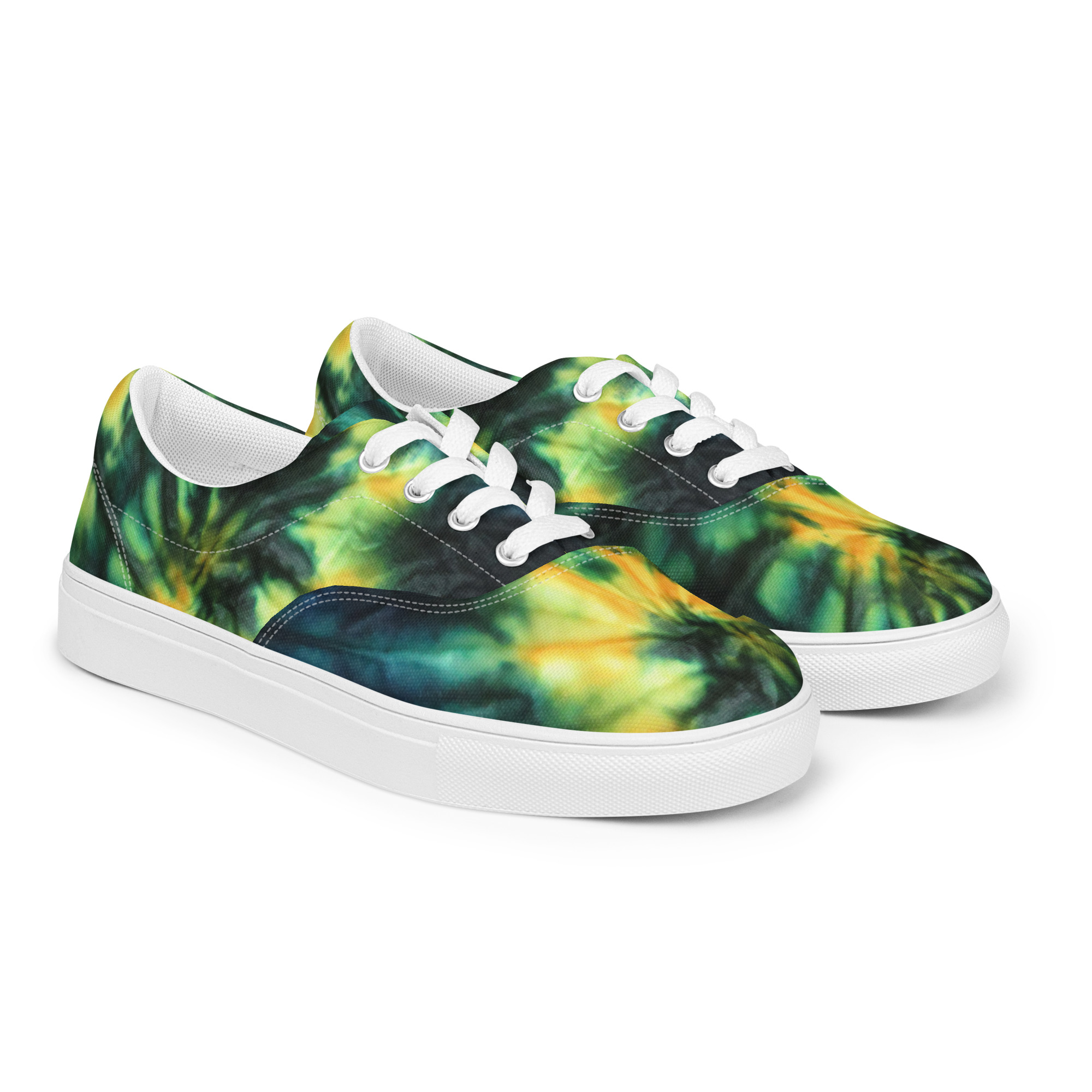 Women’s lace-up canvas shoes Tie Dye Green & Yellow Design