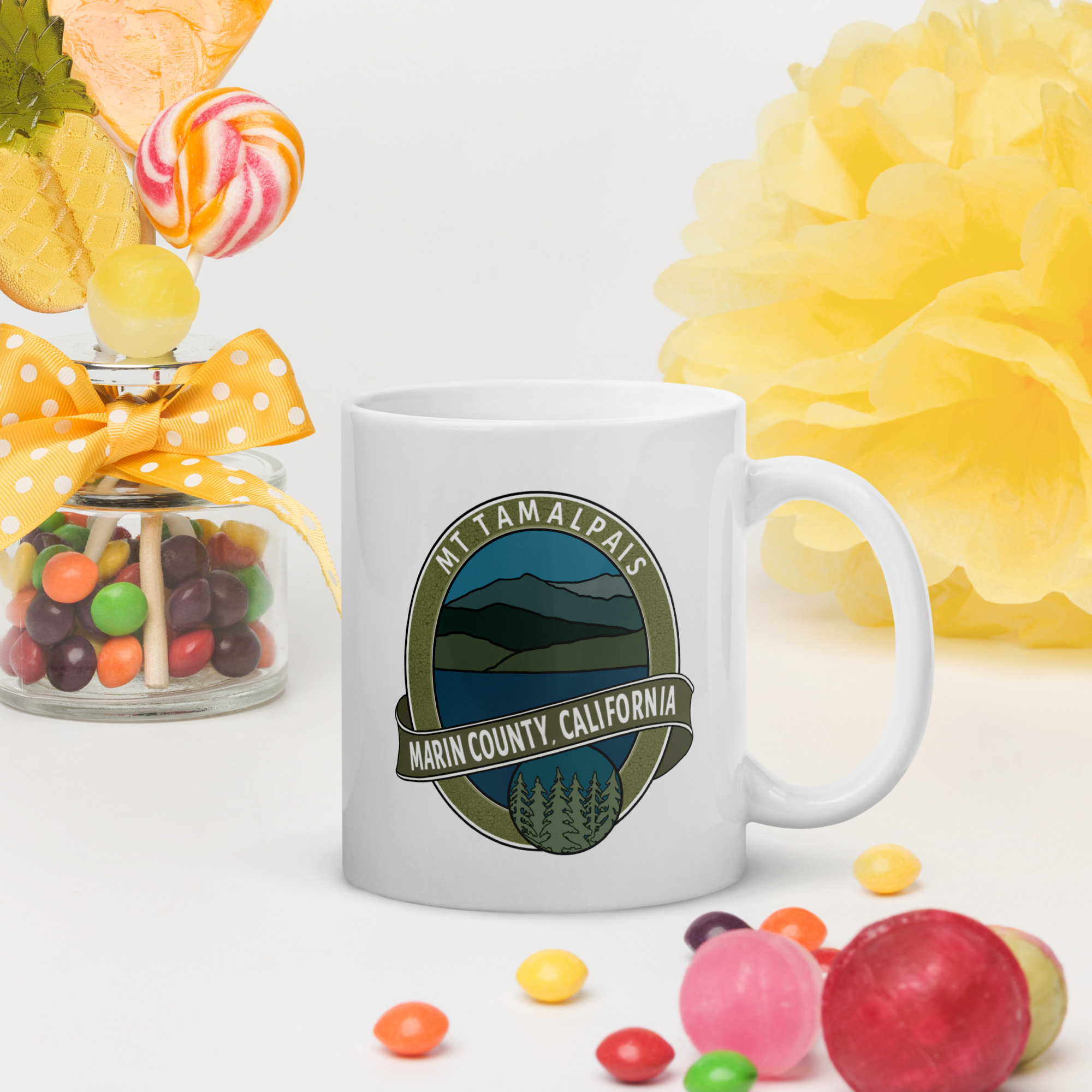 White glossy mug Oval Mt Tamalpais Marin County California Collector’s Design